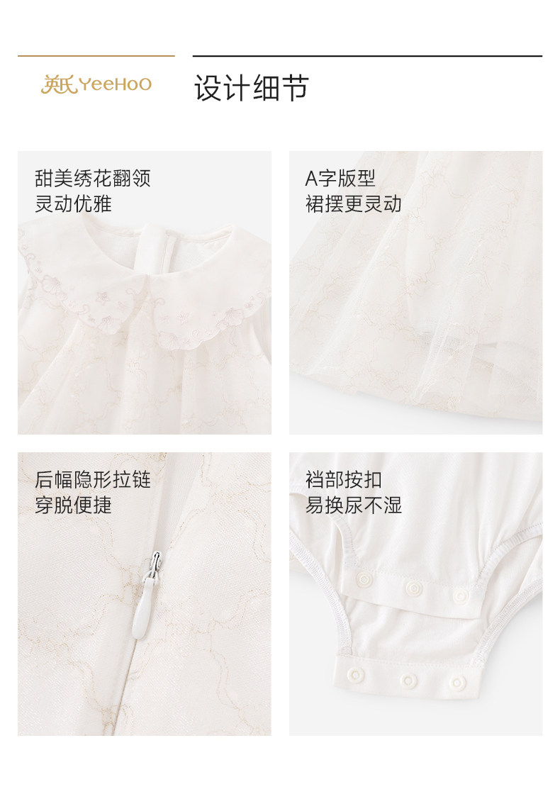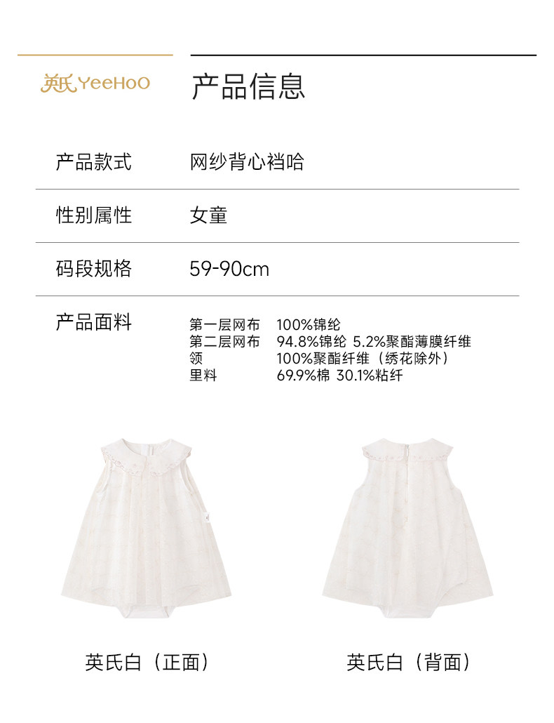 英氏婴儿连体衣女宝宝衣服夏季防蚊短袖纱裙爬服哈衣YRHGJ2S044A