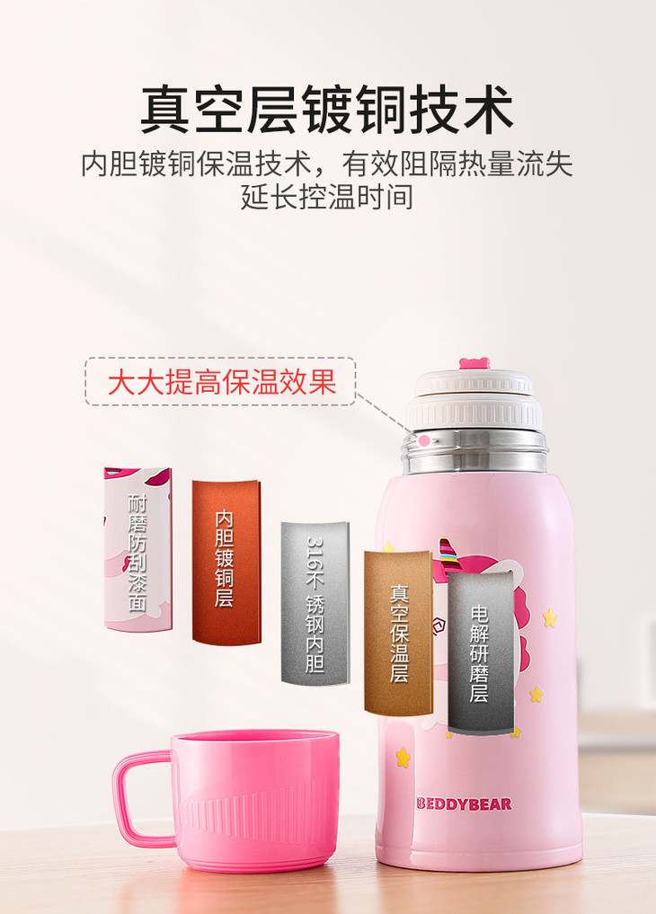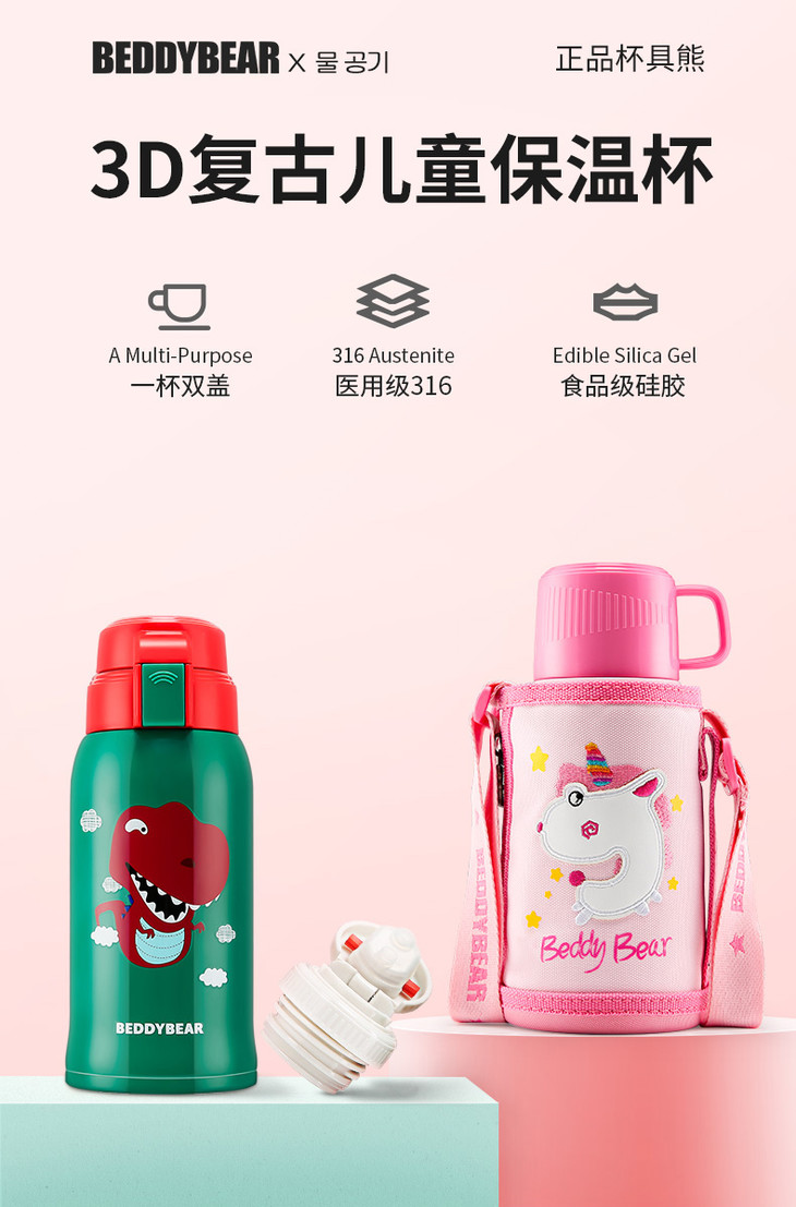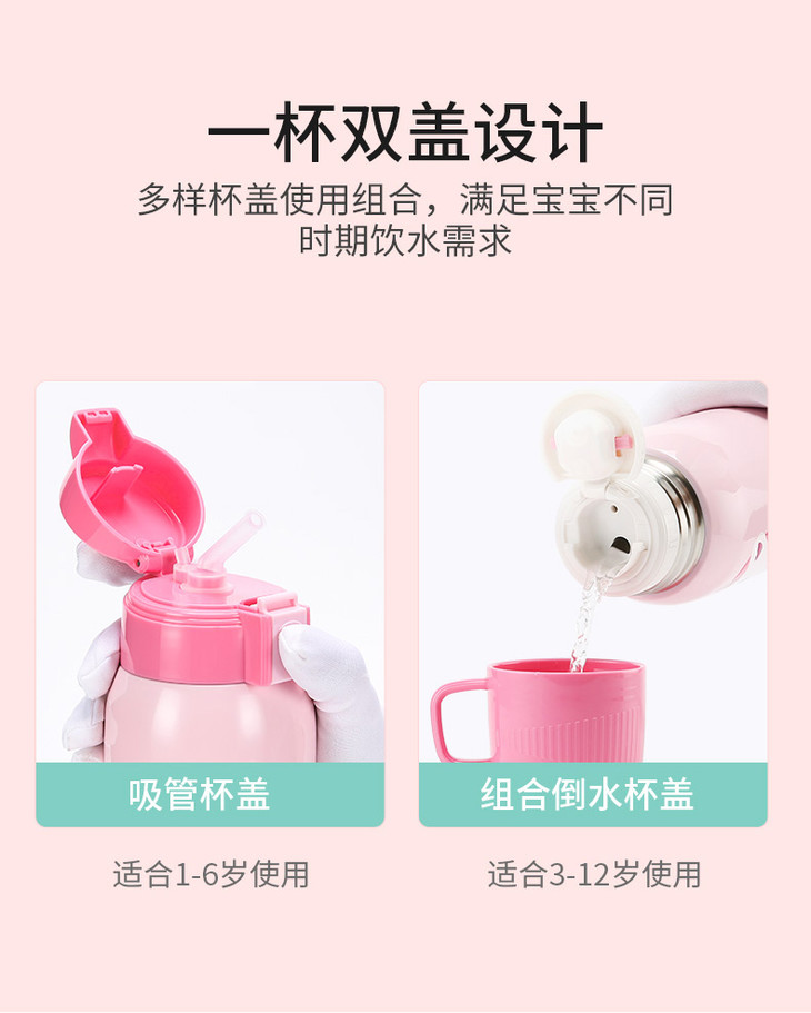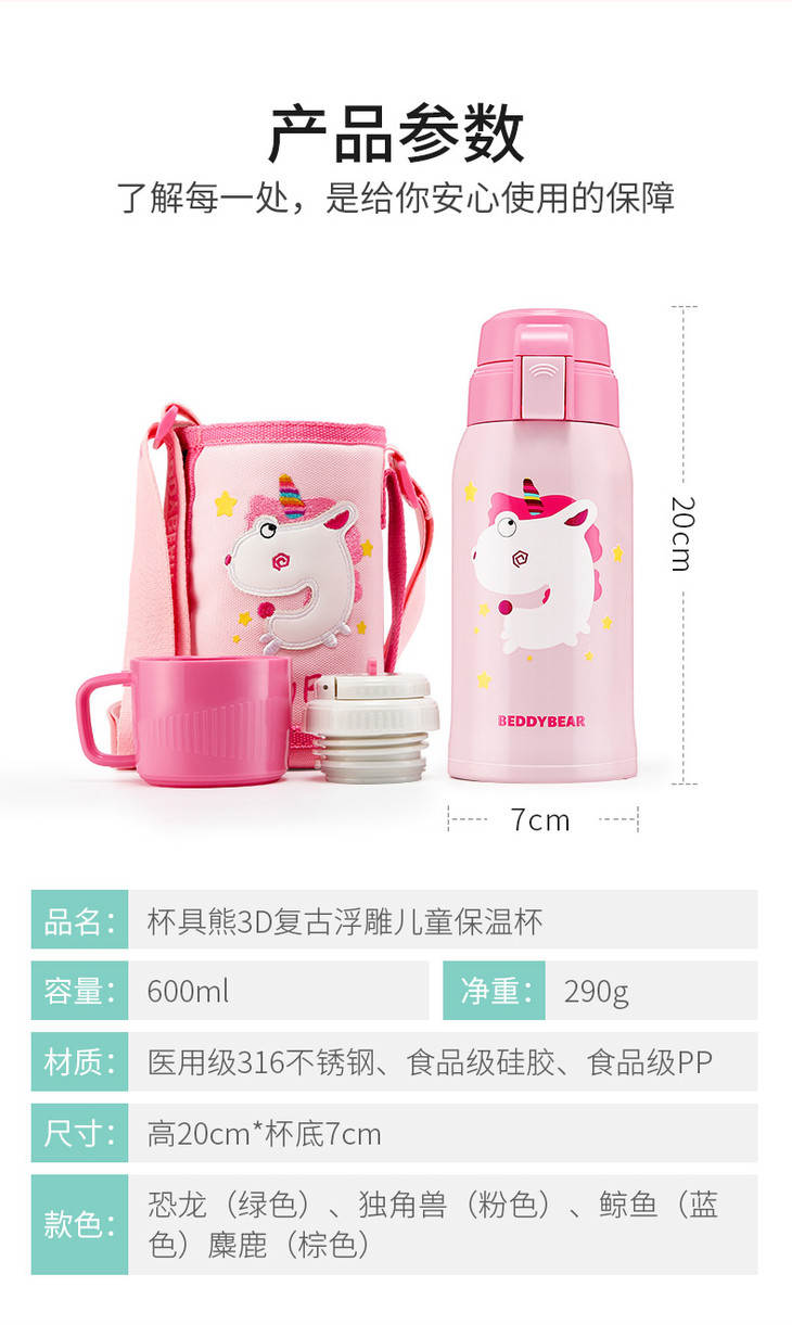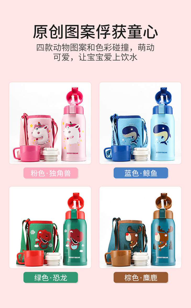 杯具熊3D麋鹿儿童保温杯宝宝吸管水杯学生便携水壶