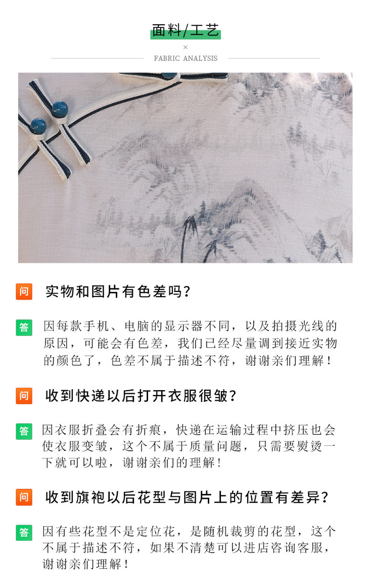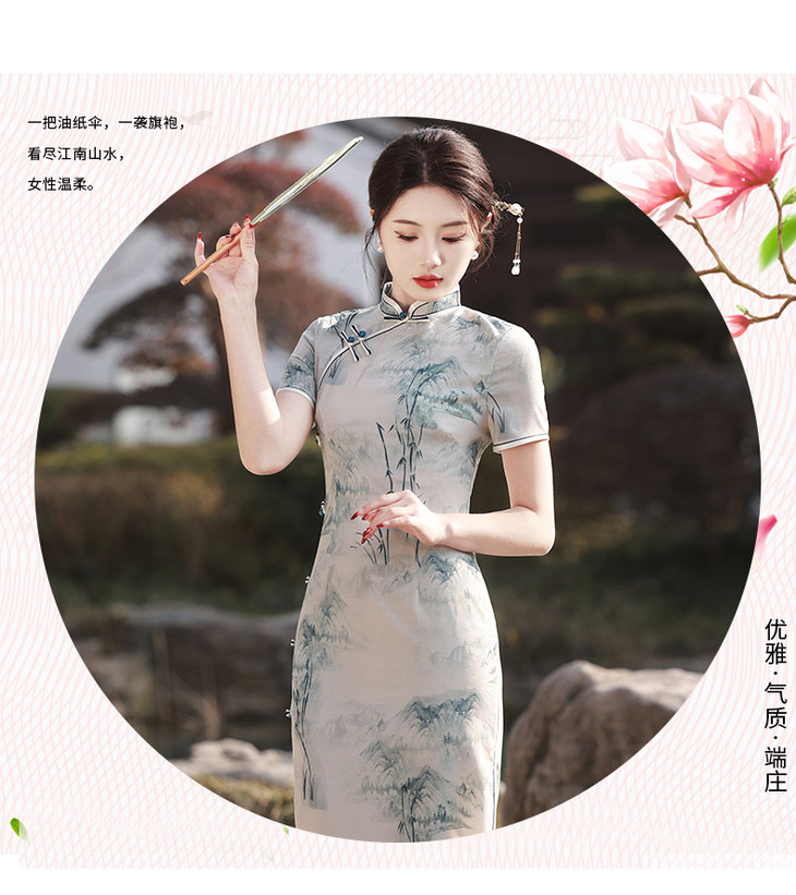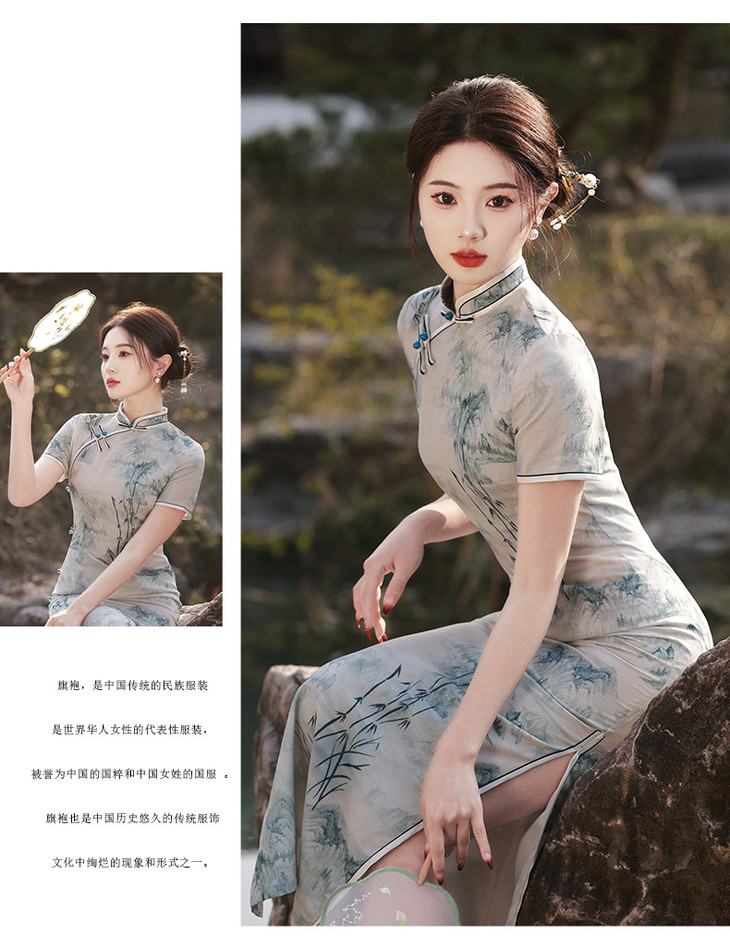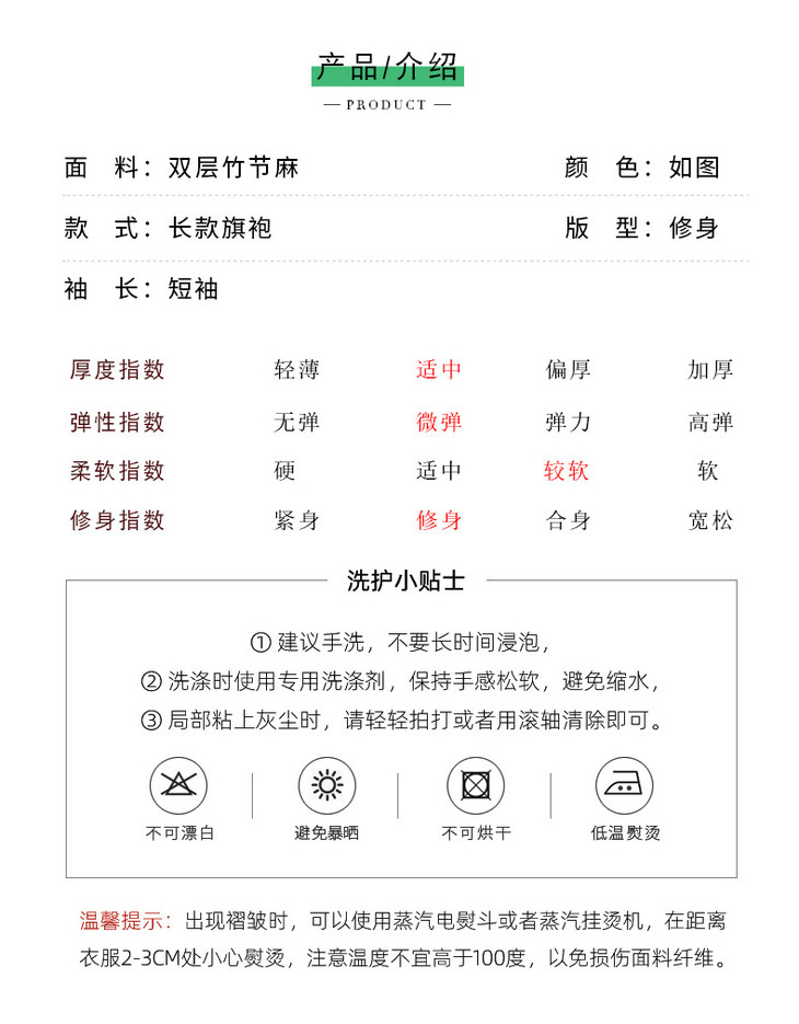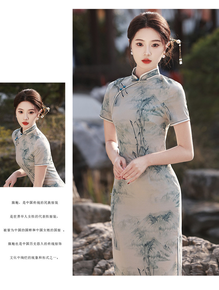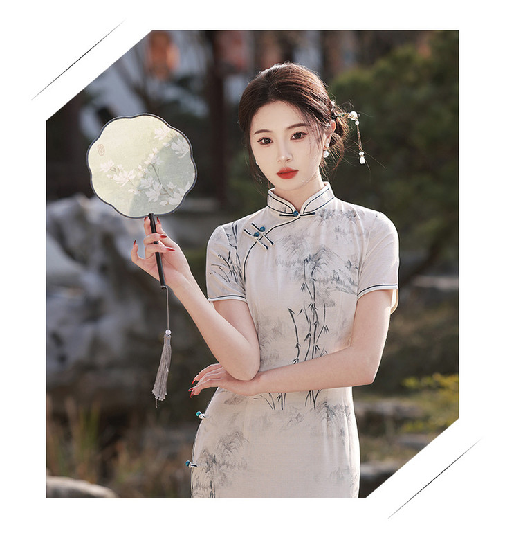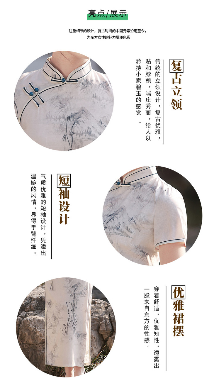 双层竹节麻显瘦日常穿搭旗袍连衣裙MLS6880
