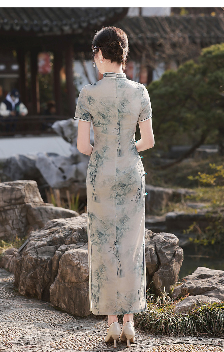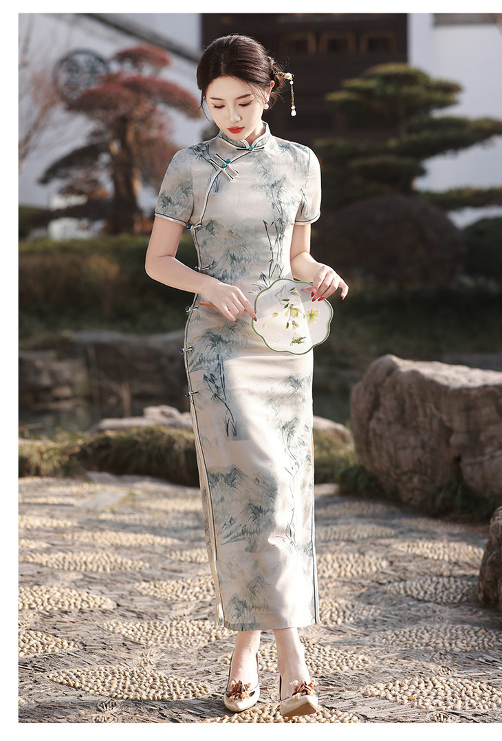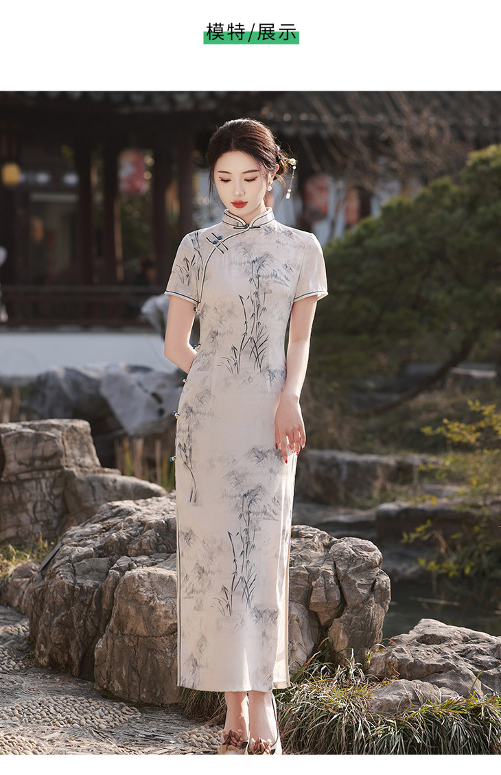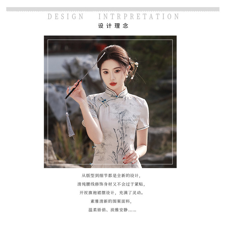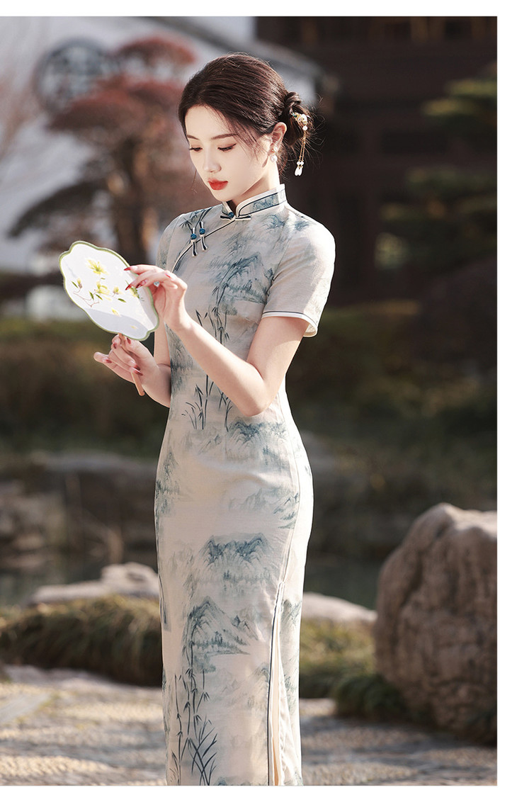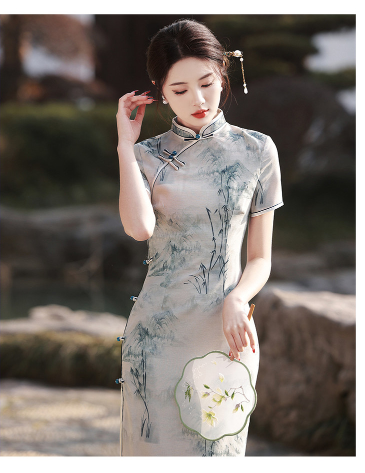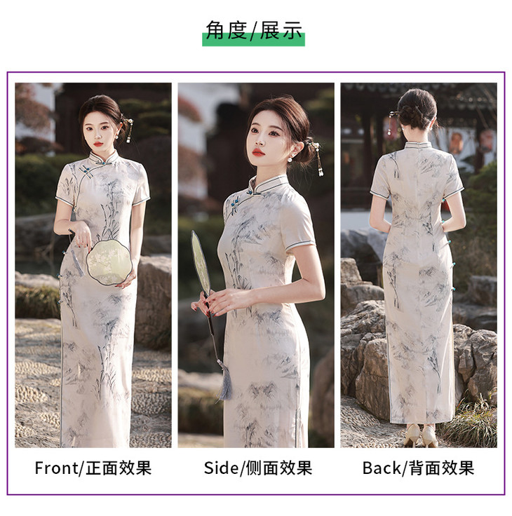 双层竹节麻显瘦日常穿搭旗袍连衣裙MLS6880