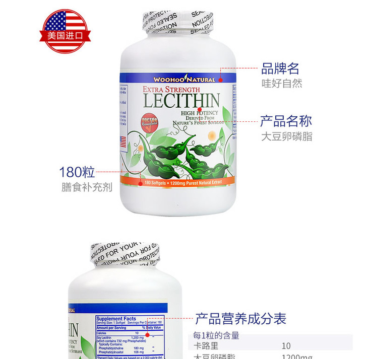 【保税仓】哇好自然美国原装进口大豆卵磷脂软胶囊血管清道夫清血管保健品 商品图0