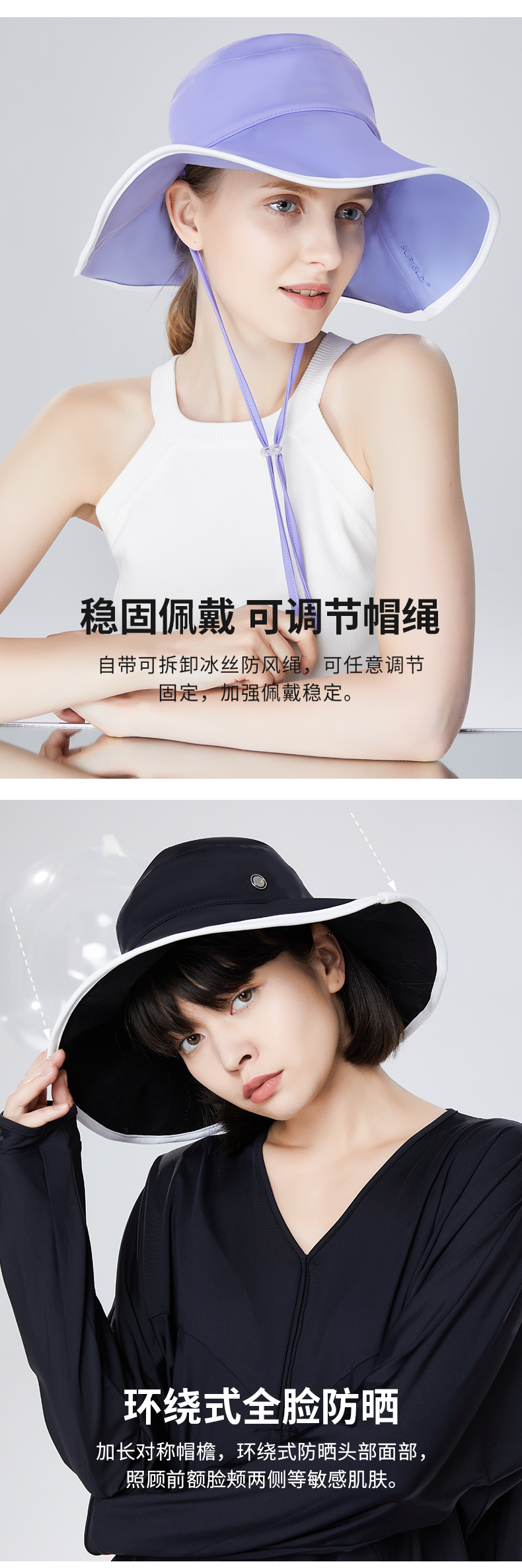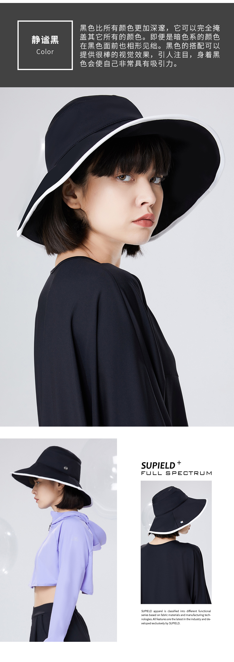 Supield素湃渔夫帽遮脸大檐太阳帽夏季户外休闲新款女士防晒帽子