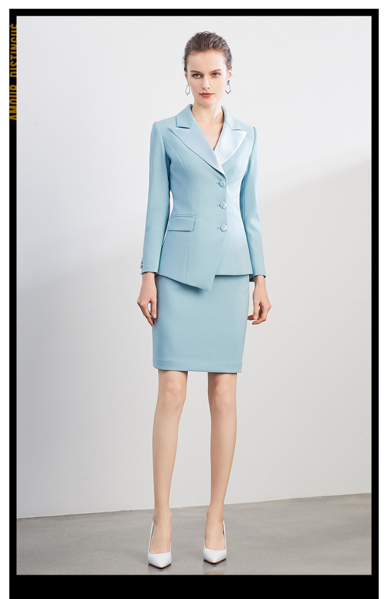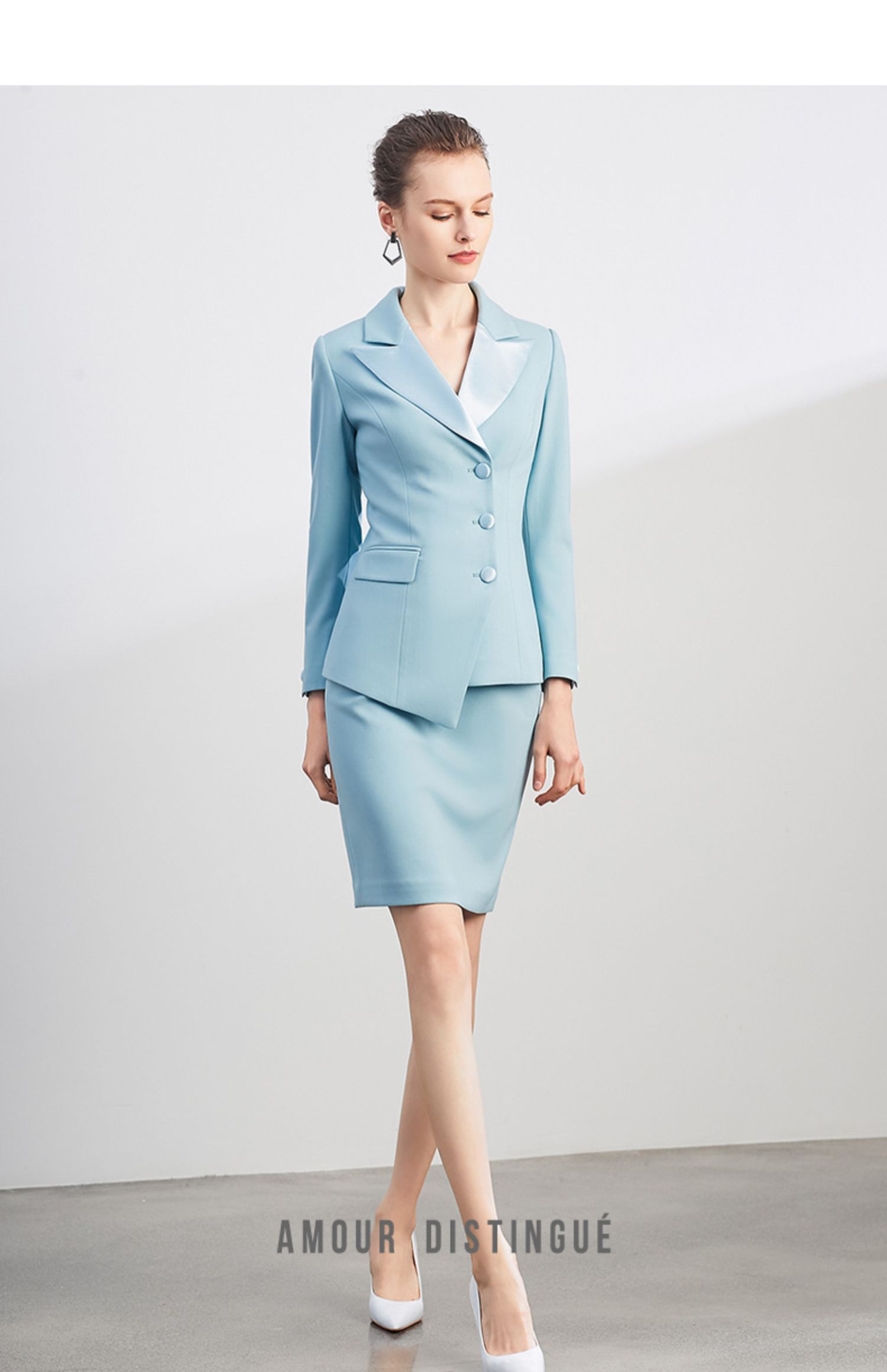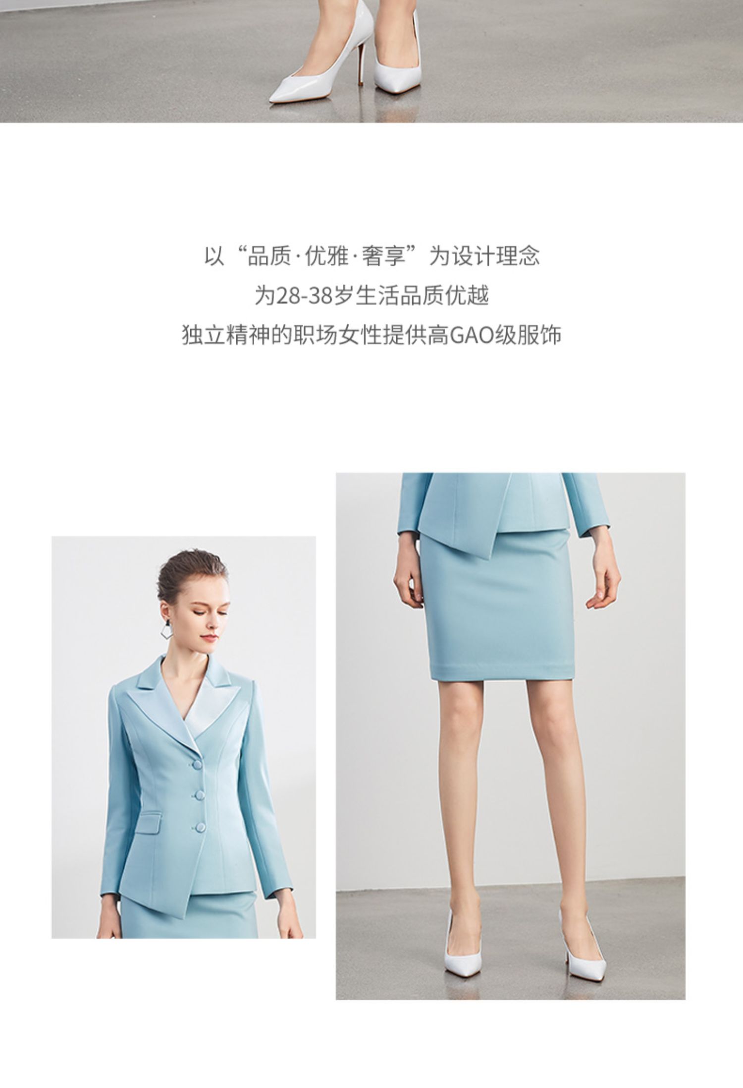IWY/蓝色拼接领西装套裙时尚修身工作服商务通勤高端职业装气质女神范 CS1195