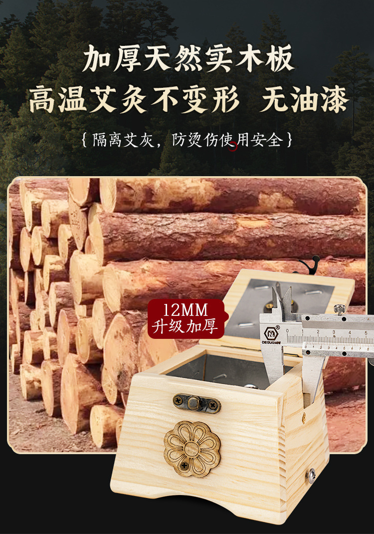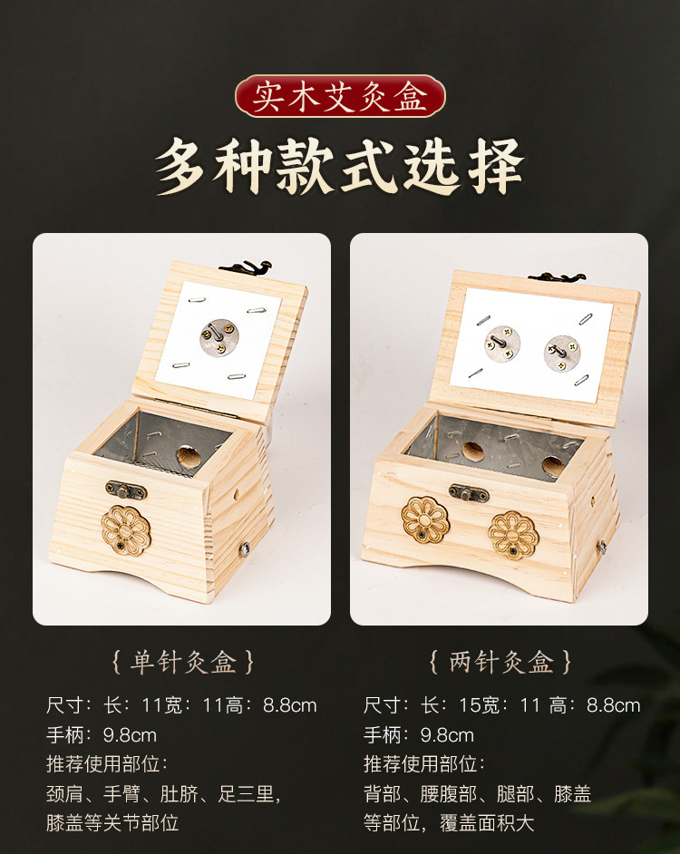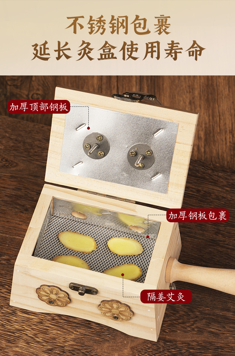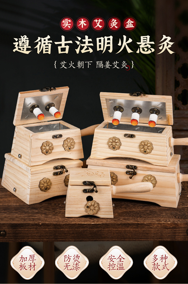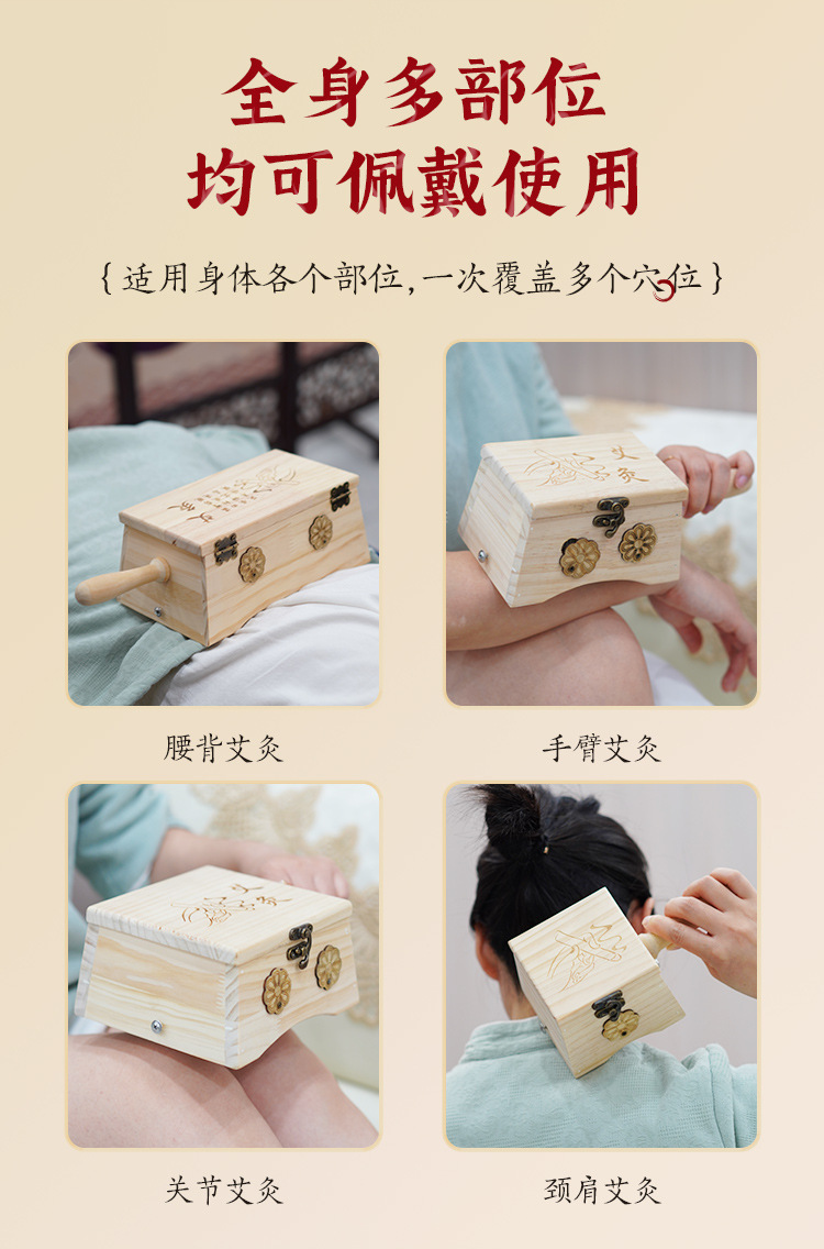 【实木制艾灸盒】家用随身灸腹部肚子 大号多孔悬炙全身灸艾灸器具
