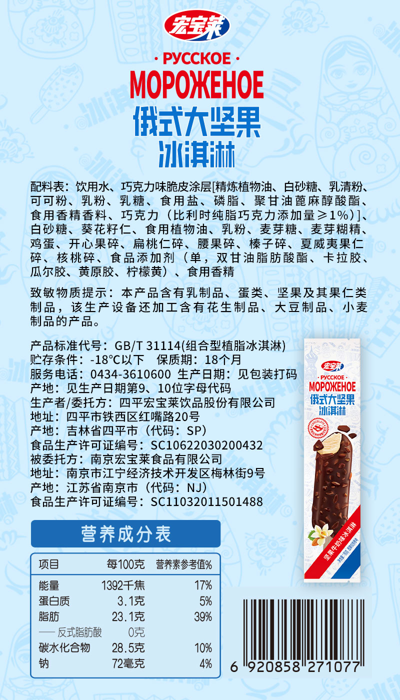宏宝莱俄式大坚果牛奶味82g/130249 绵密醇厚乳香四溢