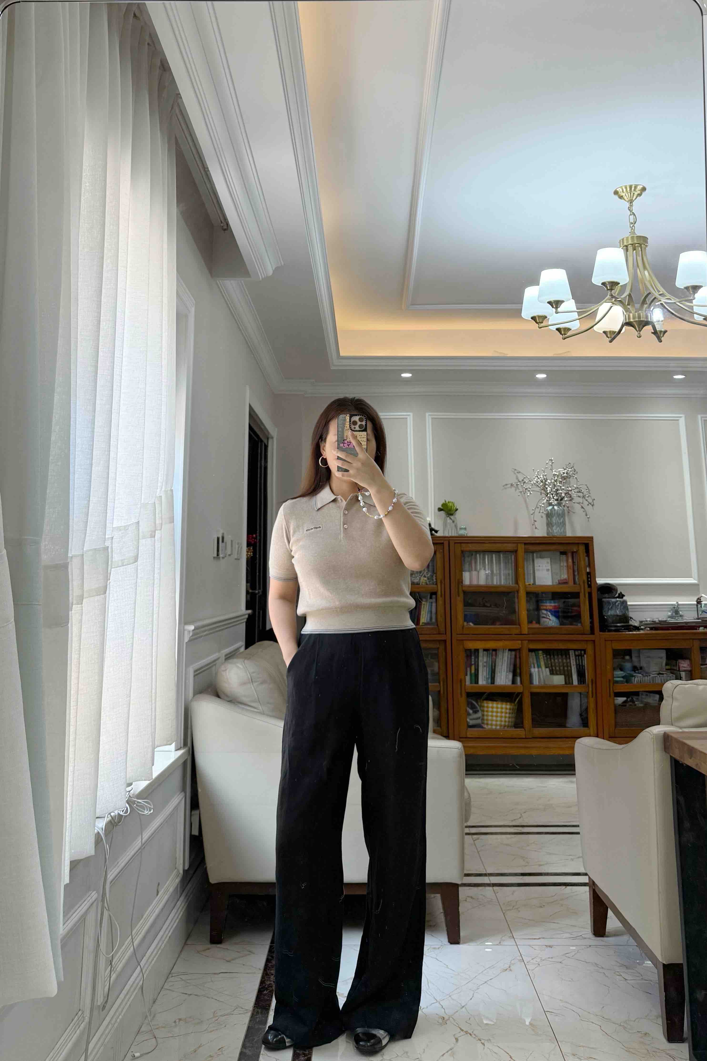 姑娘们记,得高级是感有公式,的冷淡老钱专风属的滴饱度和燕麦色,青春靓校丽园风的polo翻短领款短袖,这冲波突感就是高级所感在。