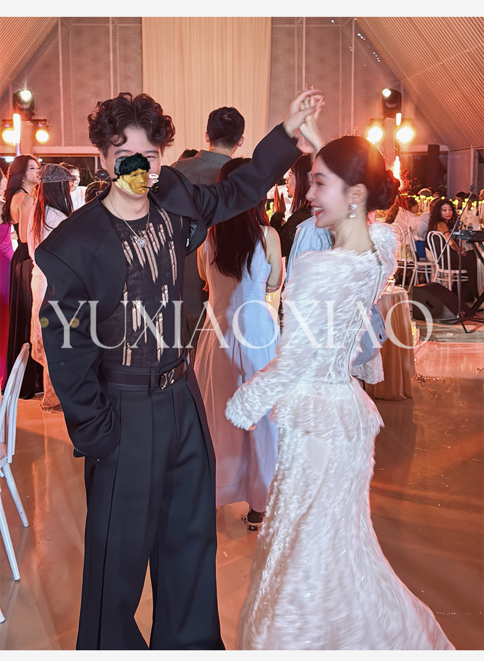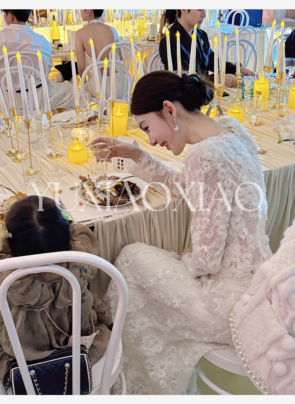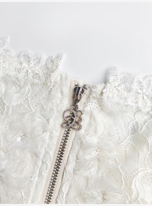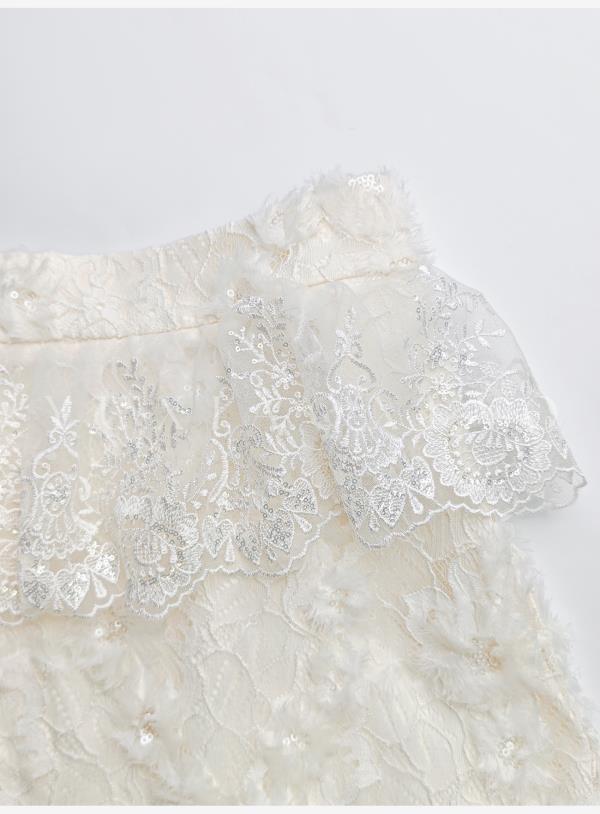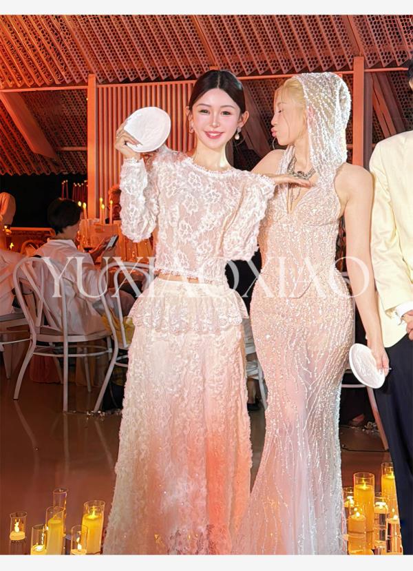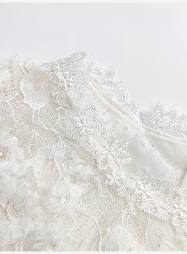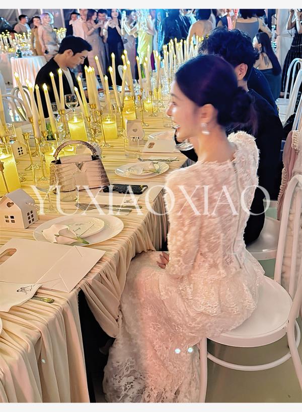 余潇潇【深情告白】法式轻熟重工圆领绣花蕾丝上衣&隐拉长裙套装