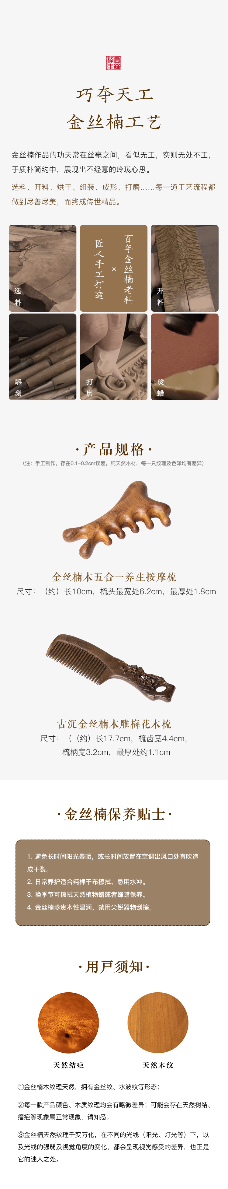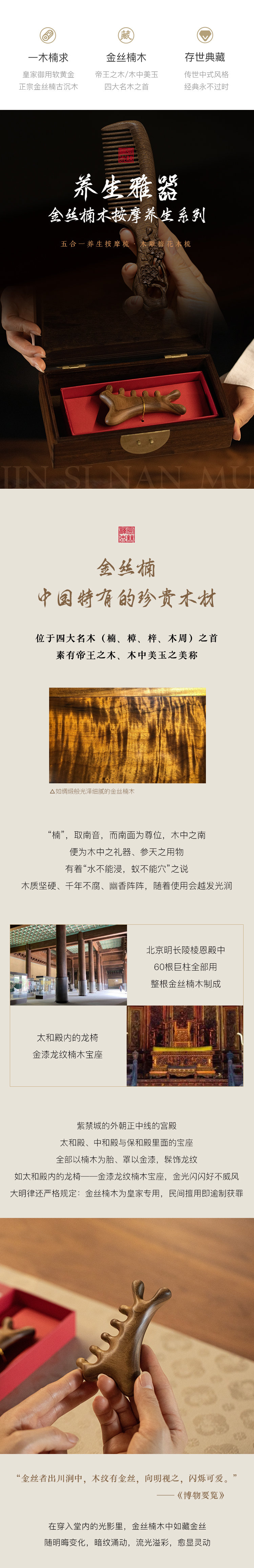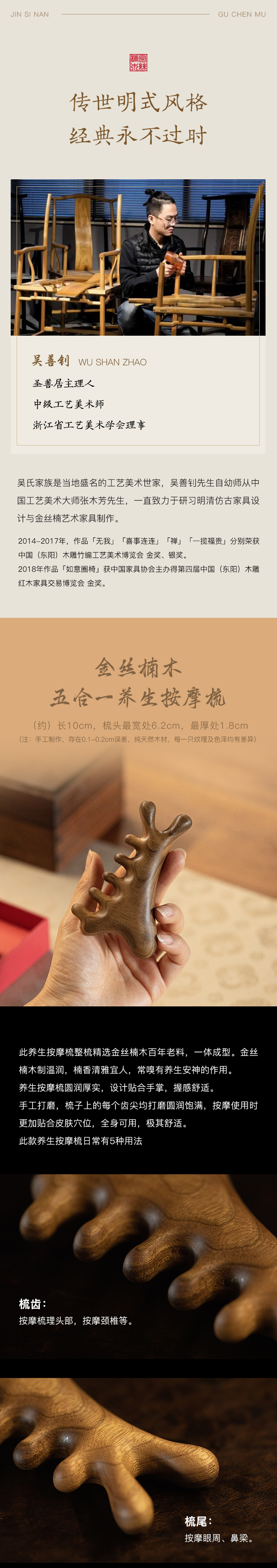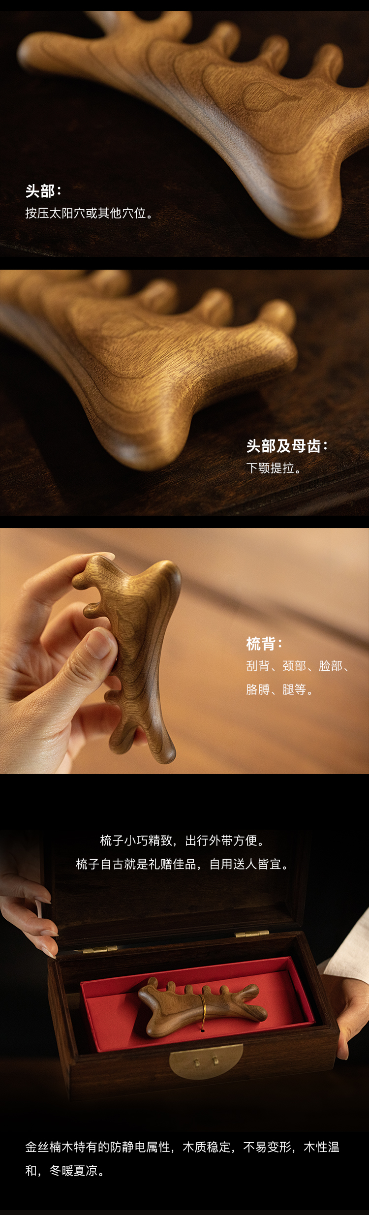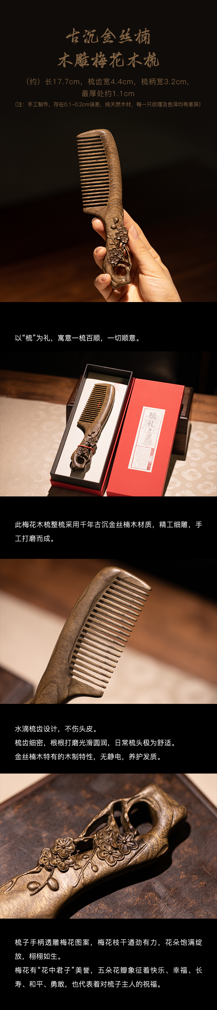 金丝楠木按摩梳五合一养生按摩梳&古沉木雕梅花梳