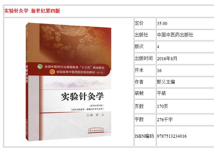 实验针灸学 新世纪第4四版 全国高等中医药院校规划教材 第十10版 十三五规划教材 郭义主编 供针灸推拿学康复治疗学专业用 中医药