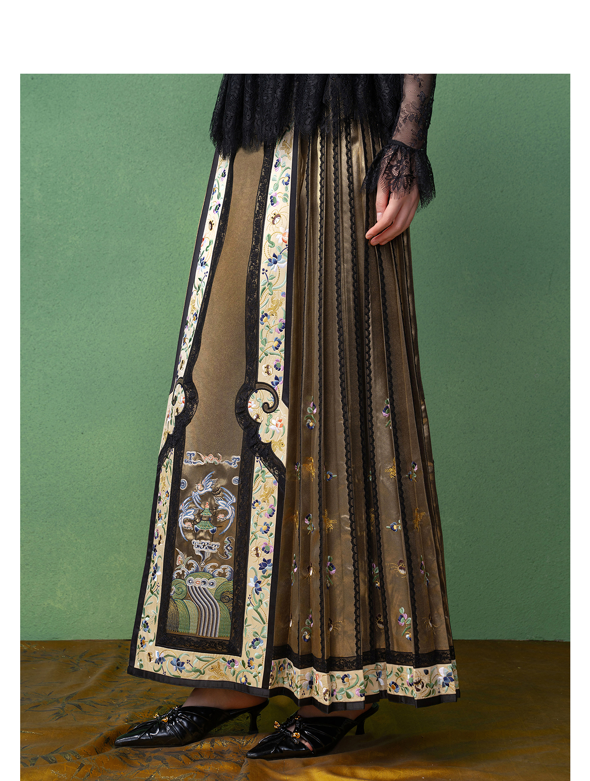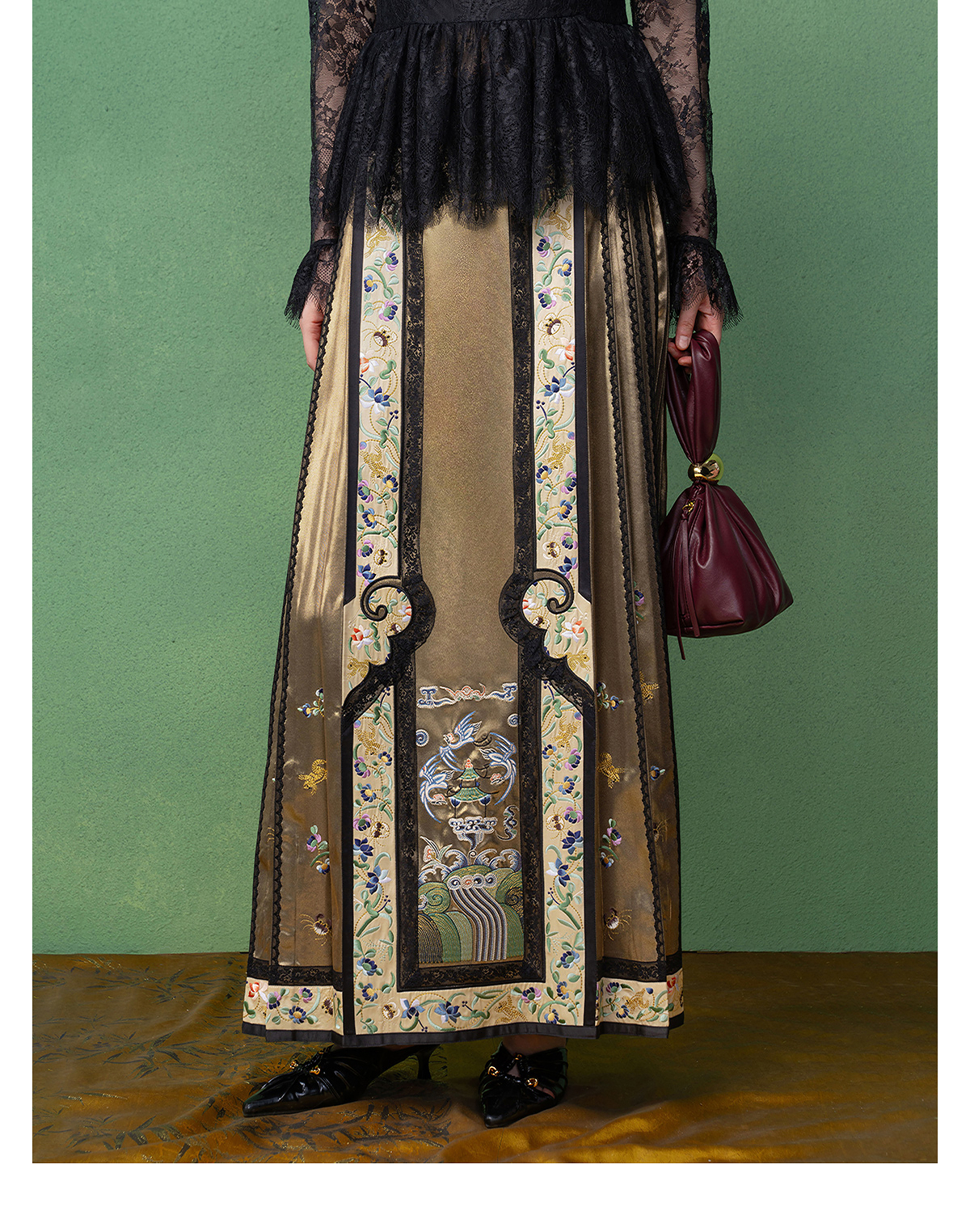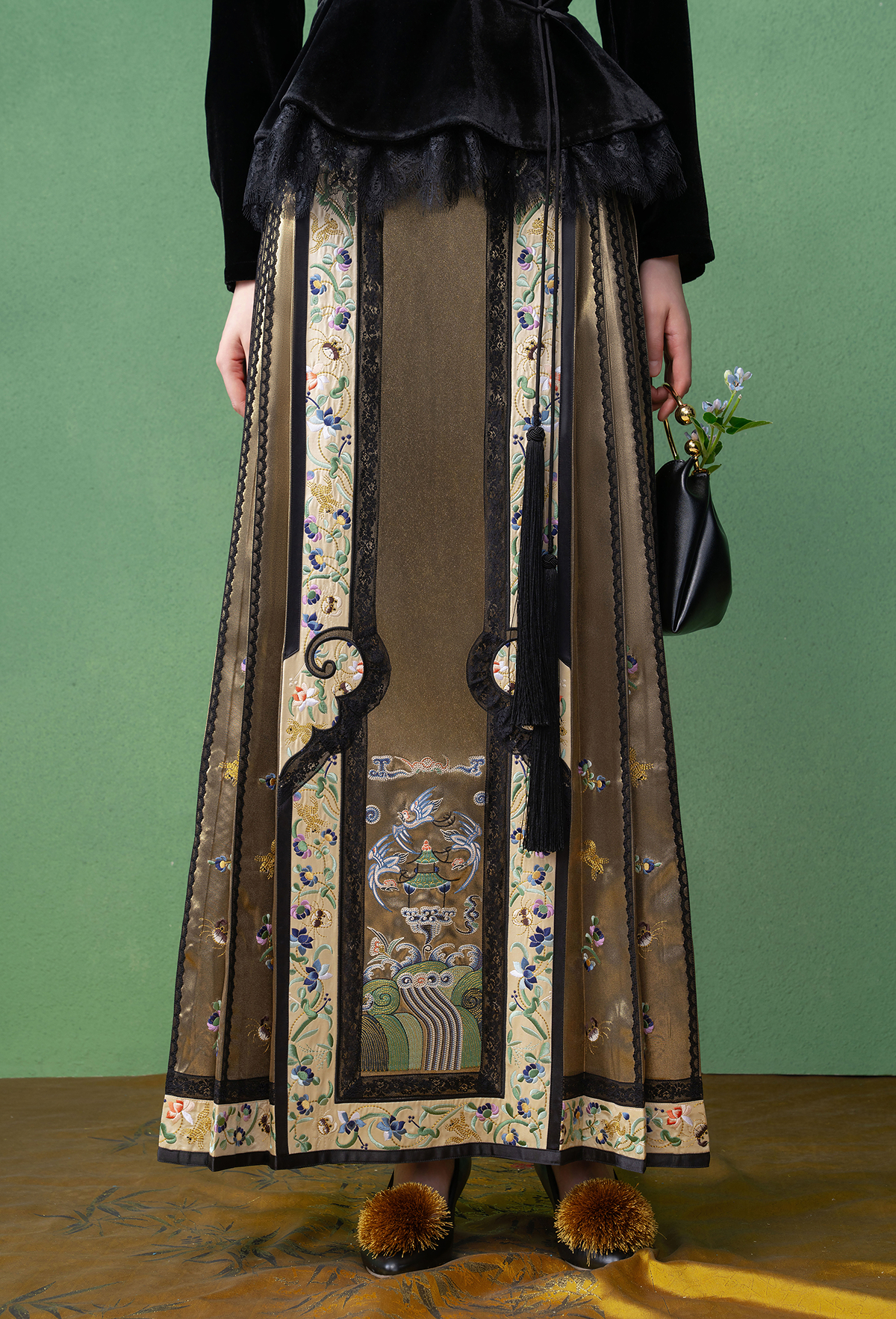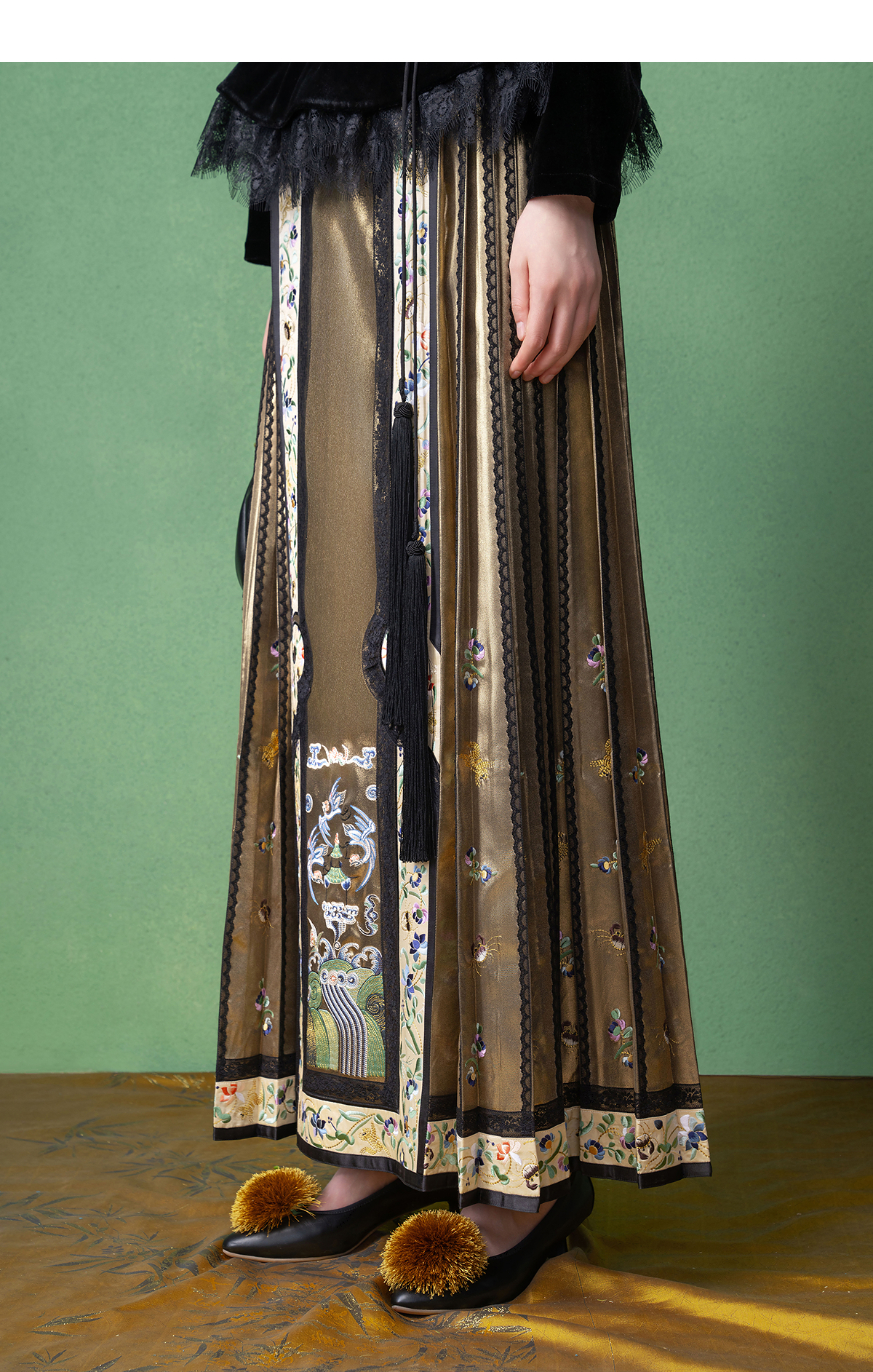 【林栖设计小店】生活在左马面裙蟾宫折桂金缎国风2025秋季新款半身裙1953111