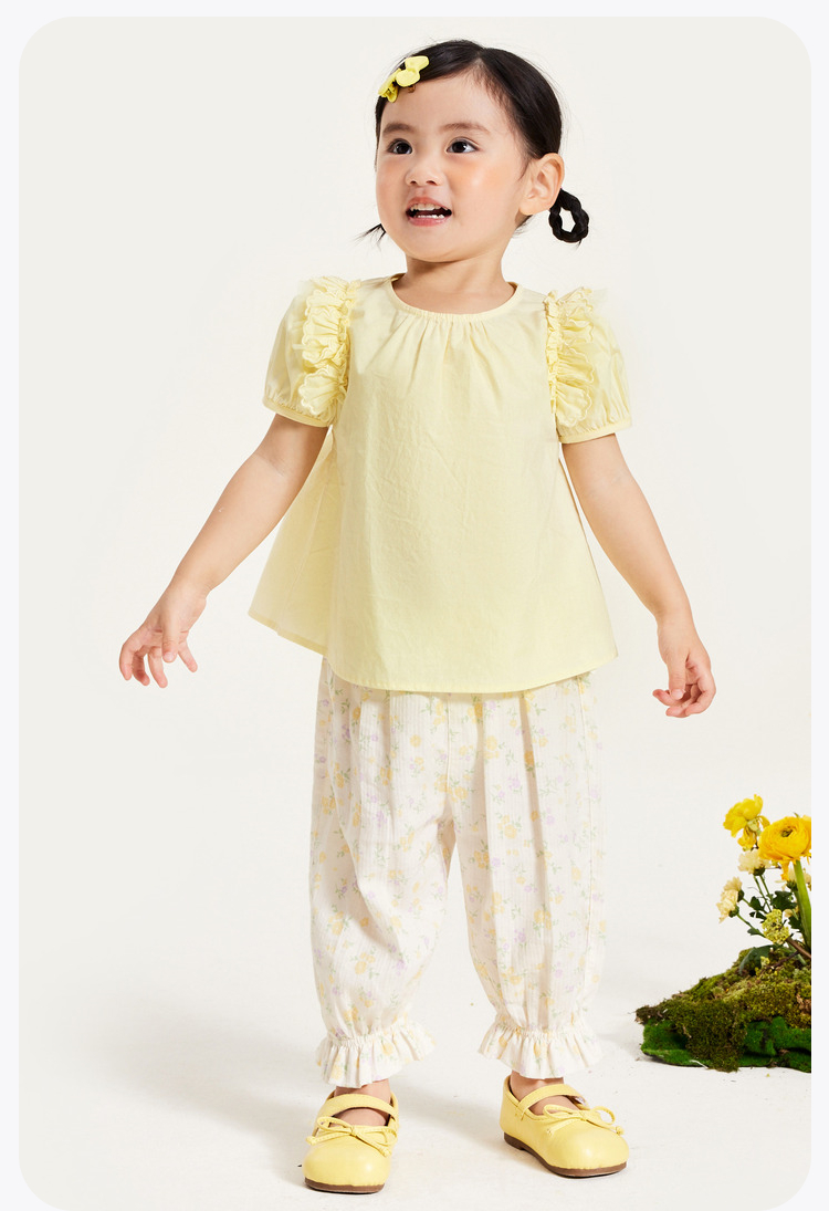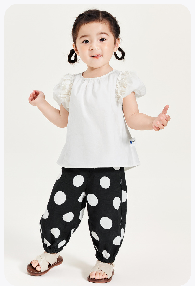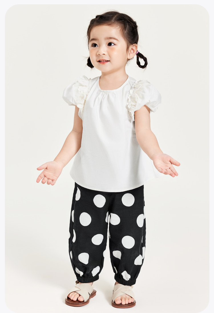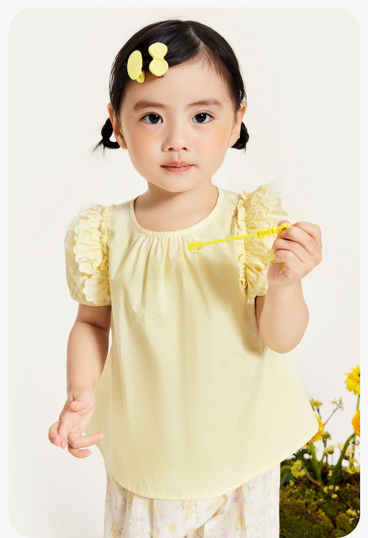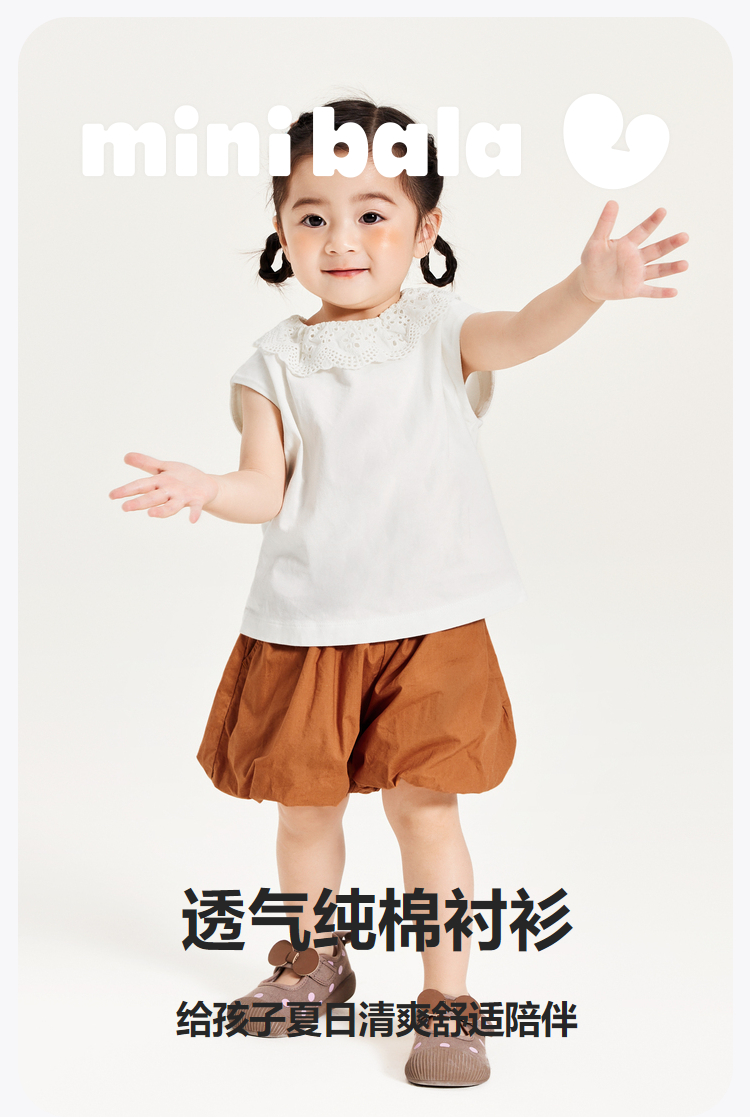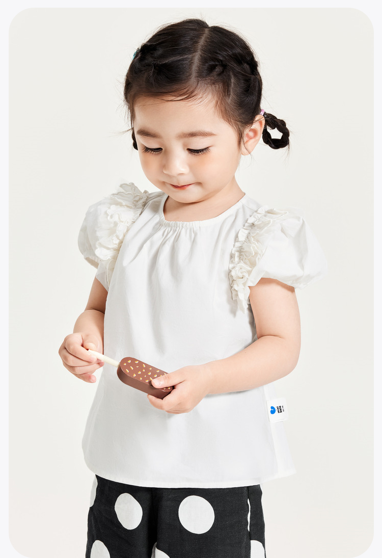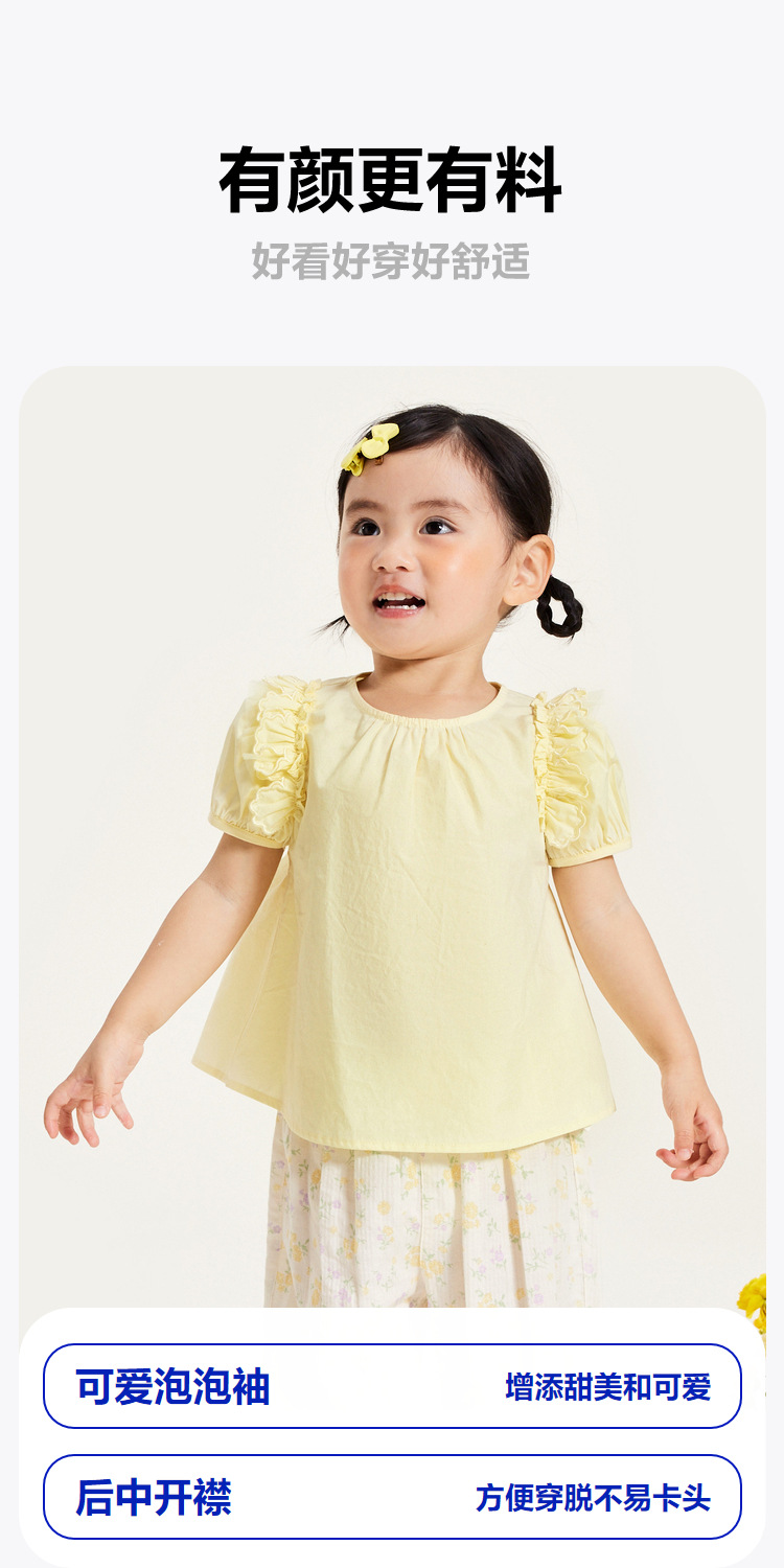 迷你巴拉女童短袖衬衫夏季宝宝婴童透气纯棉泡泡袖儿童衬衫