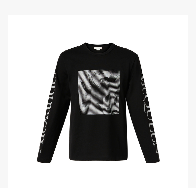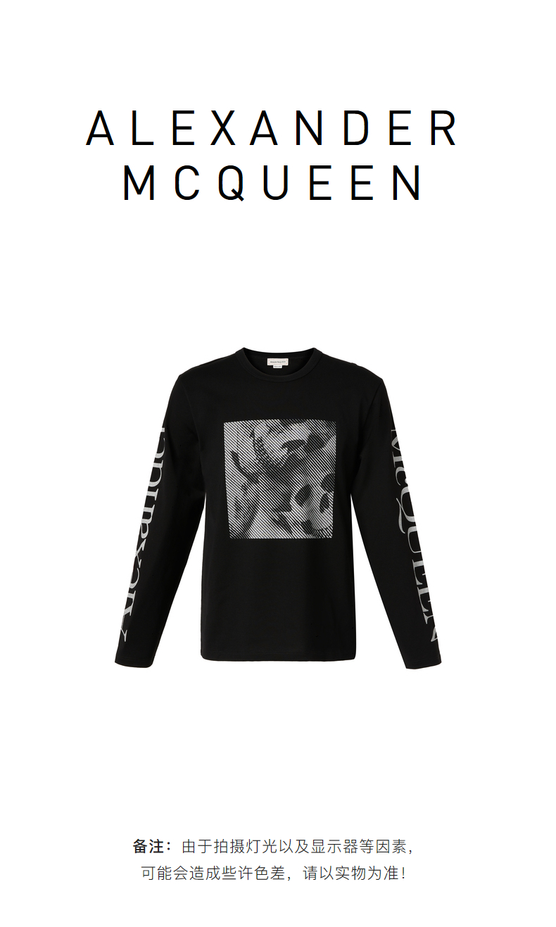 ALEXANDER MCQUEEN 亚历山大.麦昆 2023春夏新品 男士印花图案长袖T恤 黑色 682522QSZ67