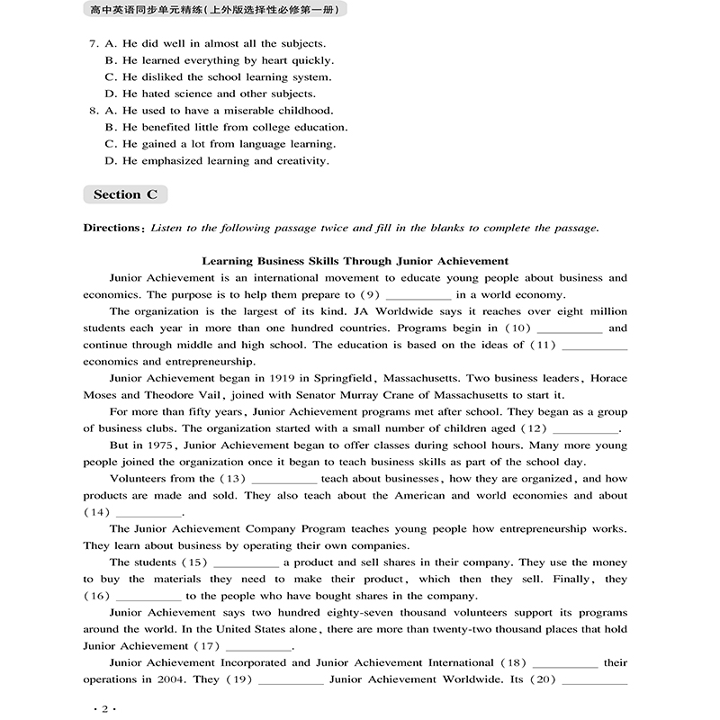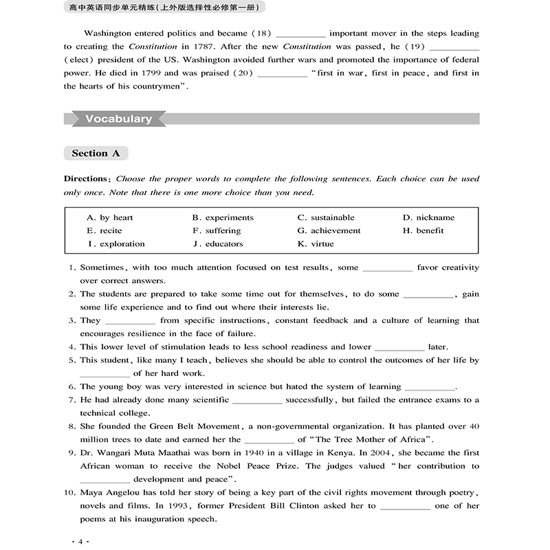 高中英语同步单元精练 上外版 选择性必修第一册(SW版) 高二年级下册选必修1 上海高中英语教材同步单元训练 上海交通大学出版社