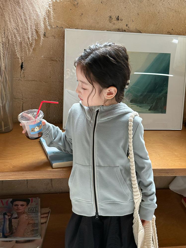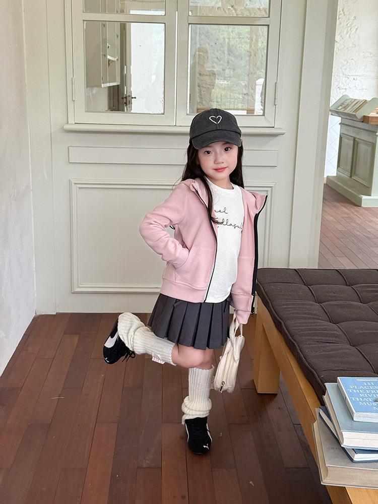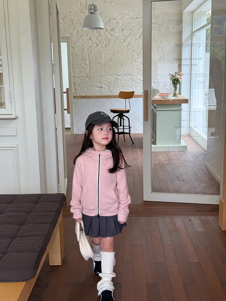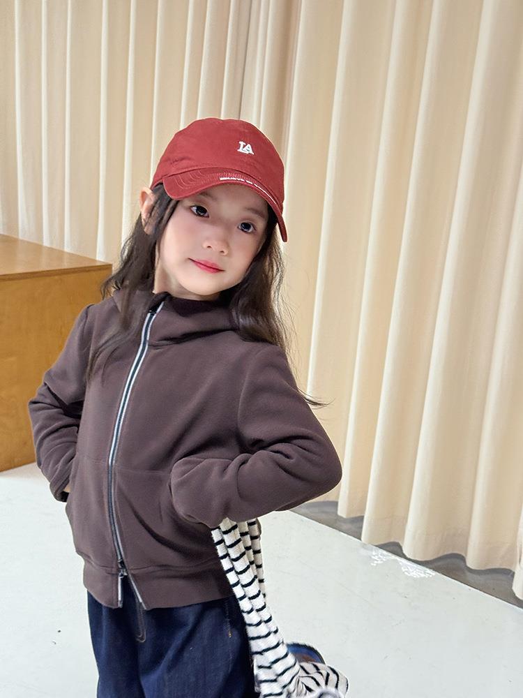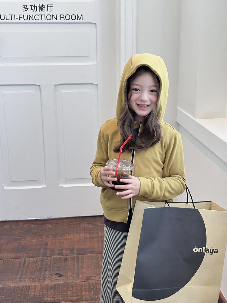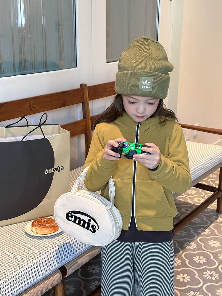 艾摩贝贝女童秋冬季可内搭上衣羊毛双面绒洋气撞色修身卫衣外套