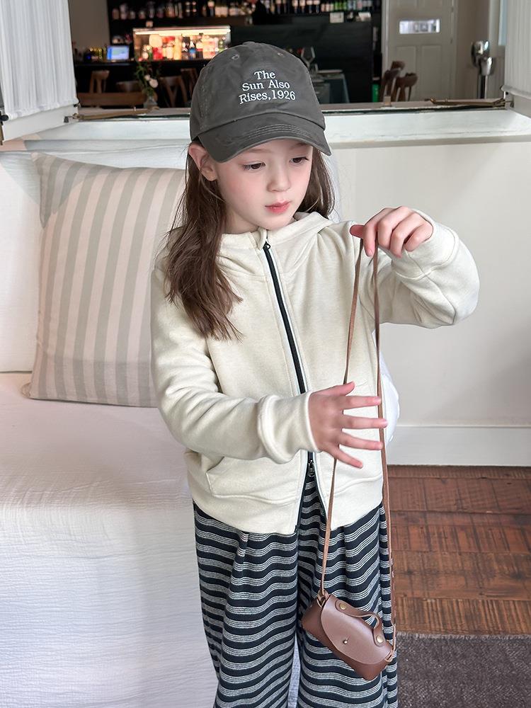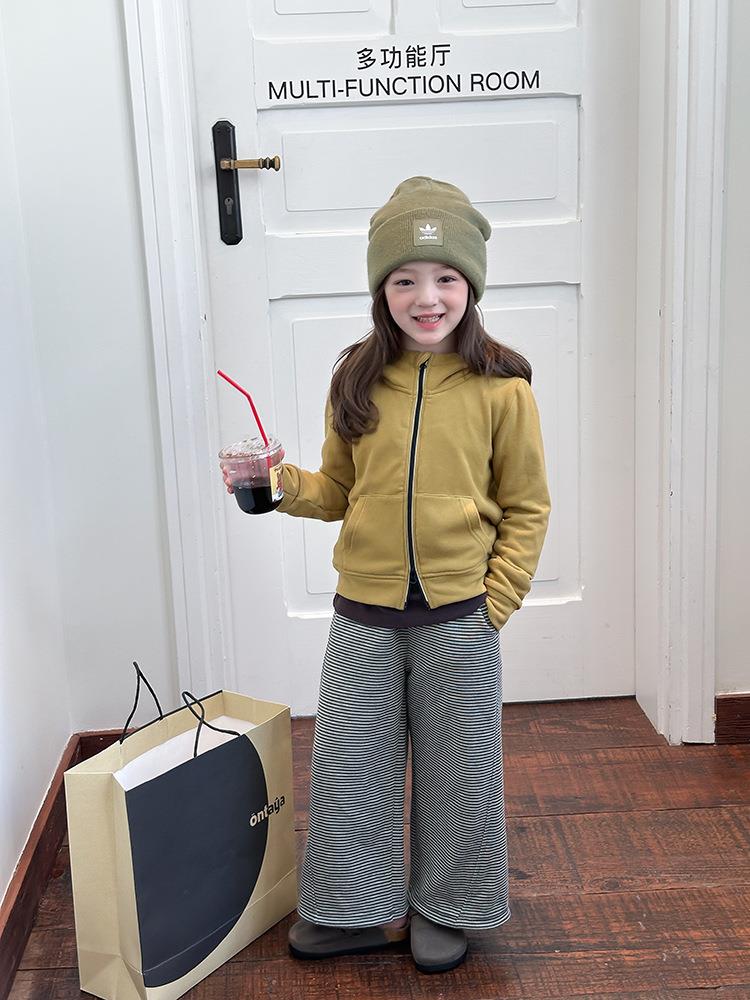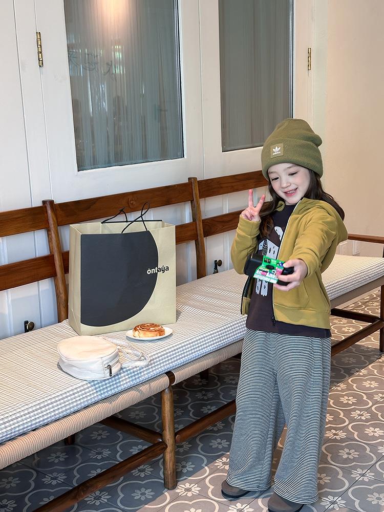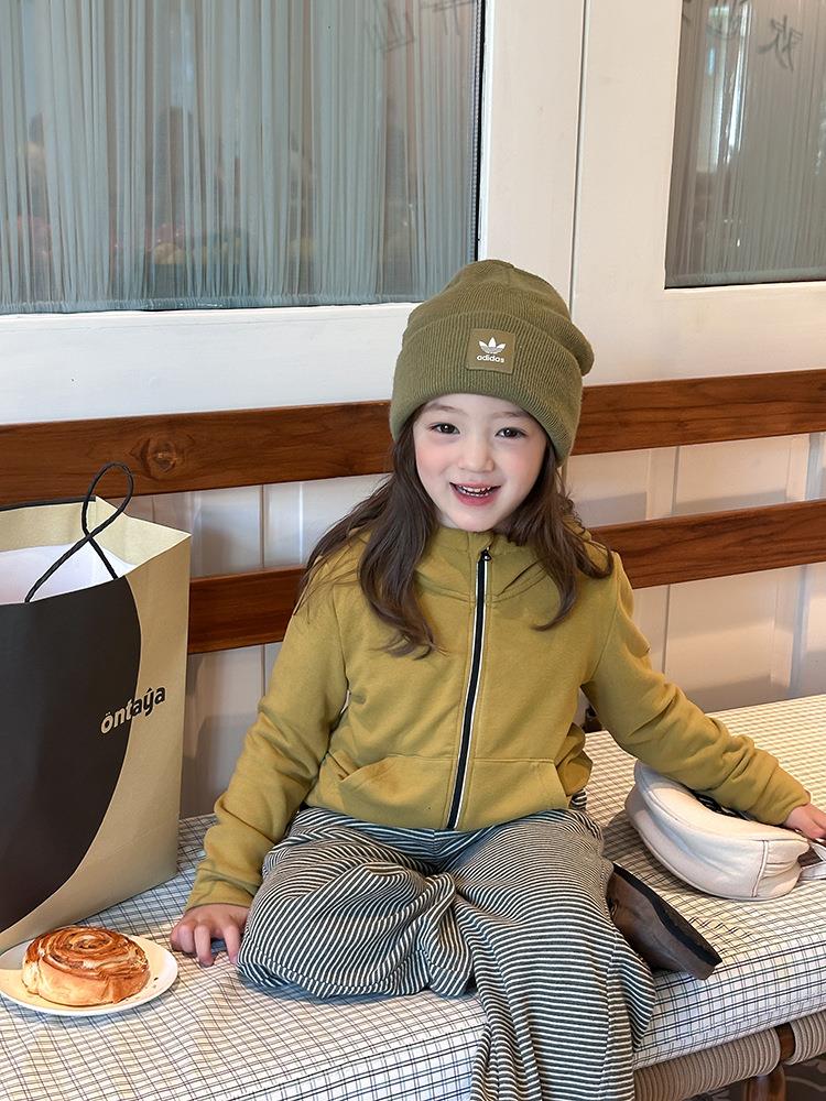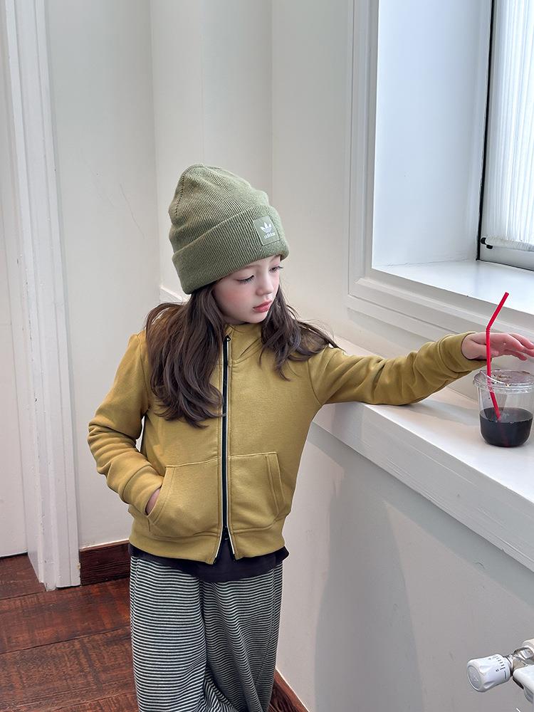 艾摩贝贝女童秋冬季可内搭上衣羊毛双面绒洋气撞色修身卫衣外套