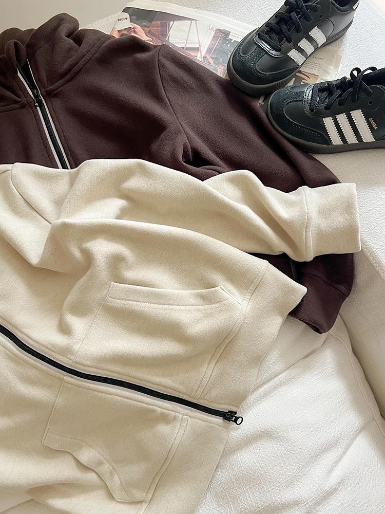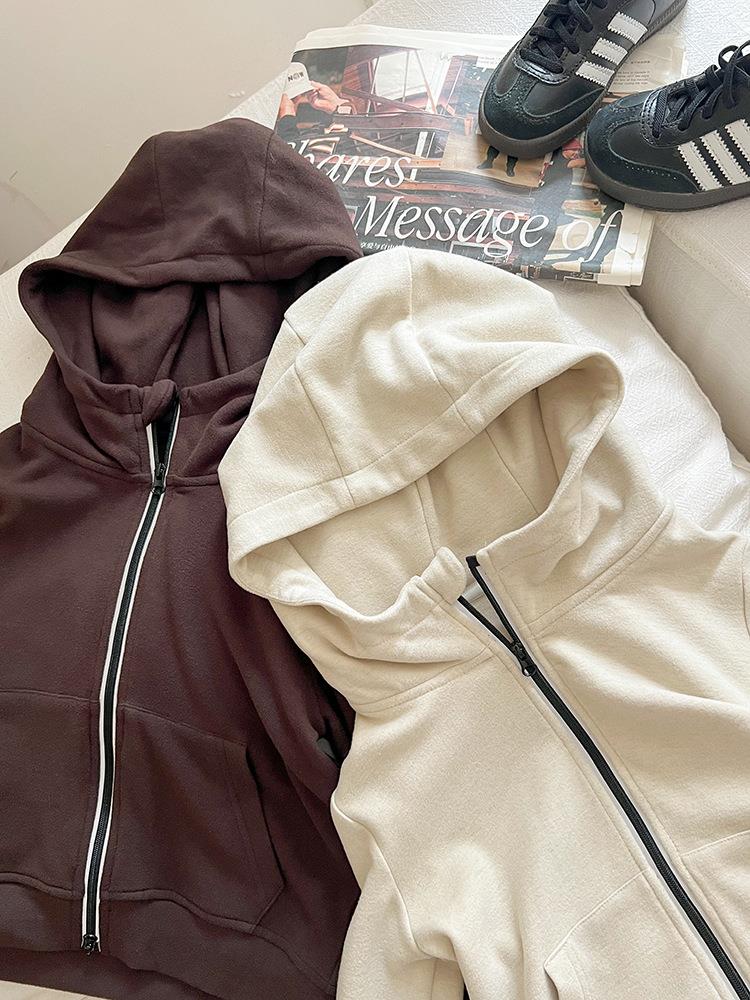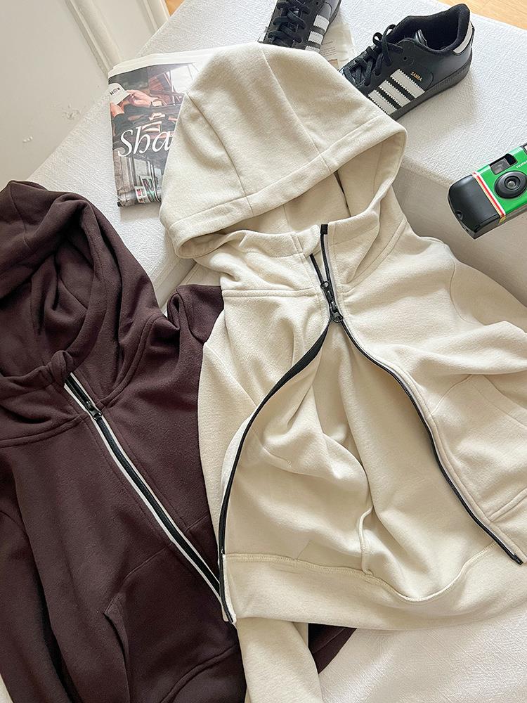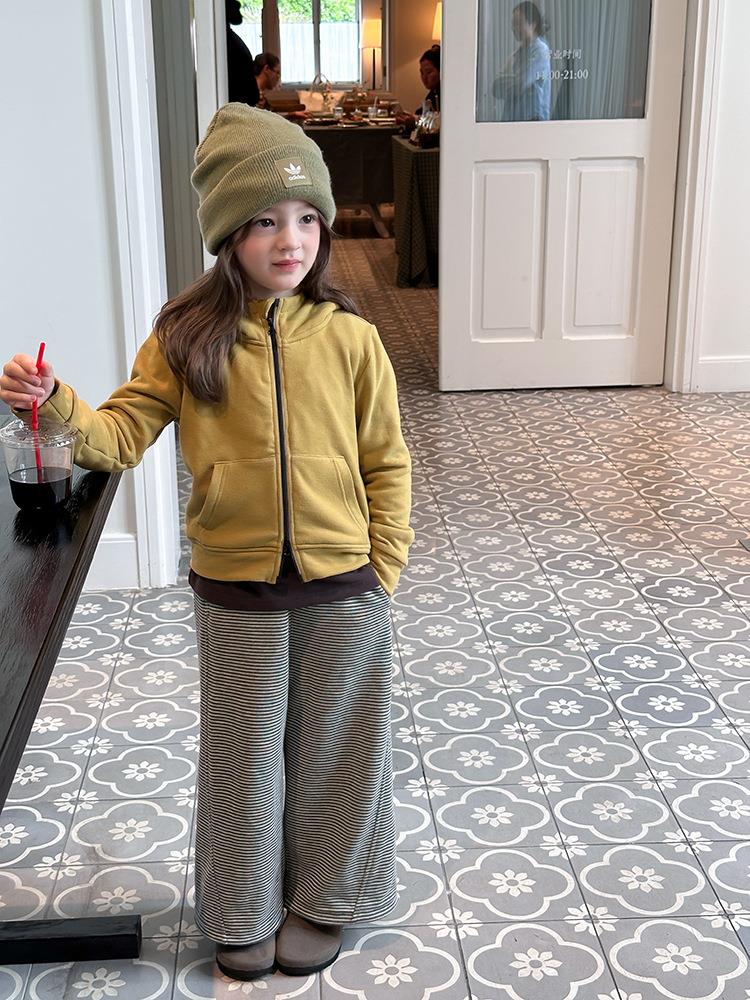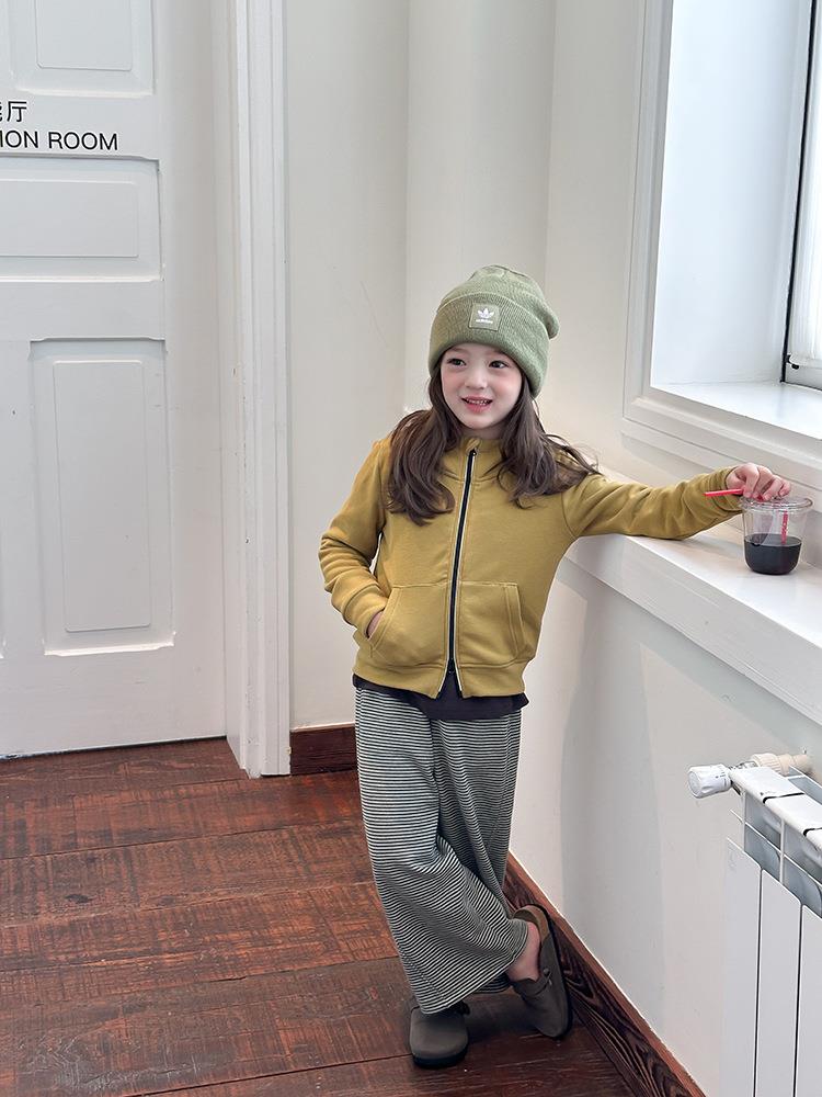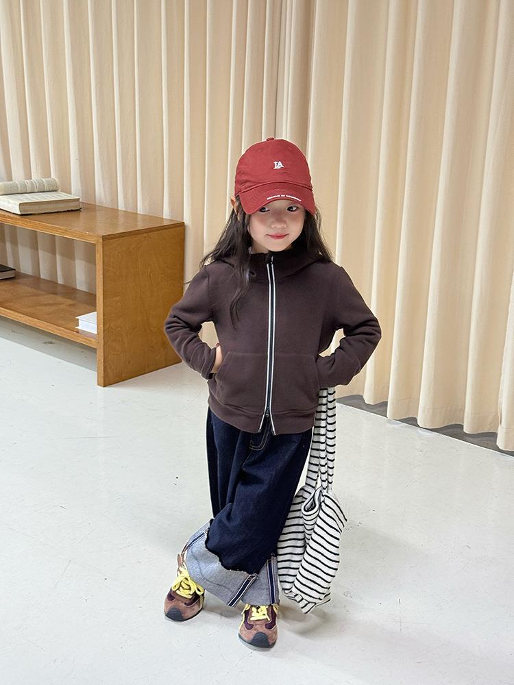 艾摩贝贝女童秋冬季可内搭上衣羊毛双面绒洋气撞色修身卫衣外套