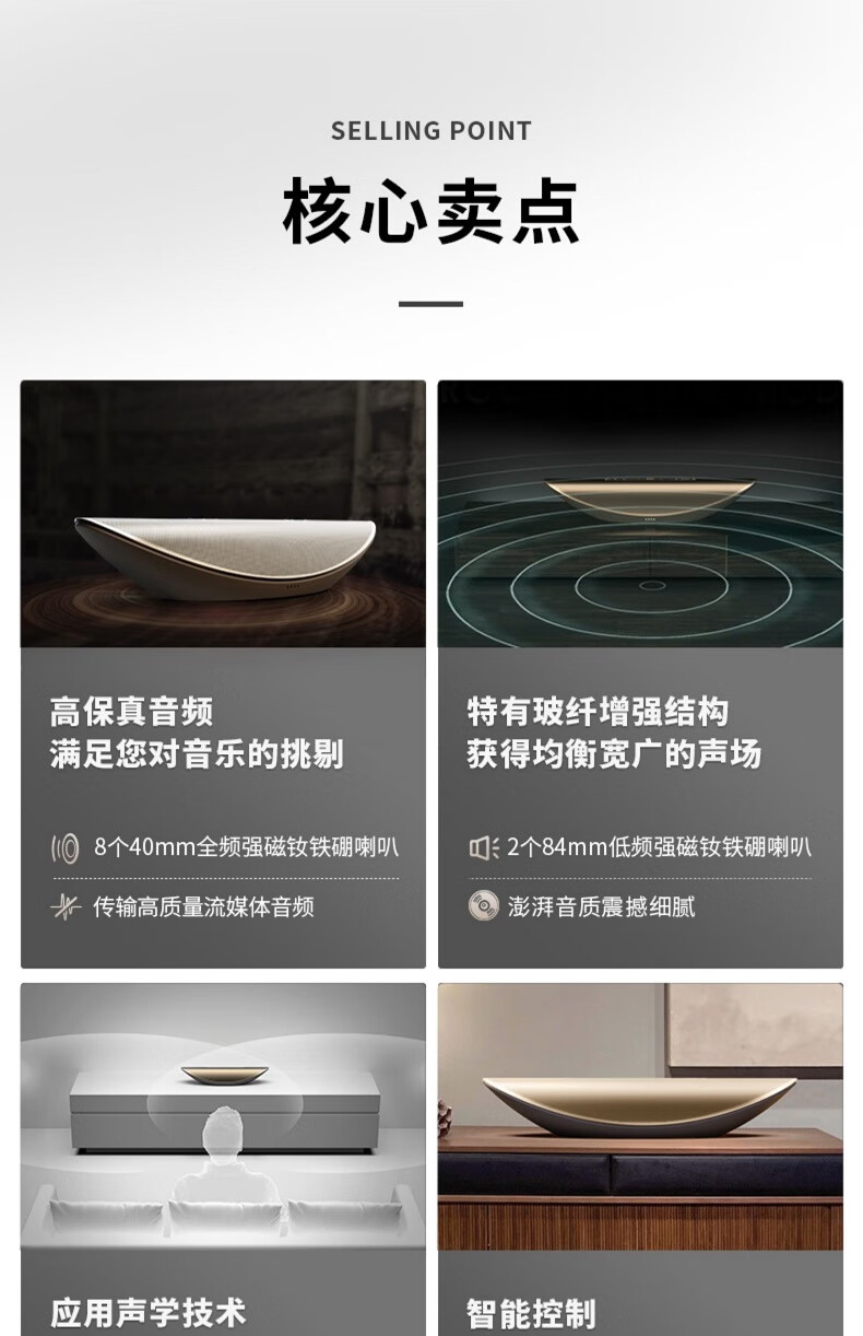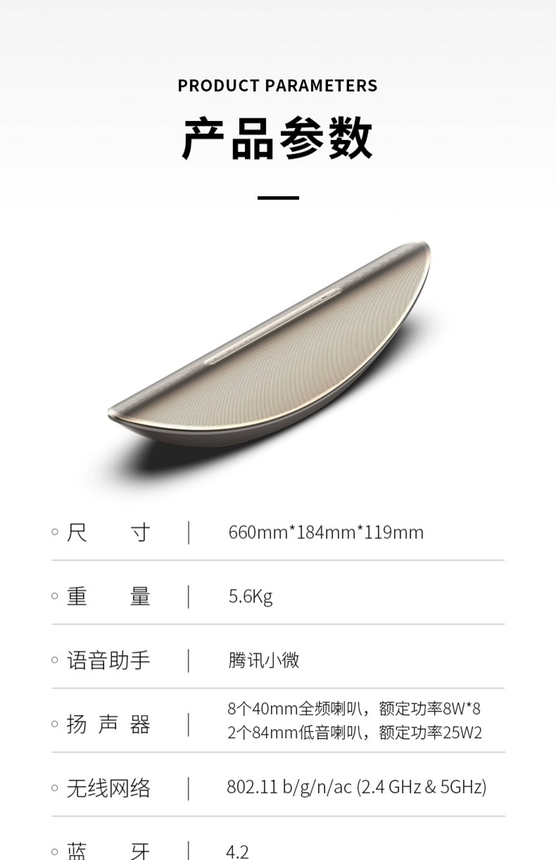 cleer CRESCENT 智能语音音箱多声道家用新款蓝牙音响声控无线 wifi 控制设备 金色