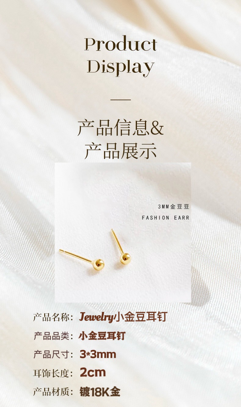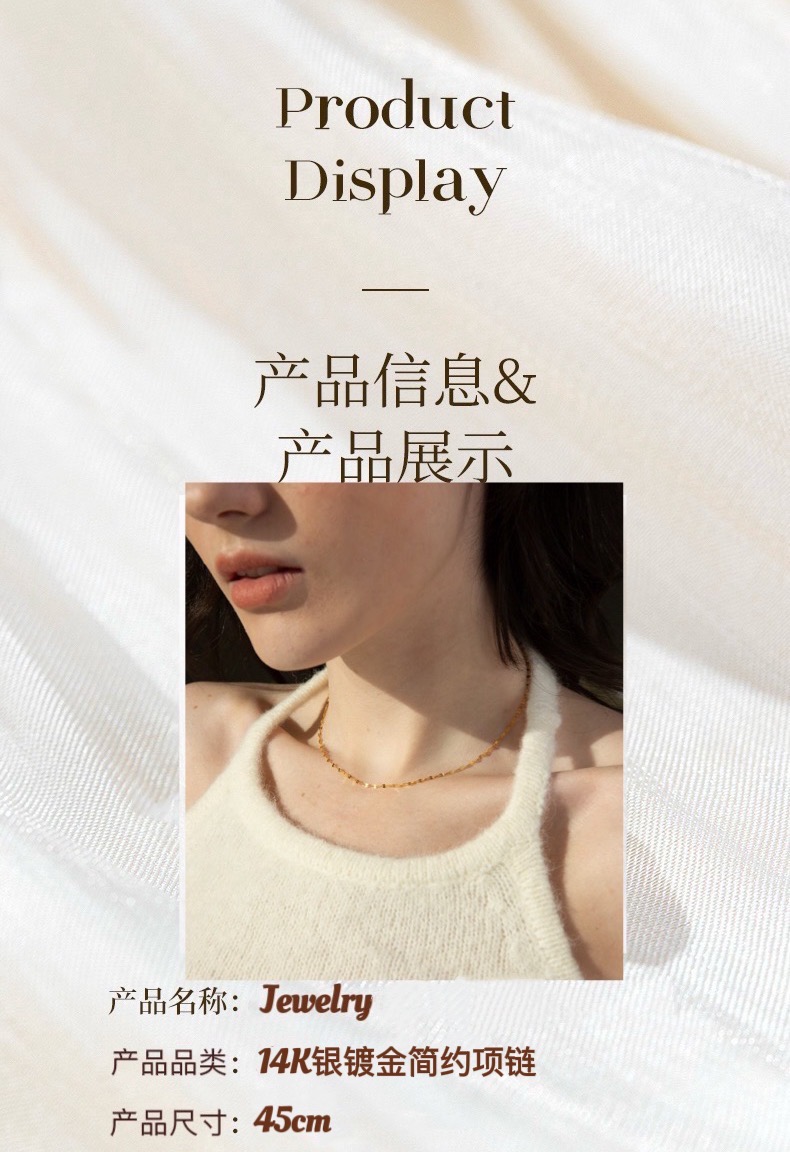 赠小金豆耳钉【JEWELLERY 14K银镀金项链】项链45cm 小金豆3mm 经典法式 高贵优雅 低调不张扬
