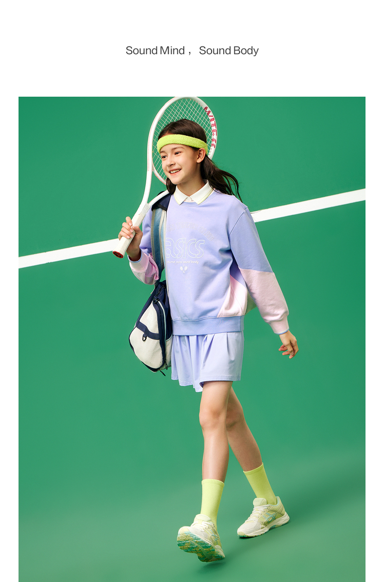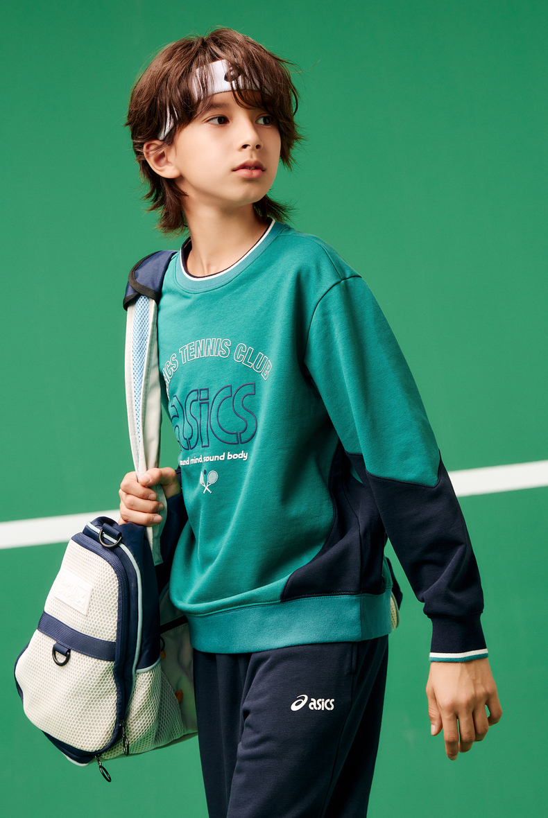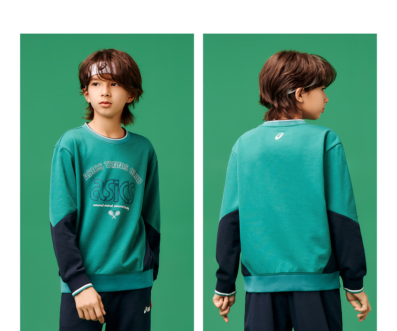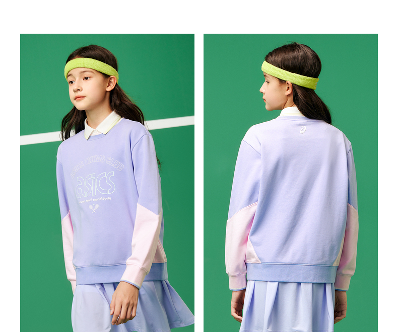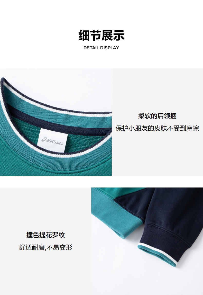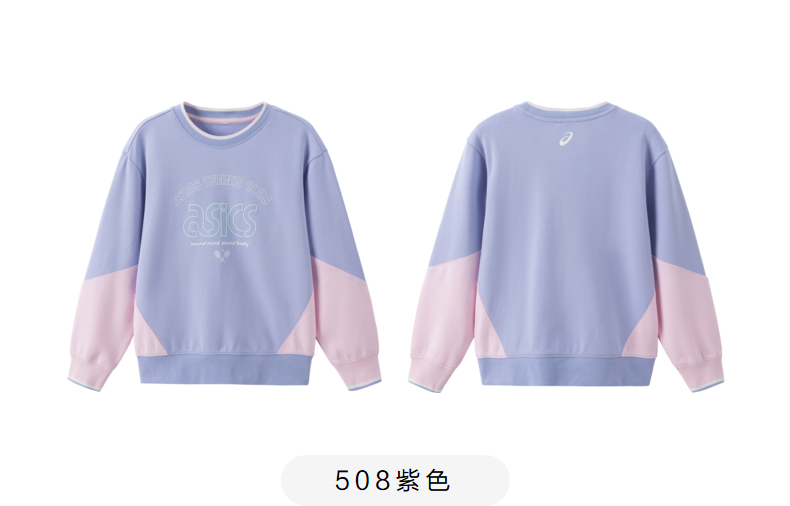 【商城同款】ASICS/亚瑟士童装秋季卫衣撞色拼接运动柔软T恤新品