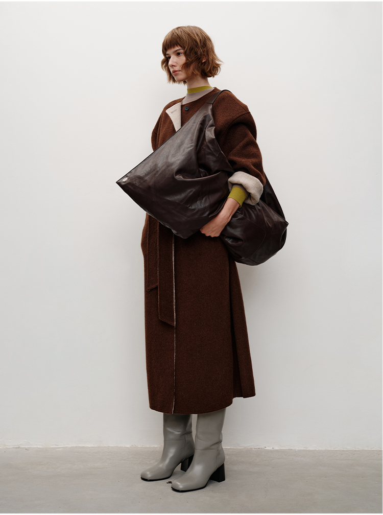 HIDEMI小羊皮抽绳设计感厚款大衣