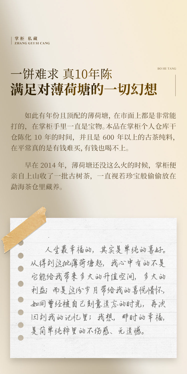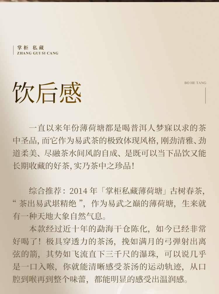 【掌柜私藏薄荷塘】2014年头春头采 十年勐海干仓薄荷塘纯料 有钱难买的稀缺货 云南易武普洱茶生茶357g/饼 拍5发6拍20发25