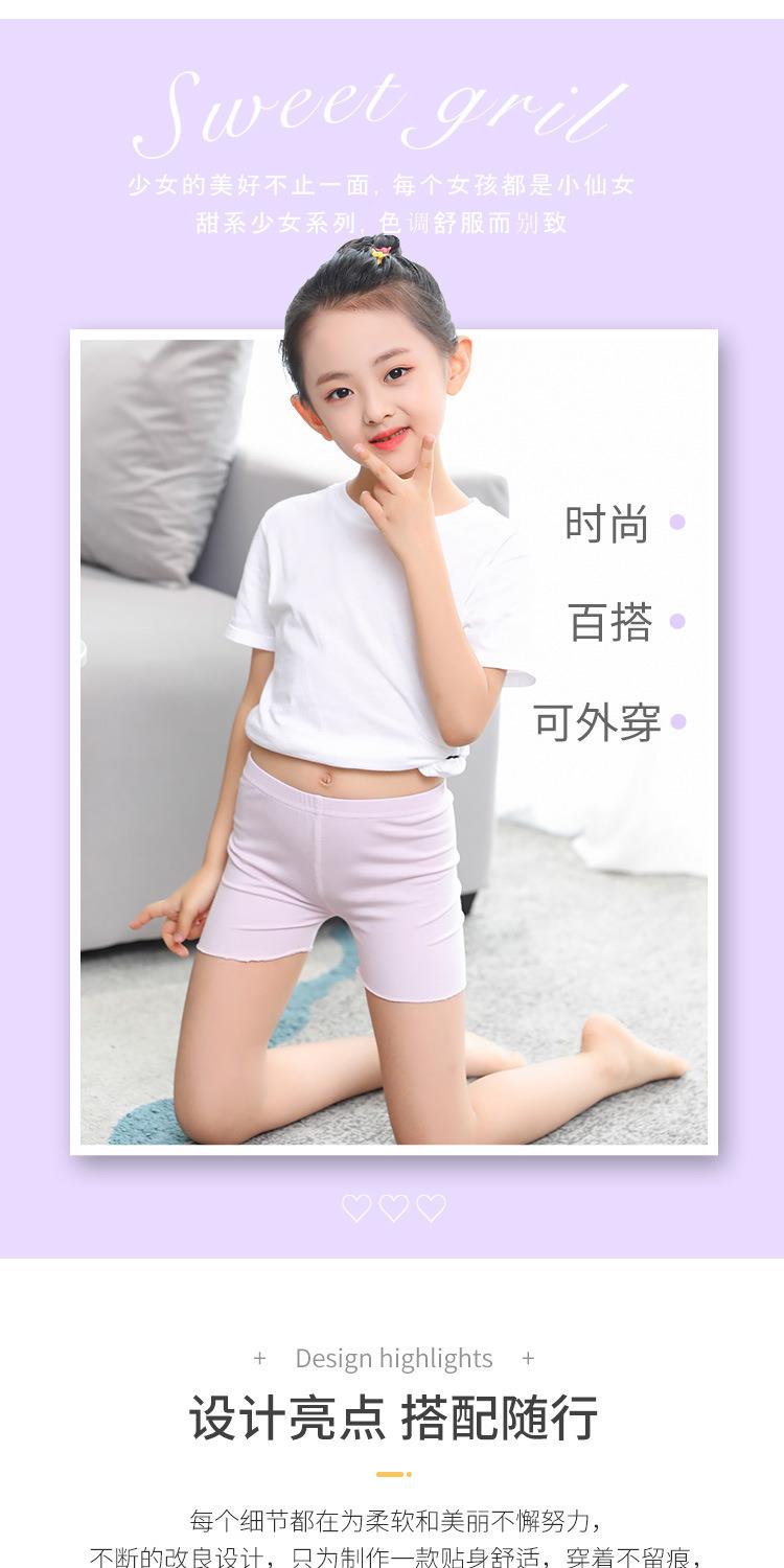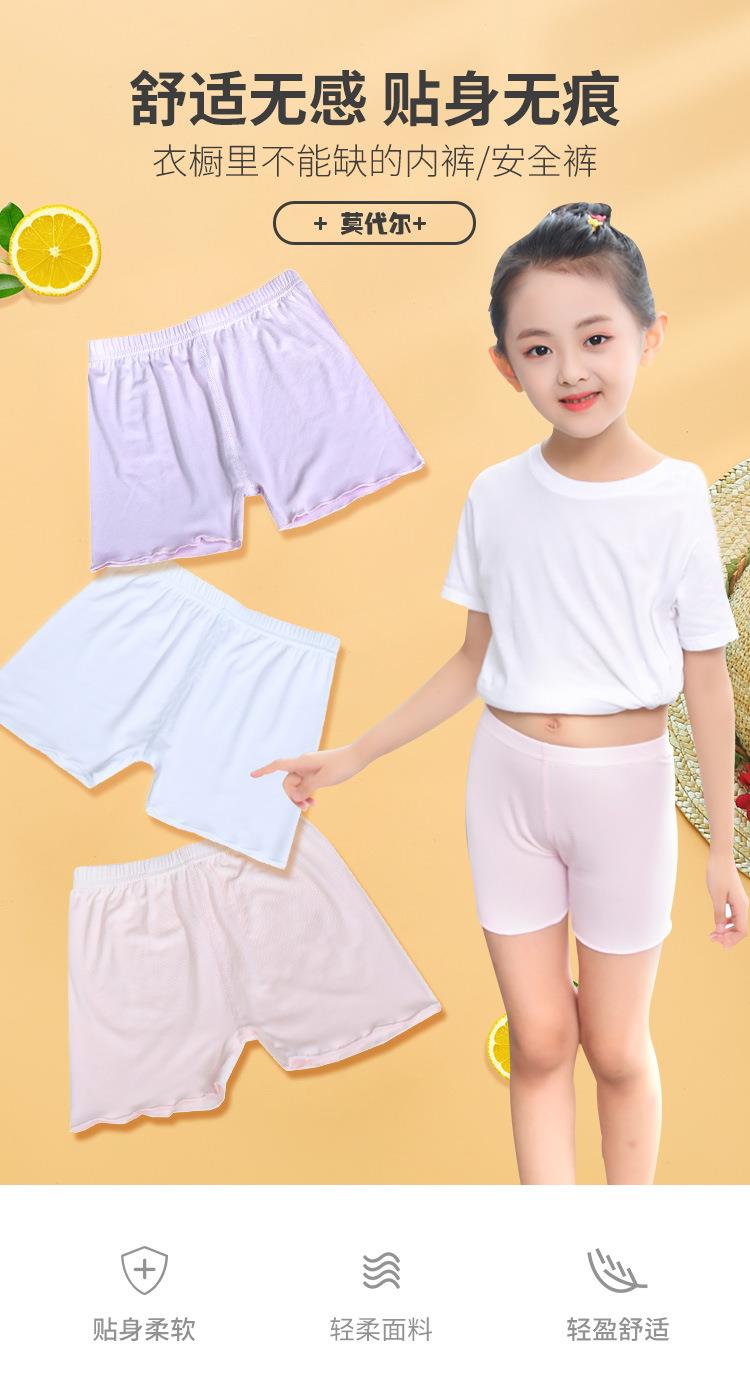 2023夏季女童莫代尔平角无痕纯色安全裤三分短裤夏卷边薄款打底裤