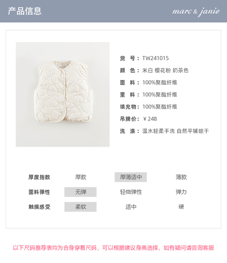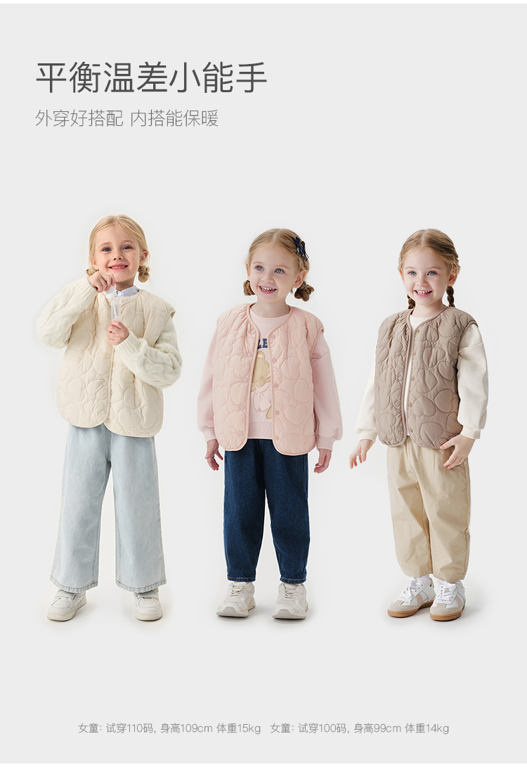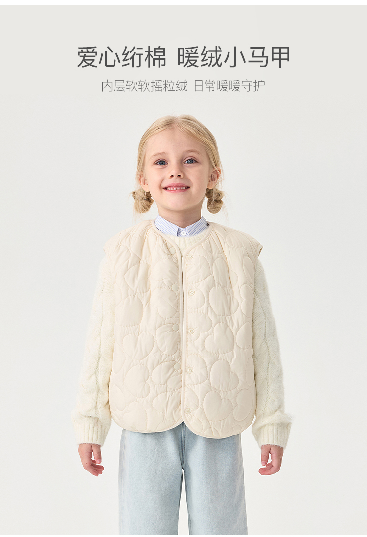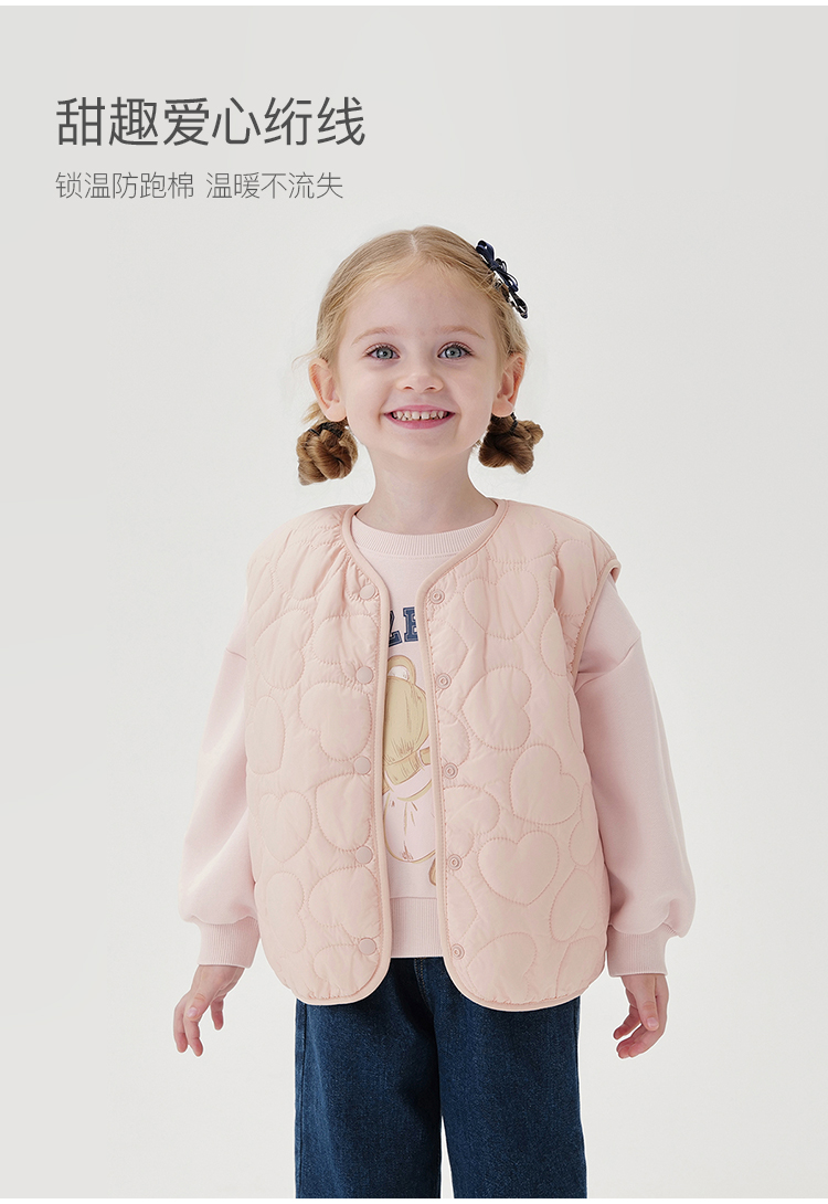 [校服神器]马克珍妮女童爱心绗棉加绒马甲宝宝背心秋冬新款551603