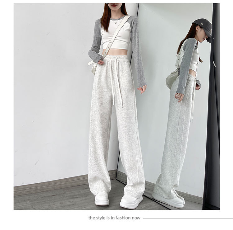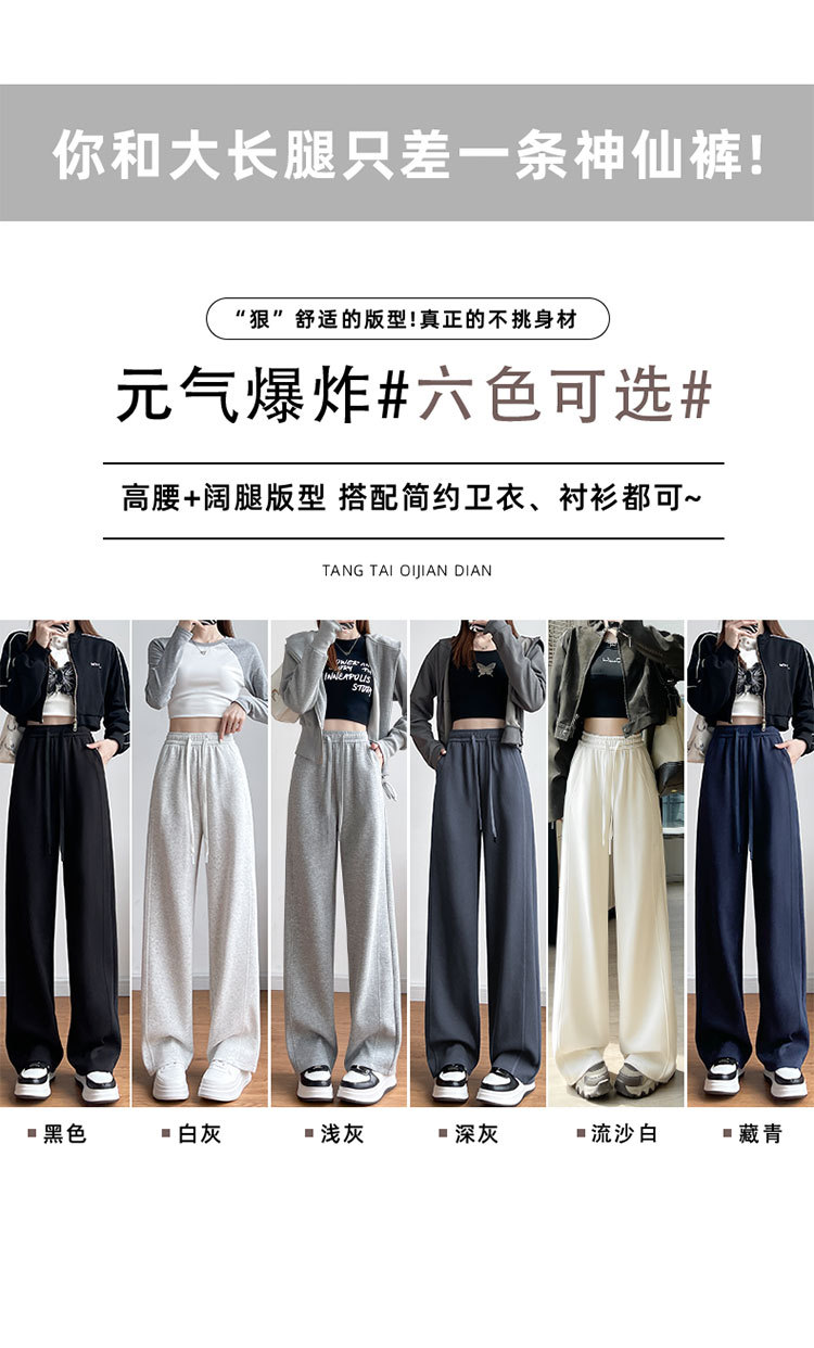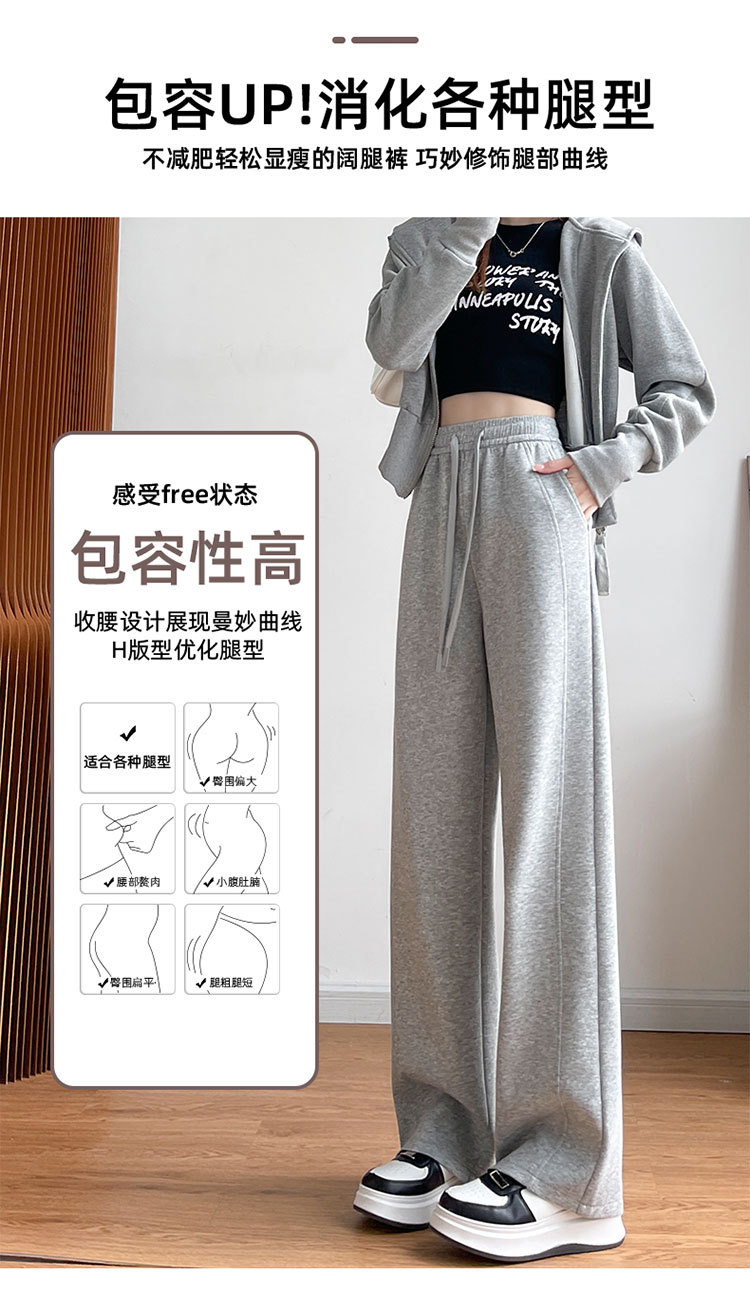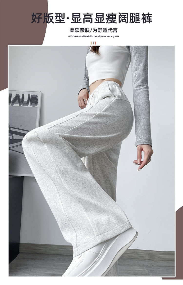 现货【YW】无忧购 加绒白色运动裤女直筒宽松卫裤休闲小个子窄版香蕉阔腿裤Z660(截单后7天发货)