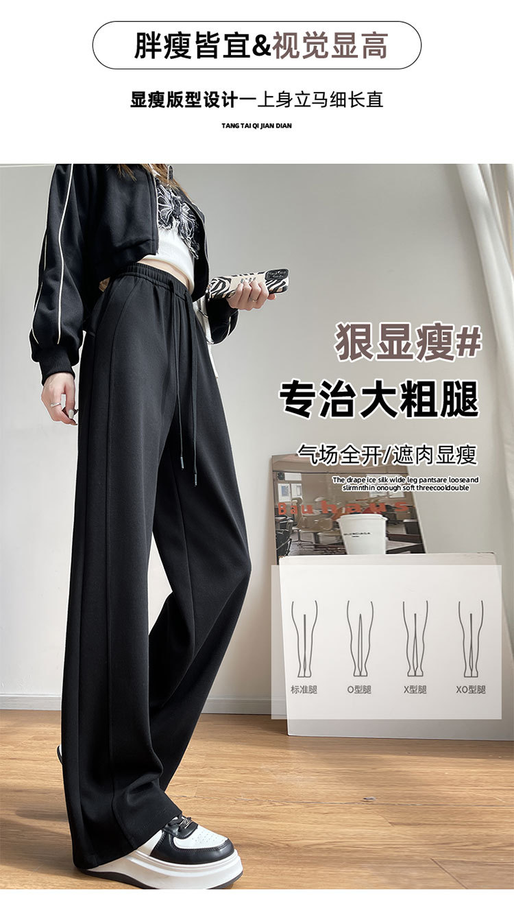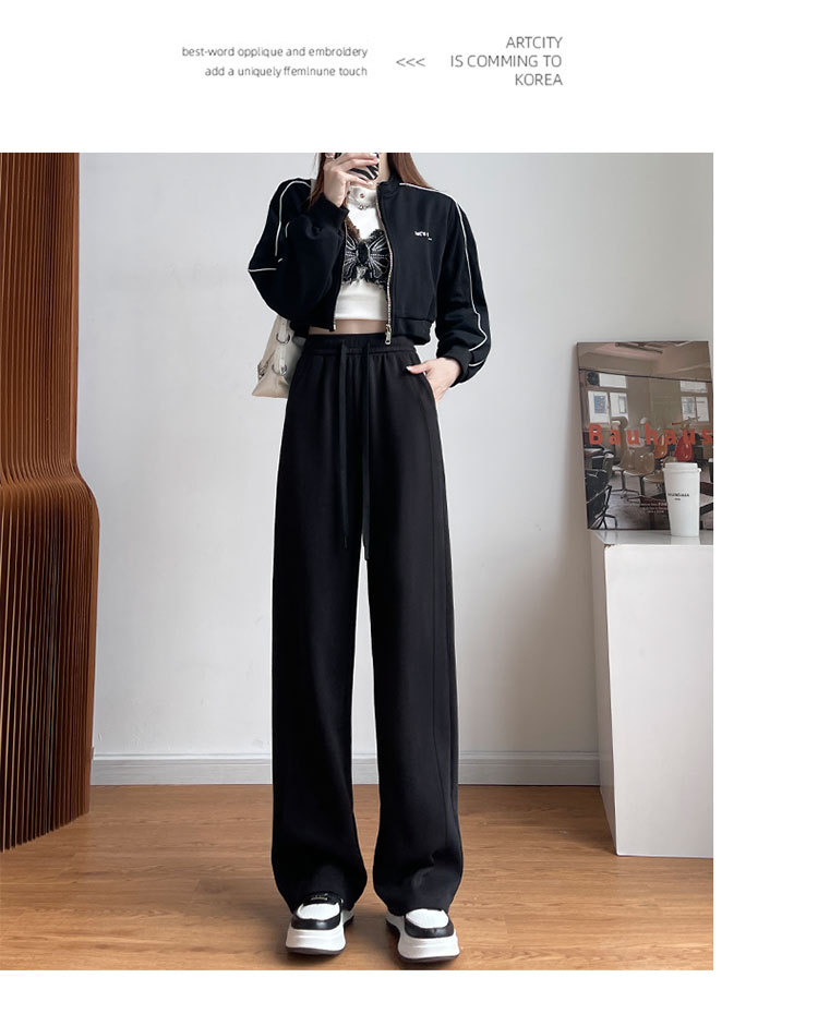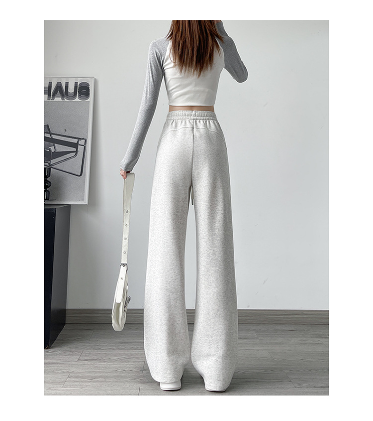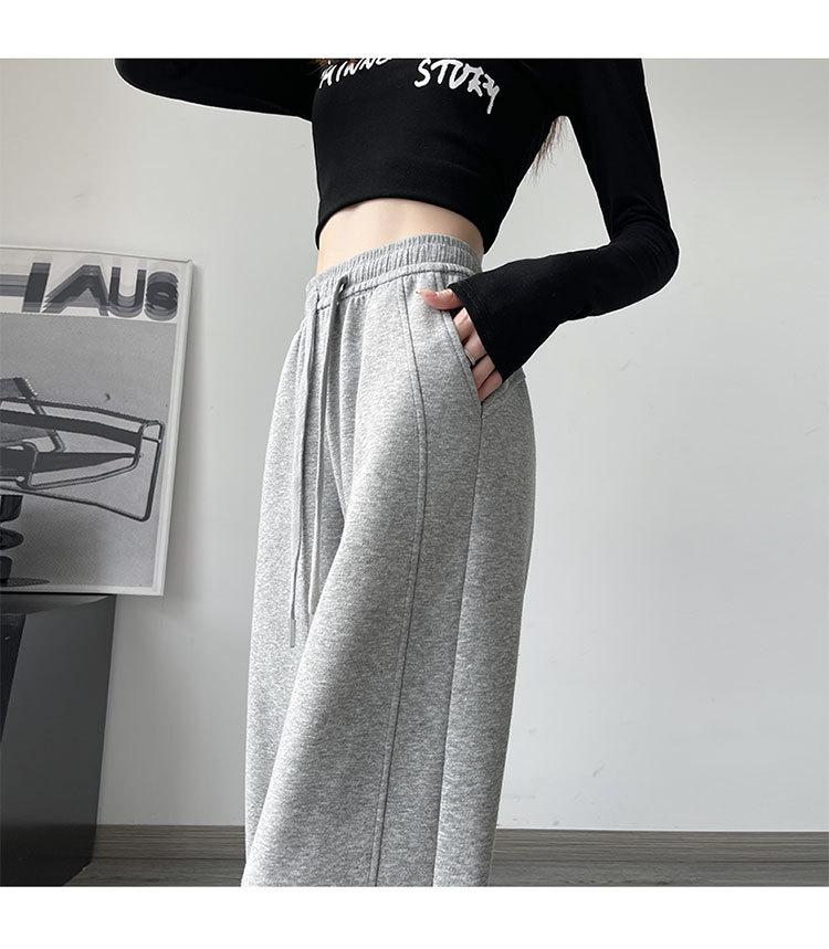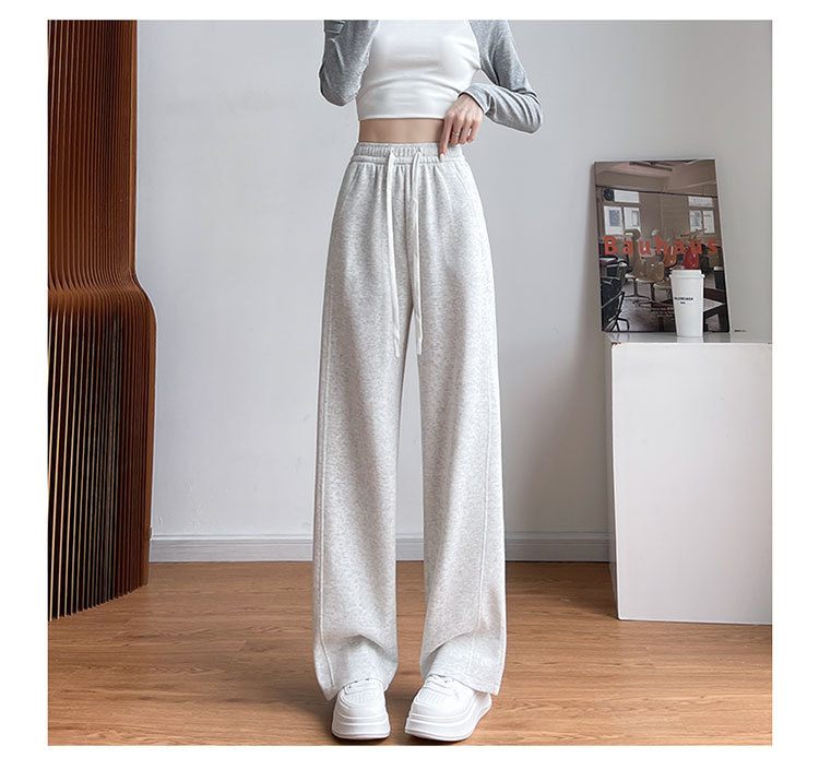 现货【YW】无忧购 加绒白色运动裤女直筒宽松卫裤休闲小个子窄版香蕉阔腿裤Z660(截单后7天发货)