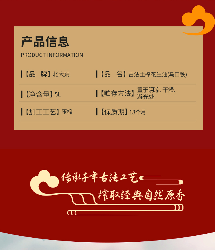 【中国农垦】北大荒古法压榨花生油(马口铁)5L