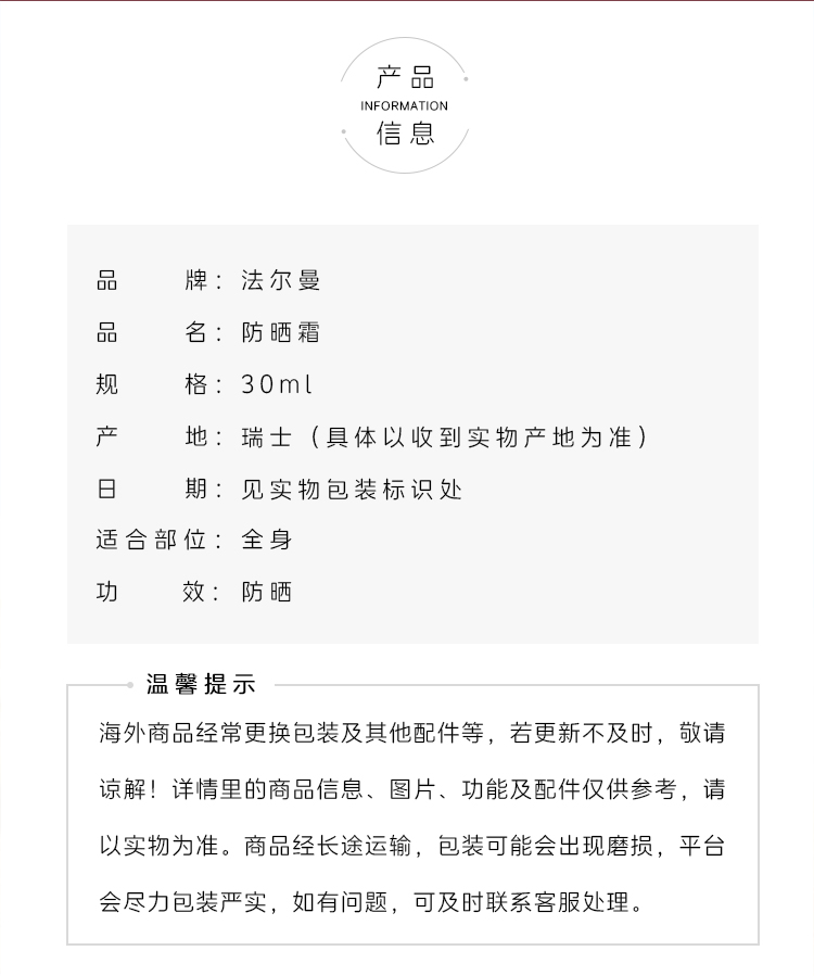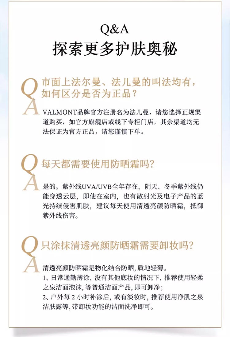 法尔曼 VALMONT 轻透面部防晒霜30g 防修二合一 SPF50+ 30g(CDF)