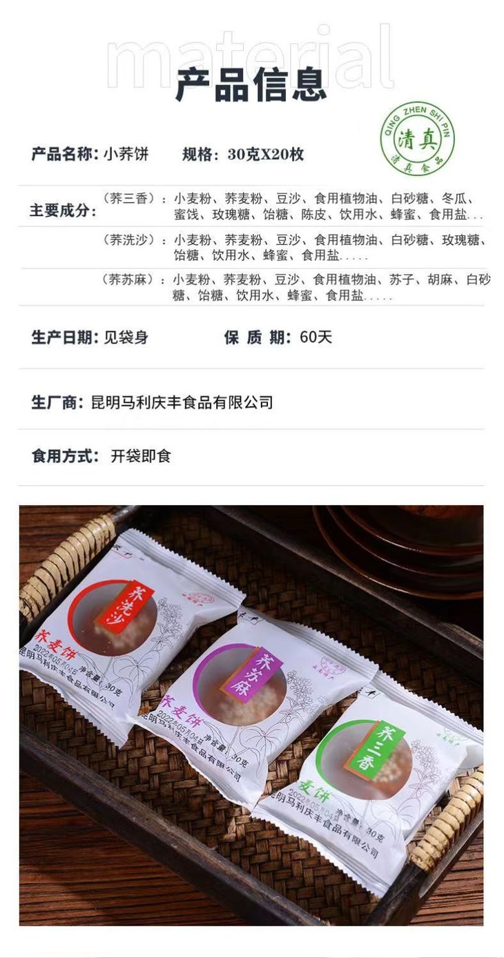 云南马利庆丰荞麦饼30g×10个
