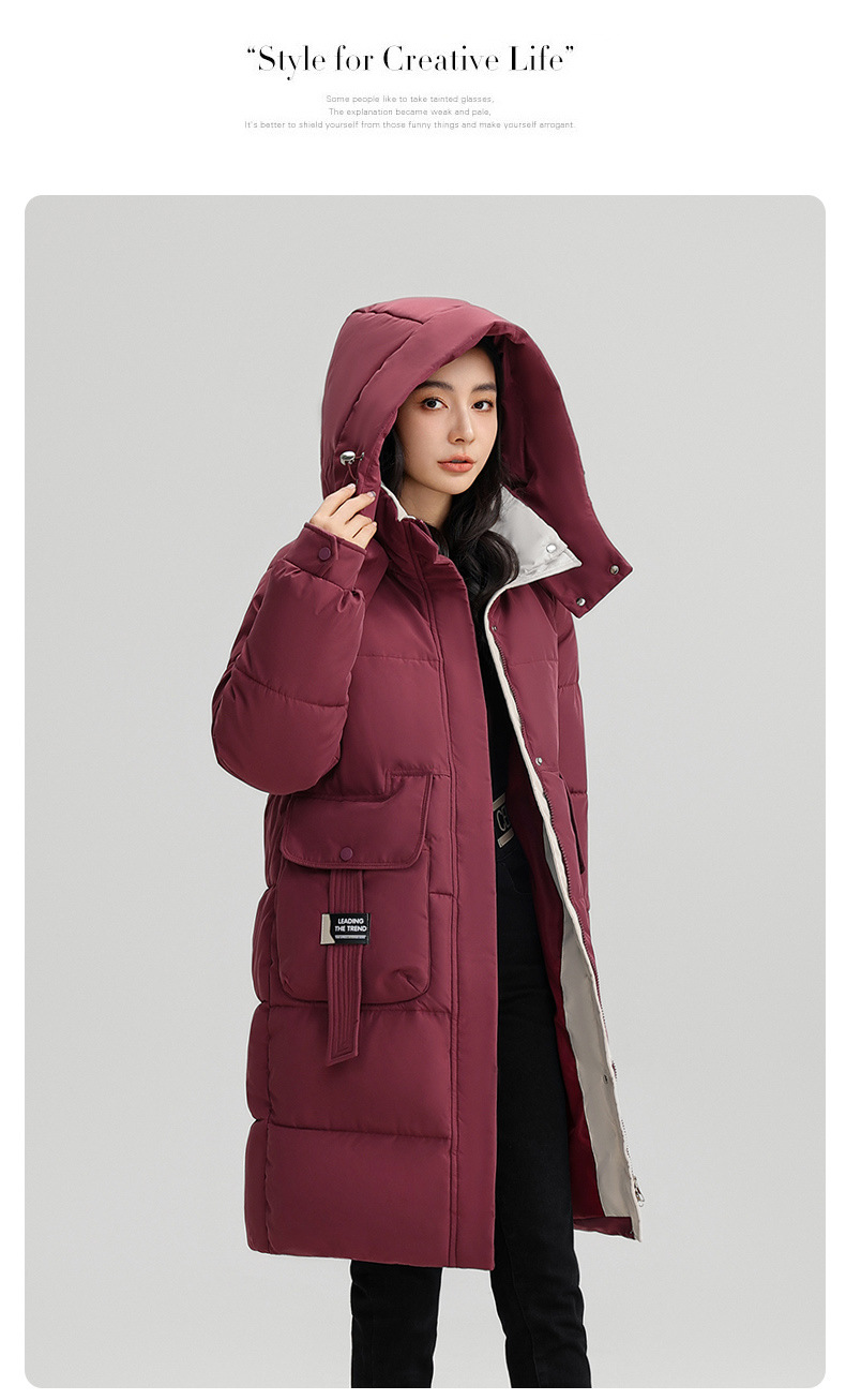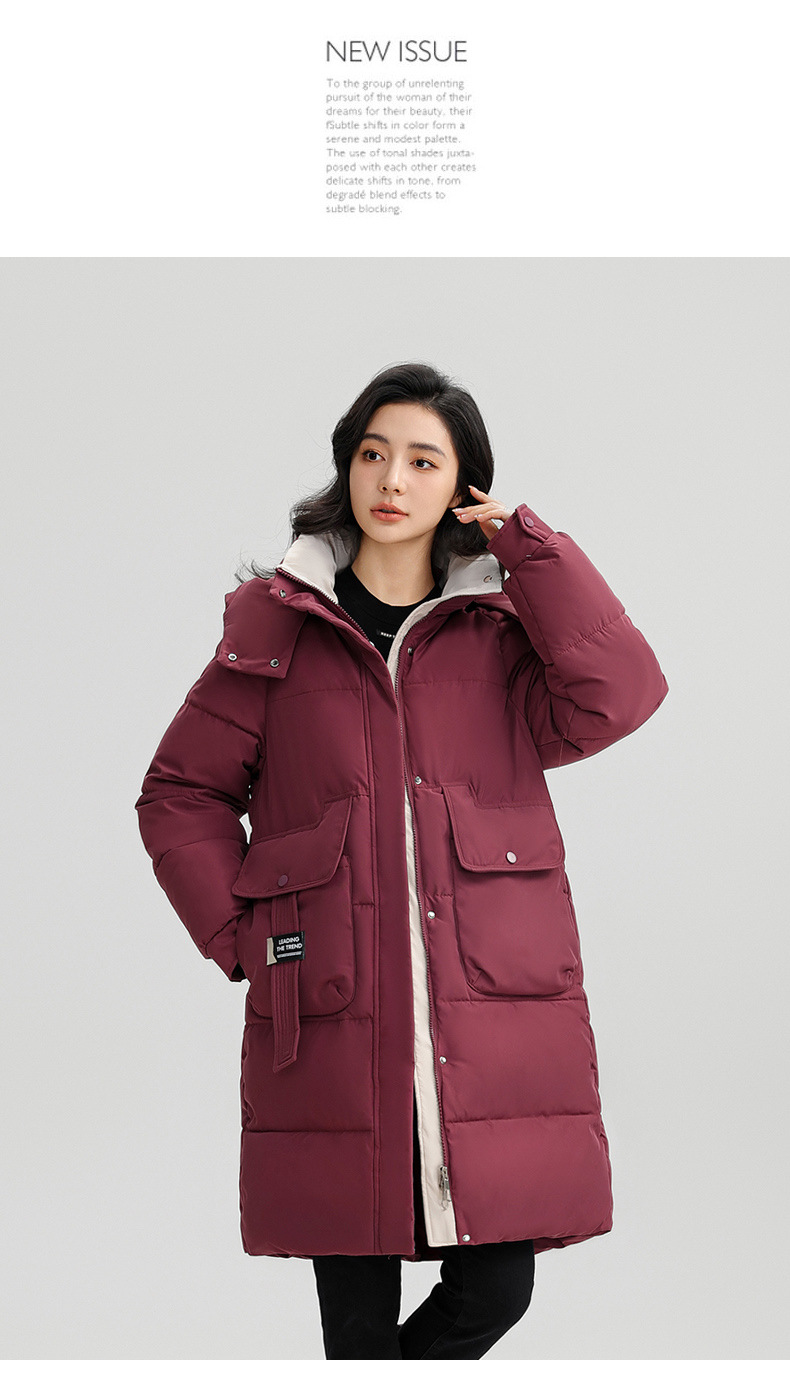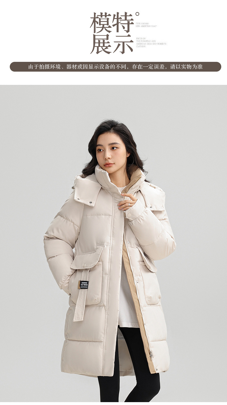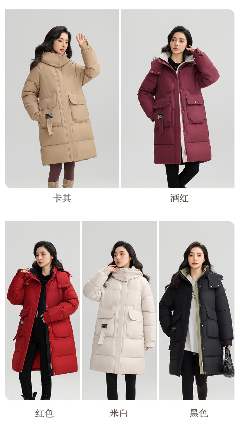 棉服女2024冬季新款韩版连帽女 中长款撞色宽松加厚棉袄外套棉衣