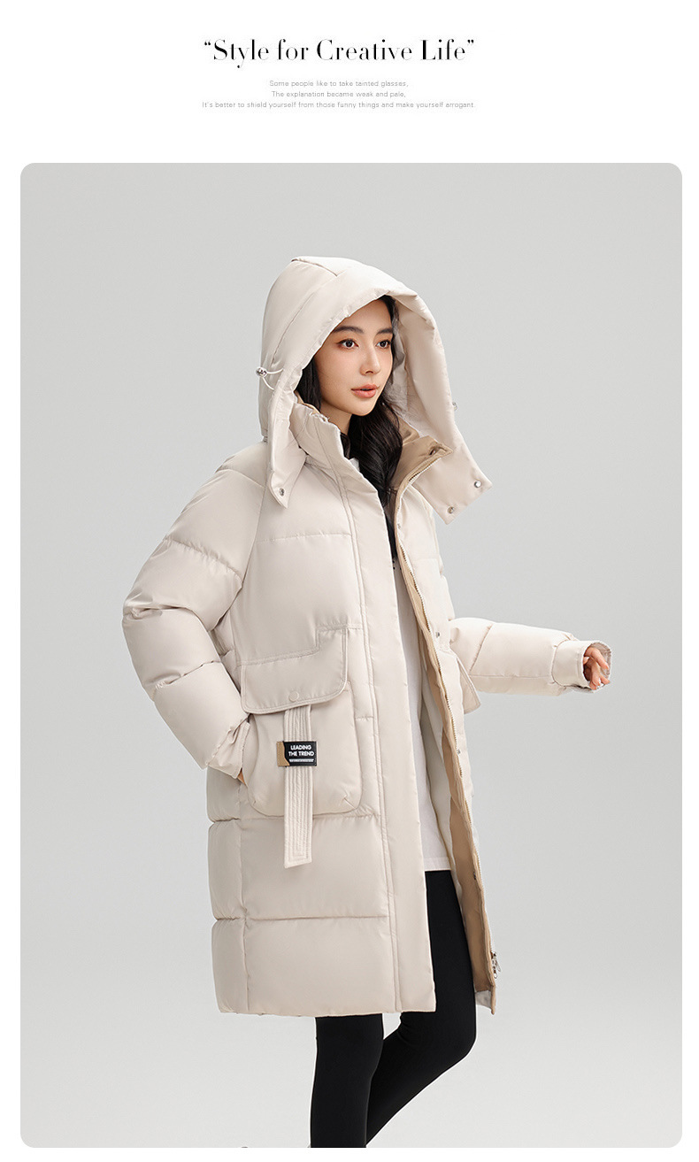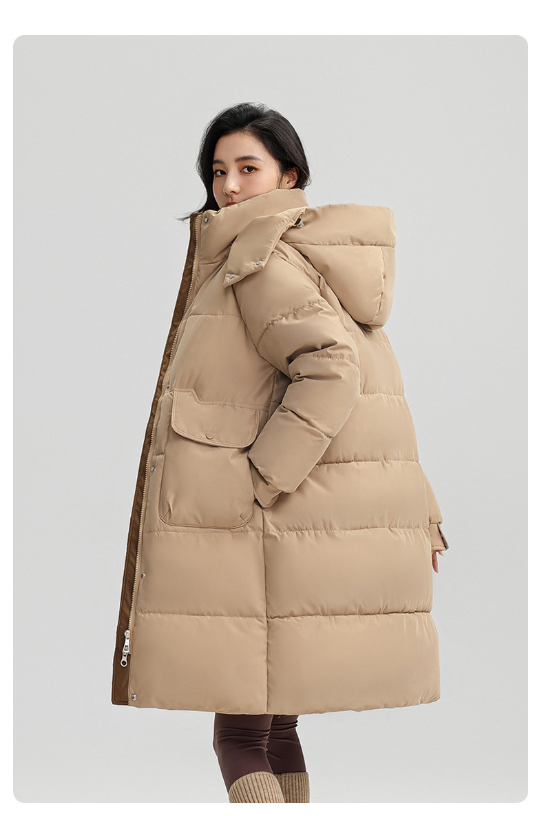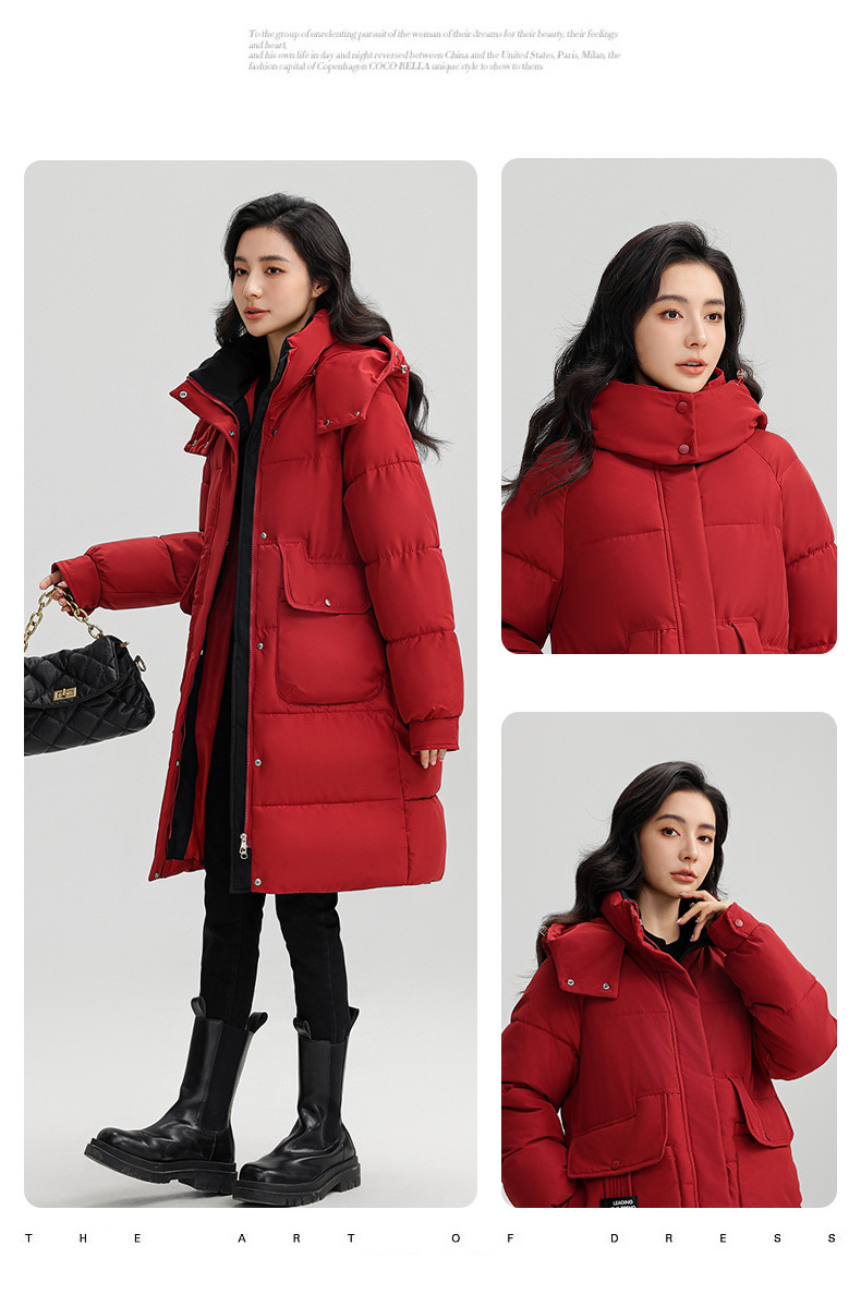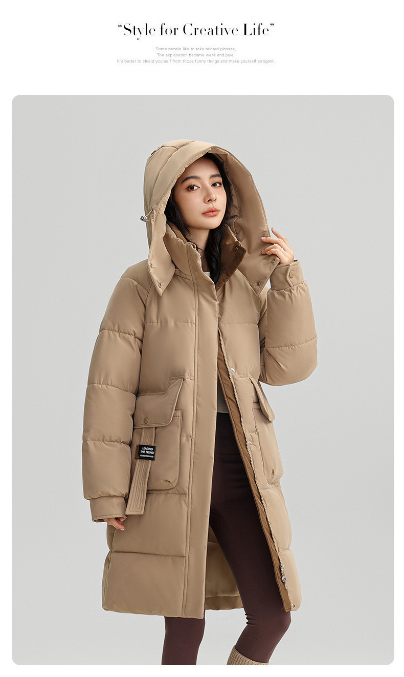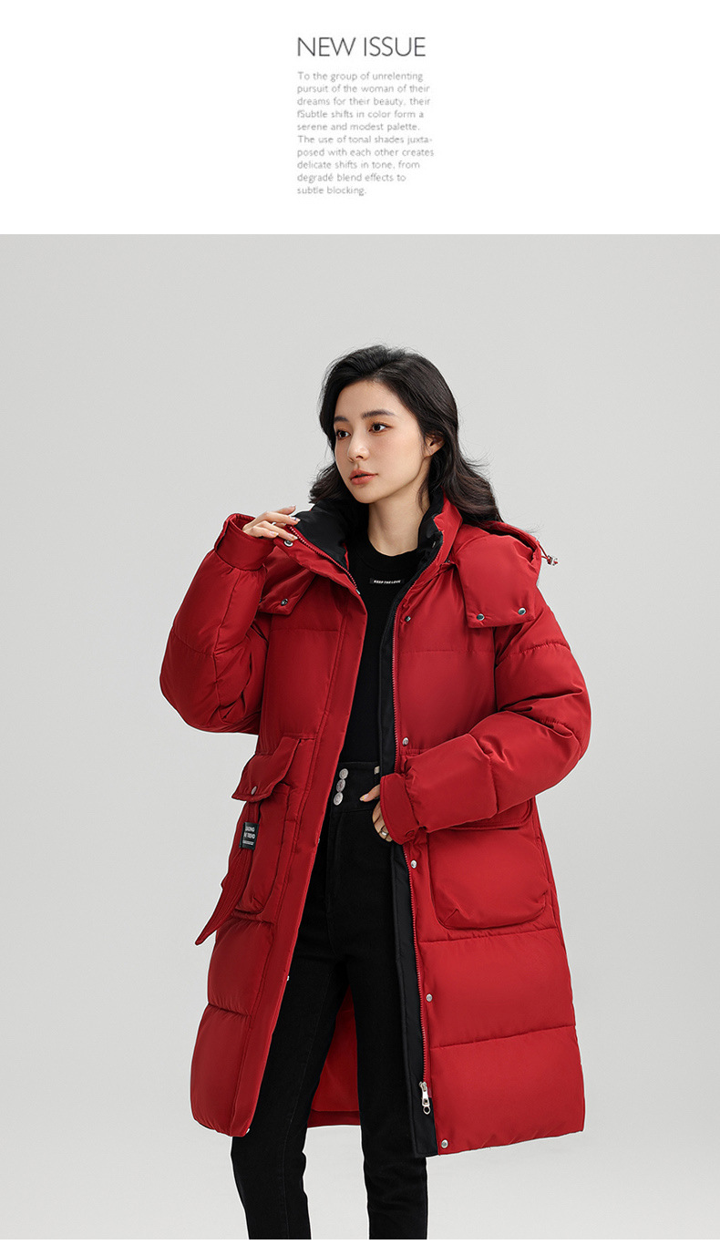 棉服女2024冬季新款韩版连帽女 中长款撞色宽松加厚棉袄外套棉衣