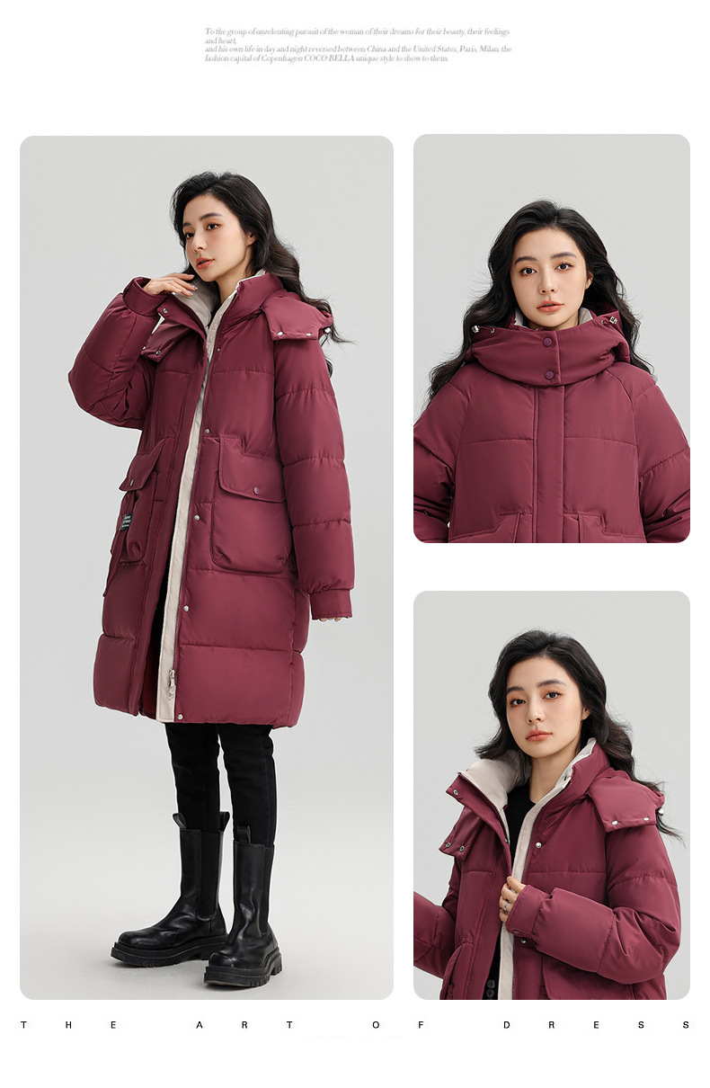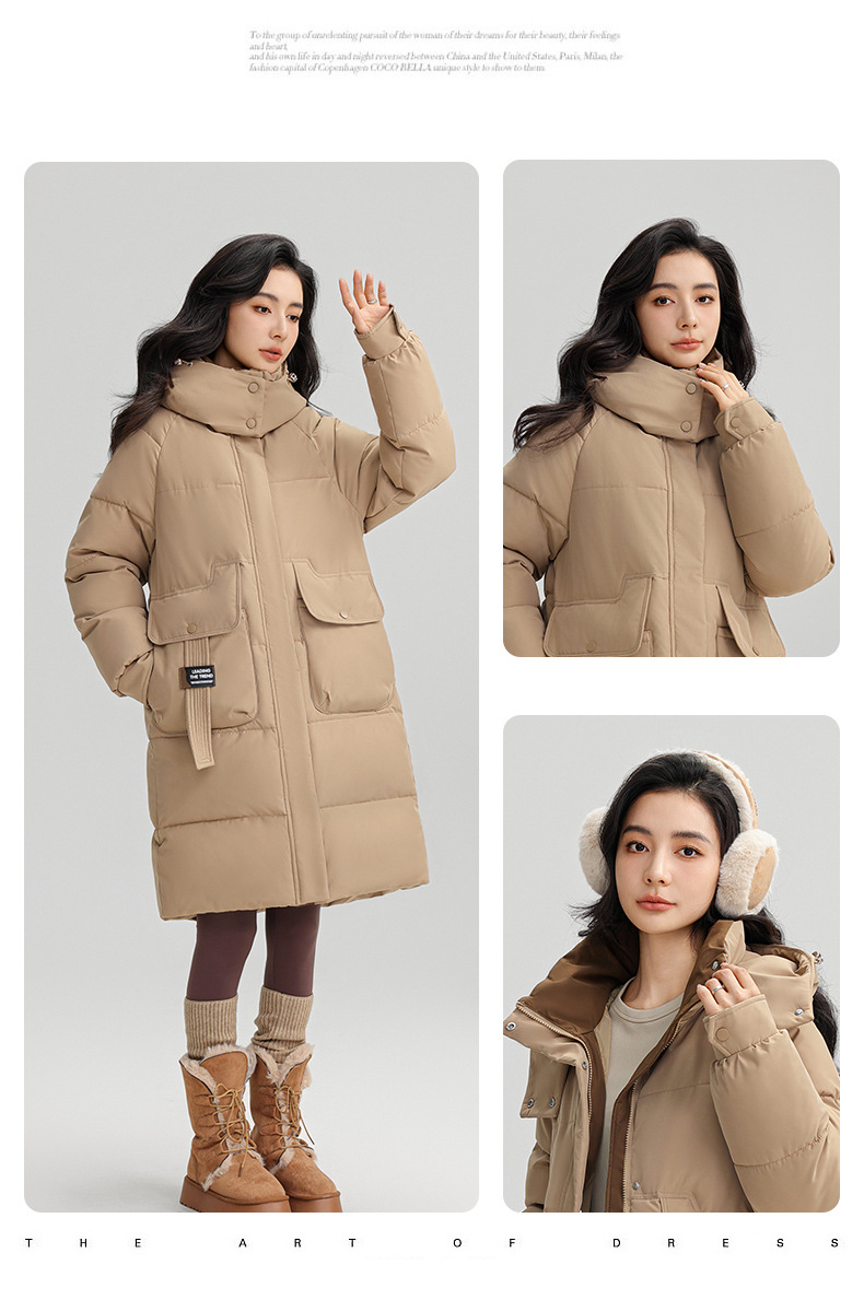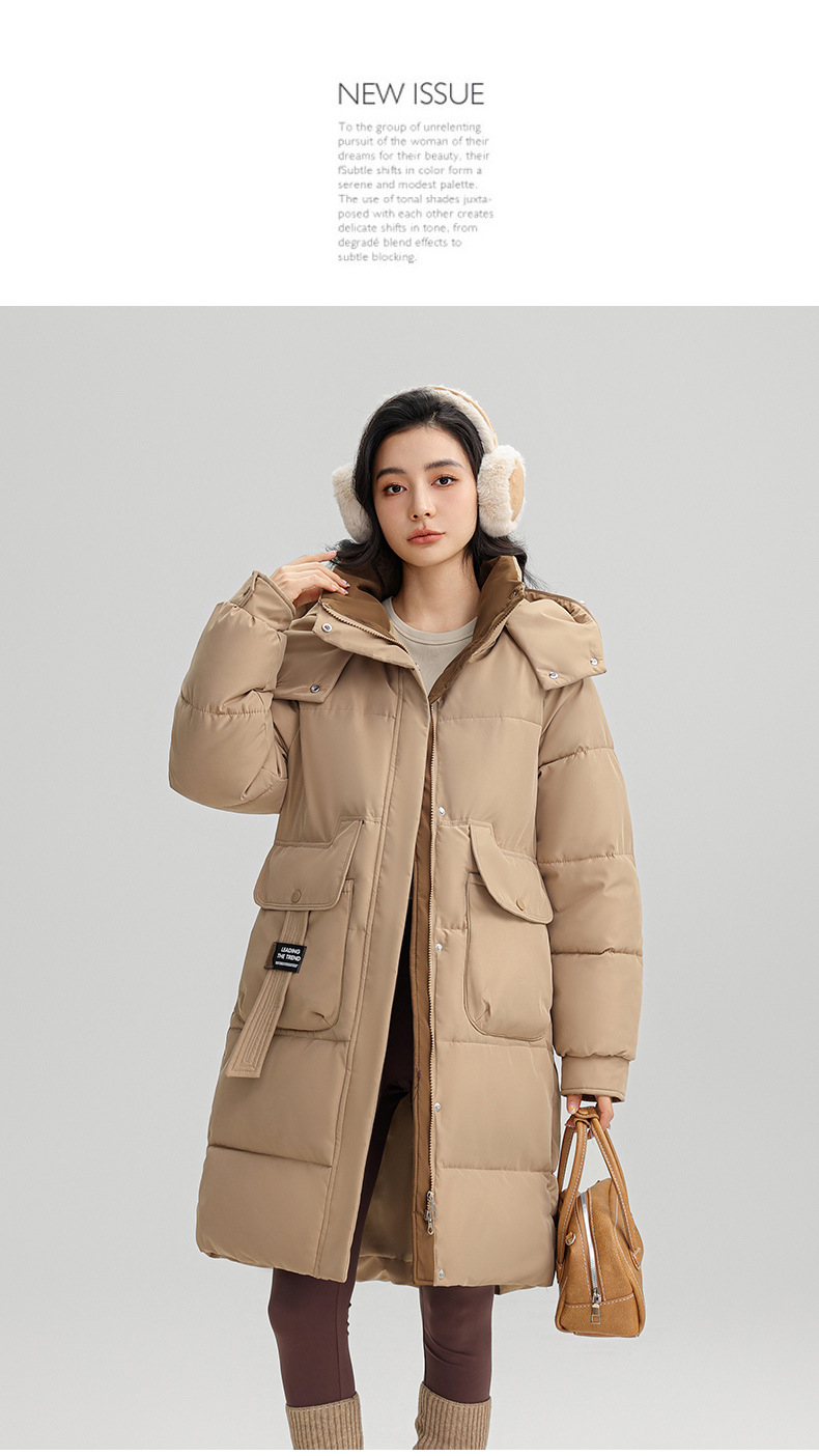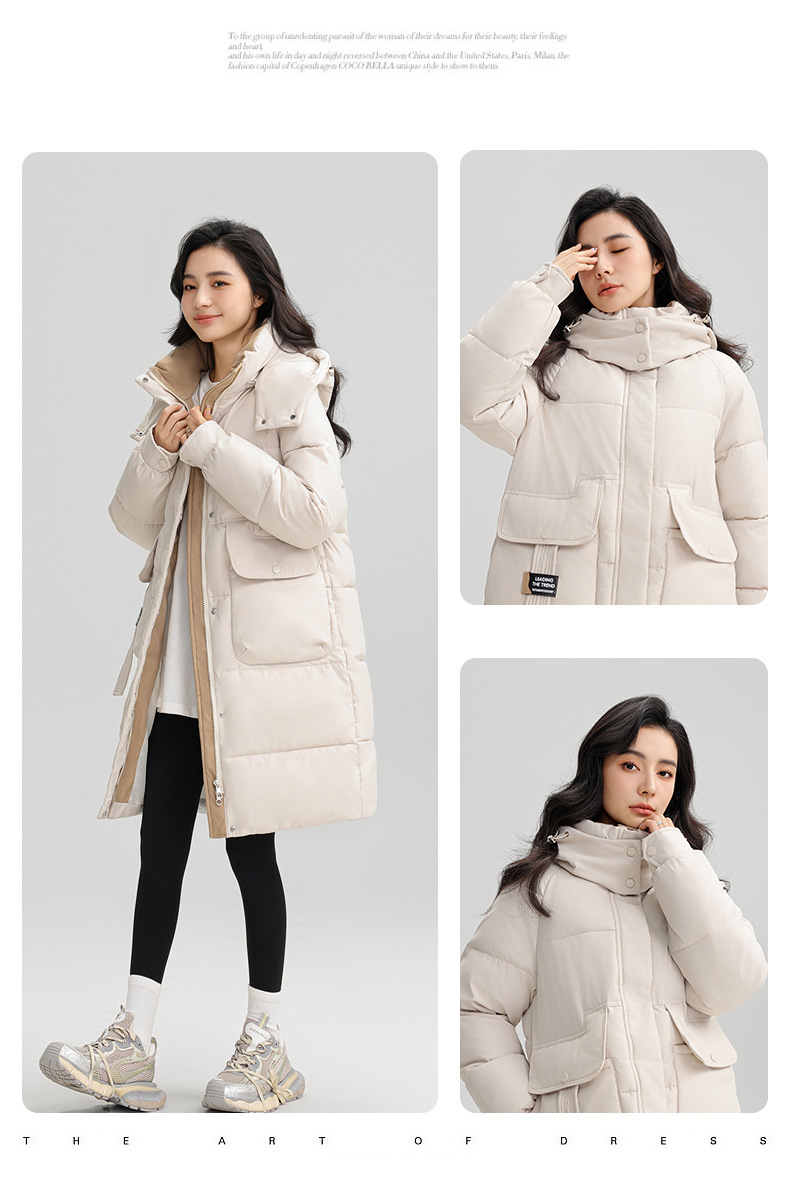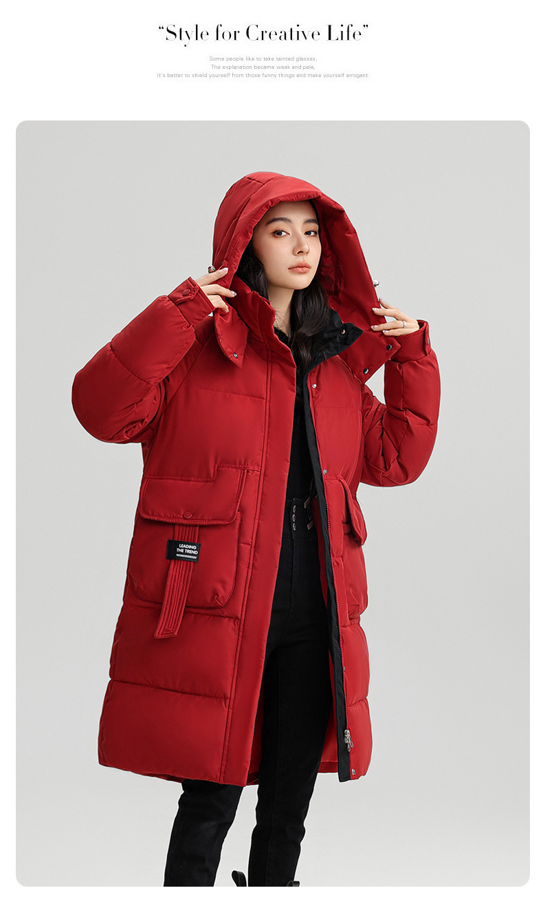 棉服女2024冬季新款韩版连帽女 中长款撞色宽松加厚棉袄外套棉衣