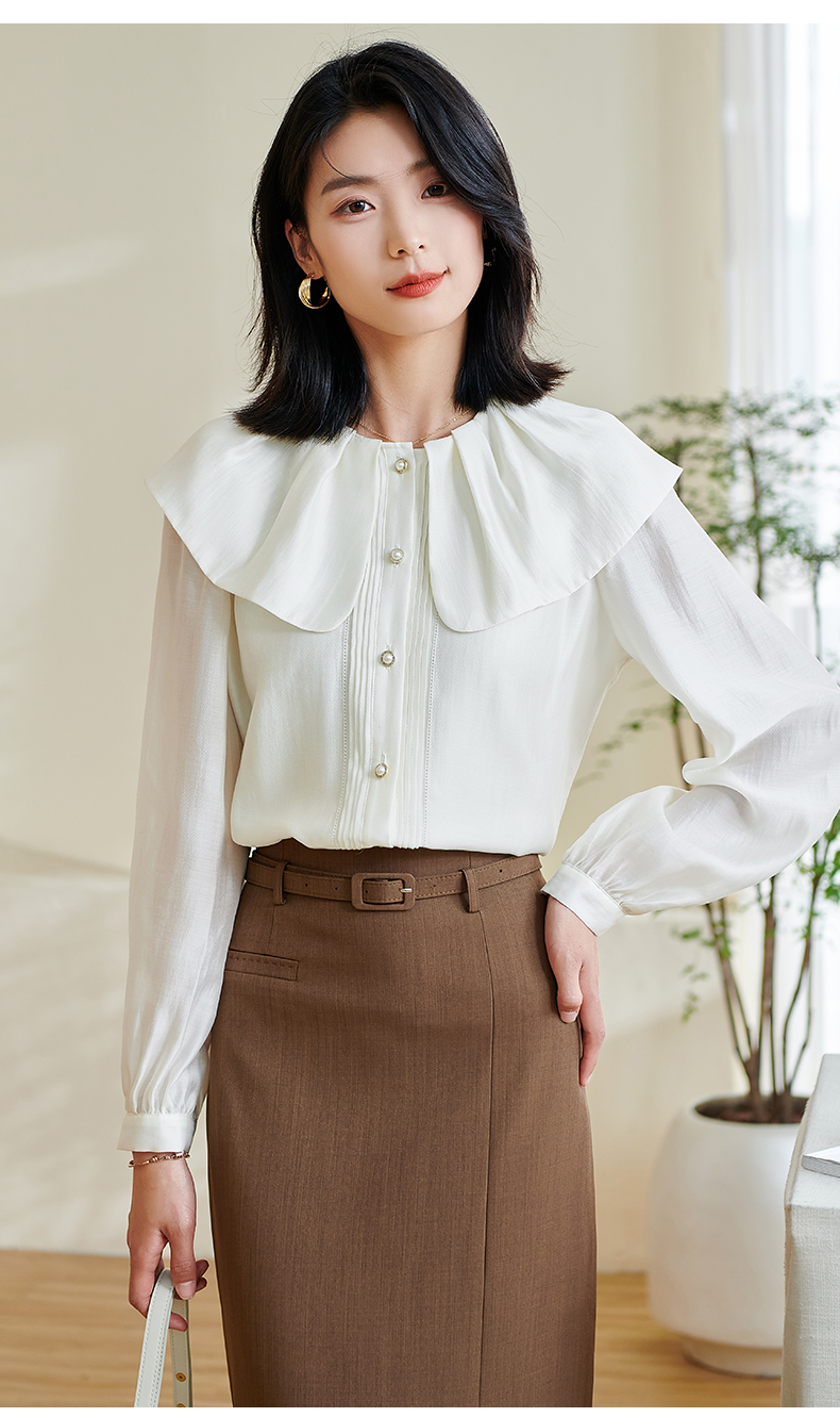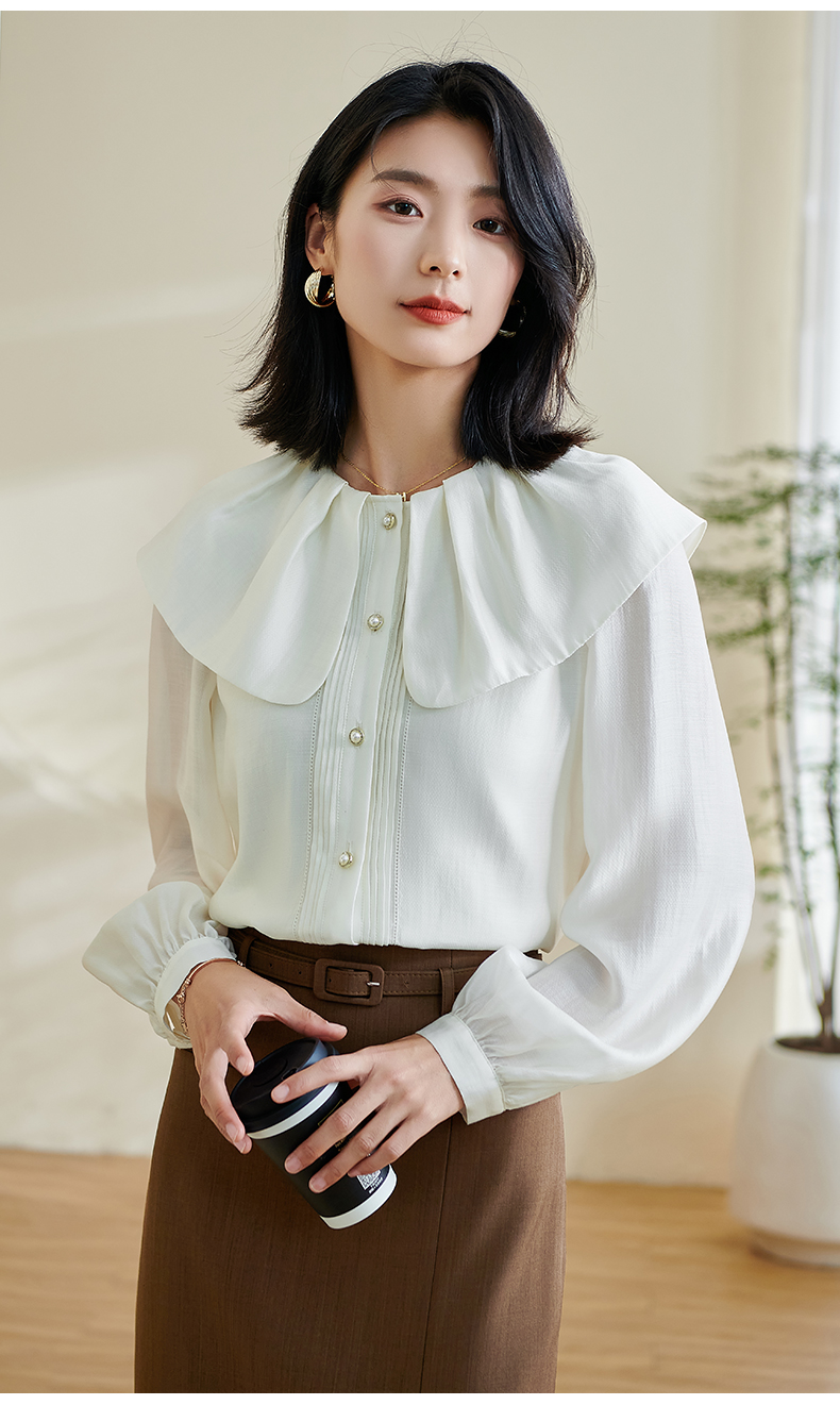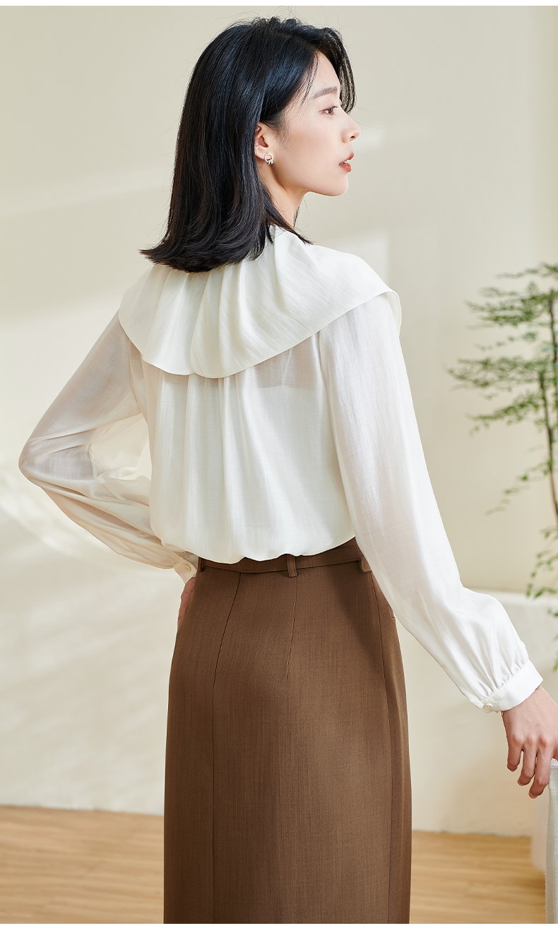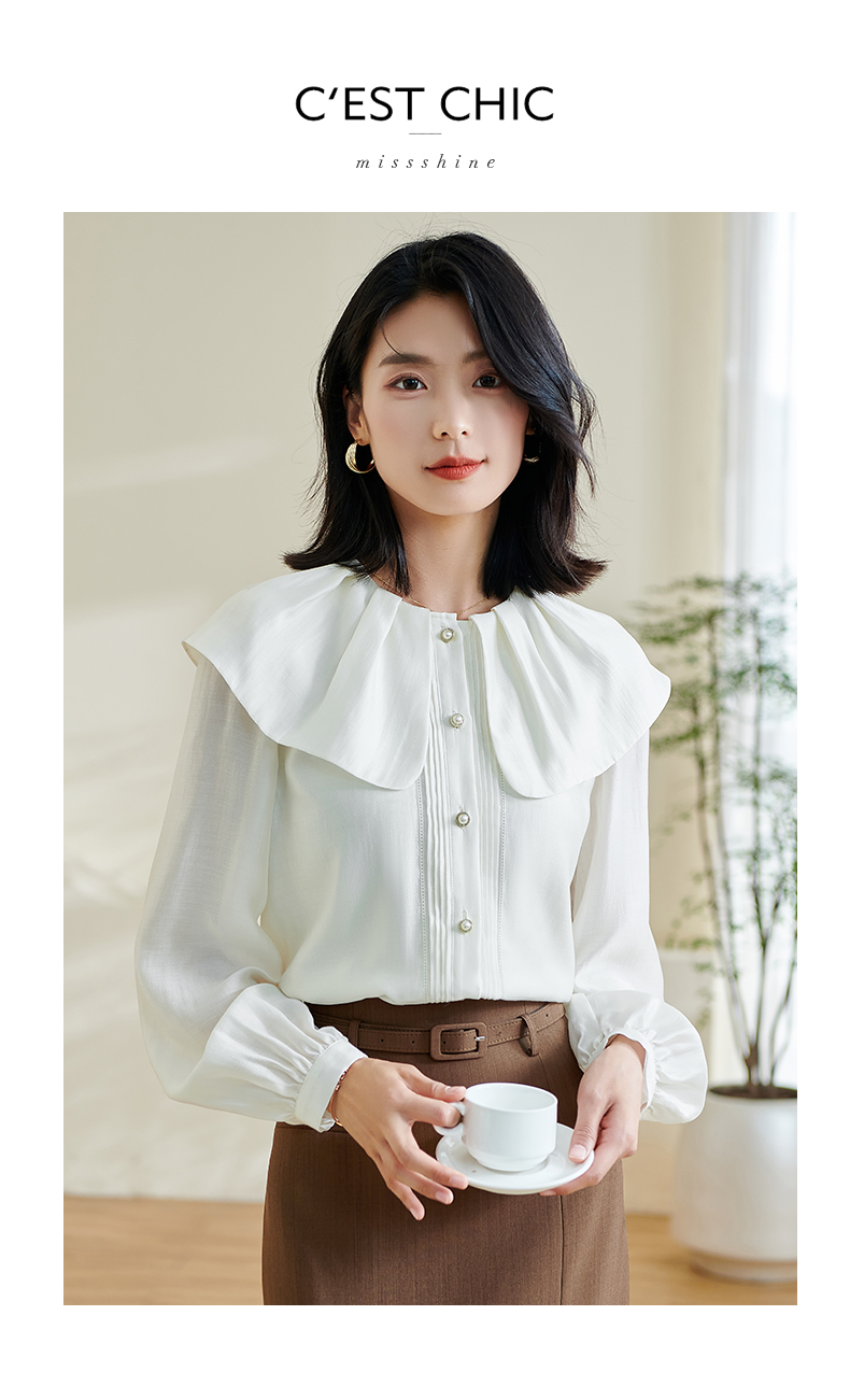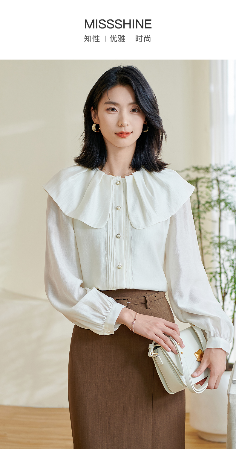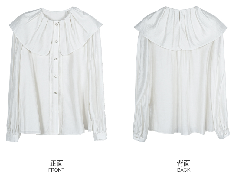 米思阳2026春季新款别致设计感白色衬衫荷叶领天丝宽松上衣女0305