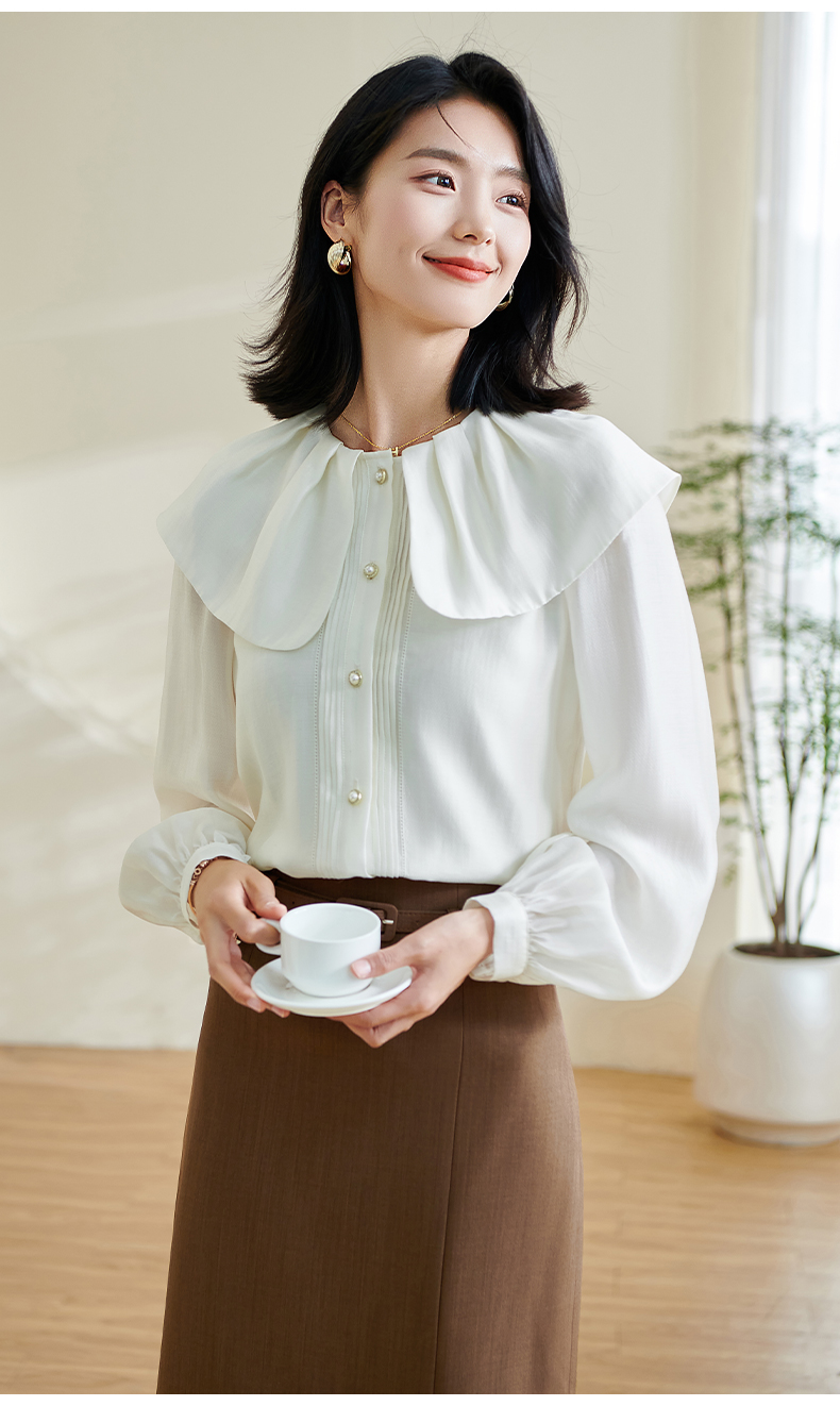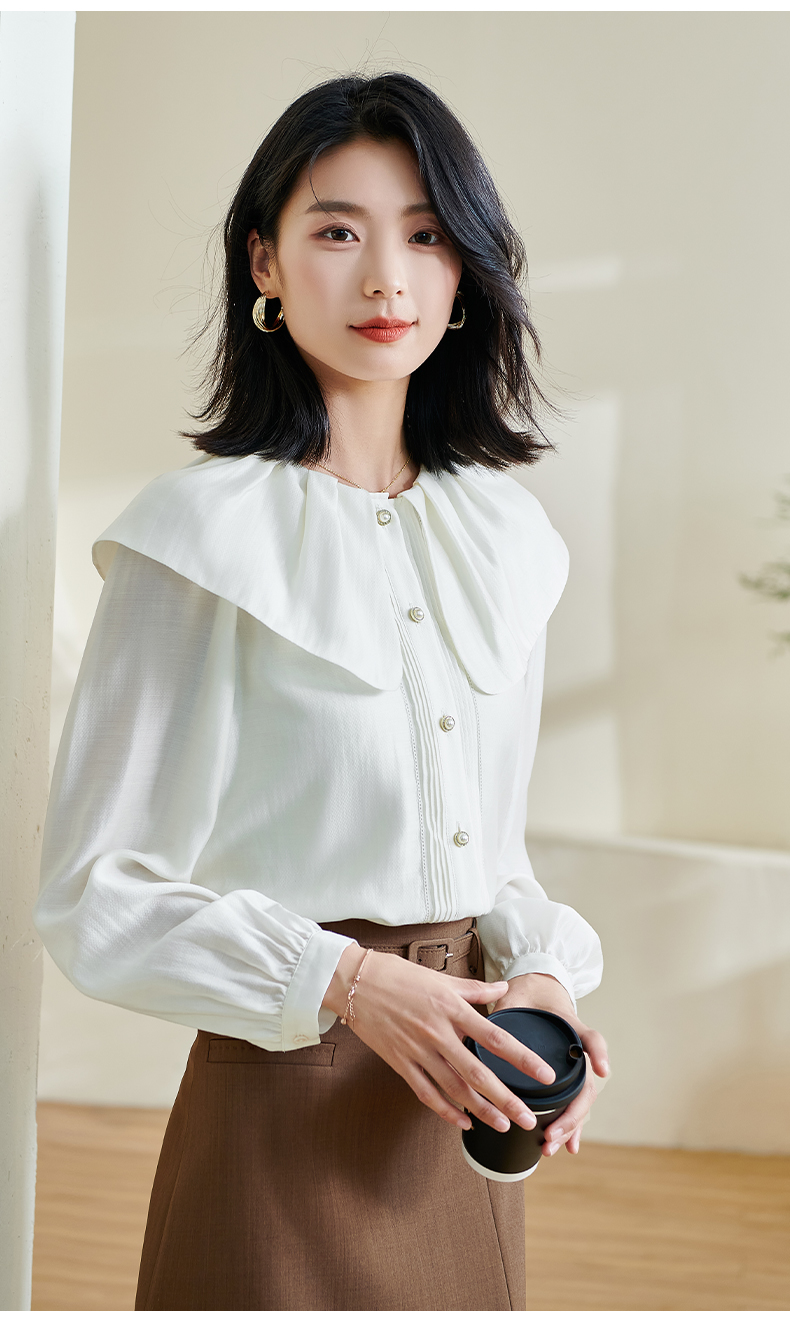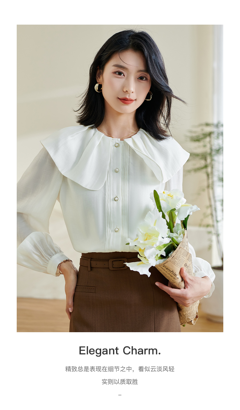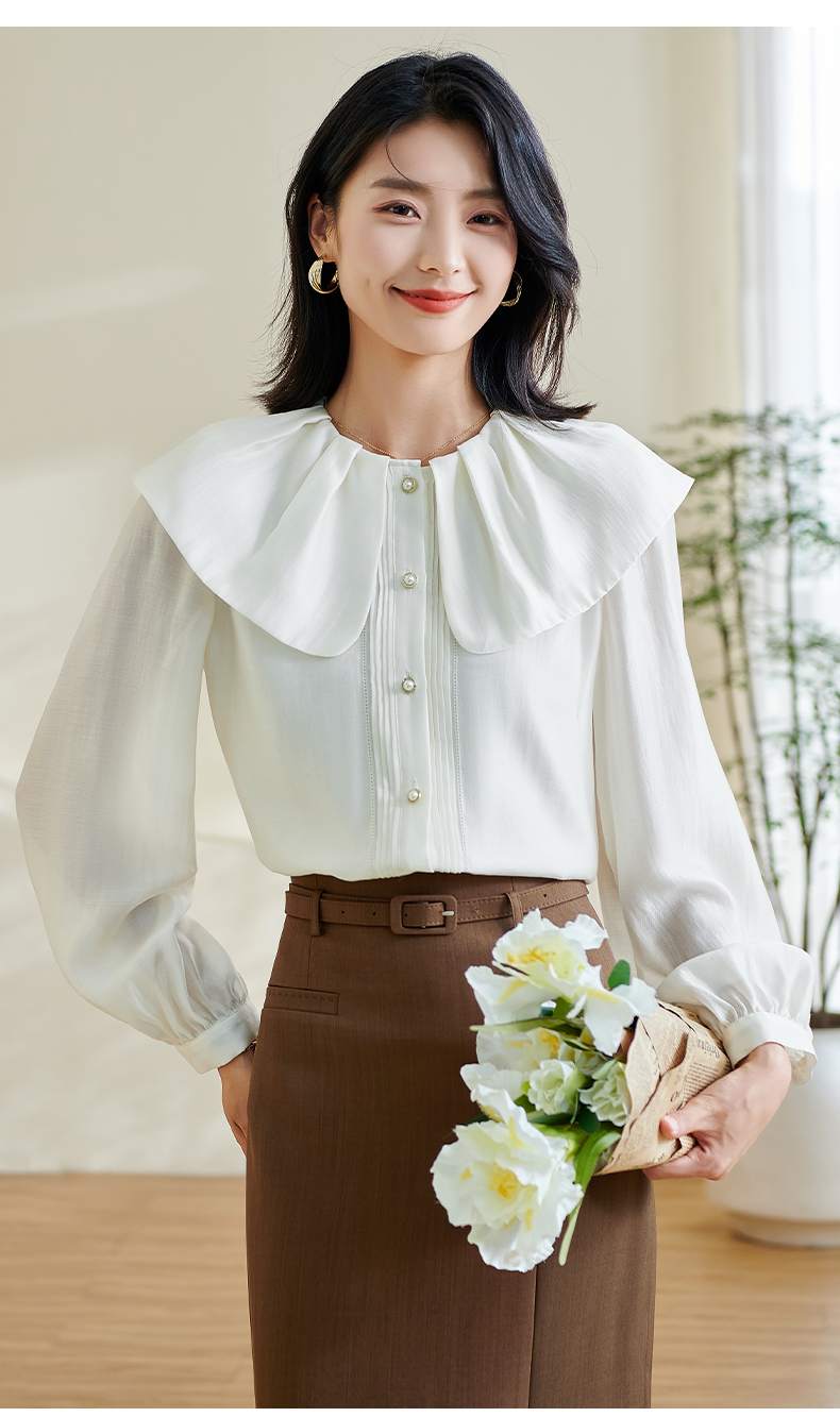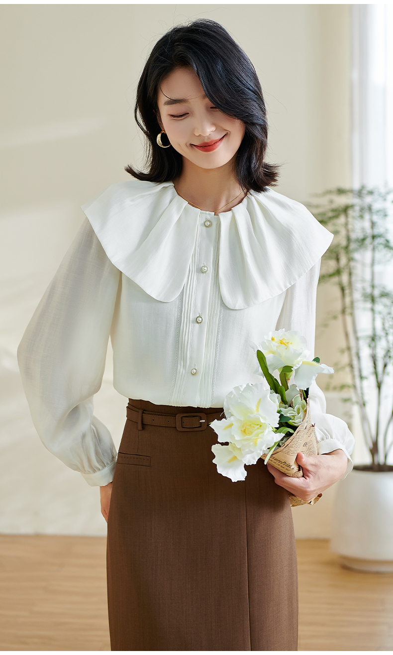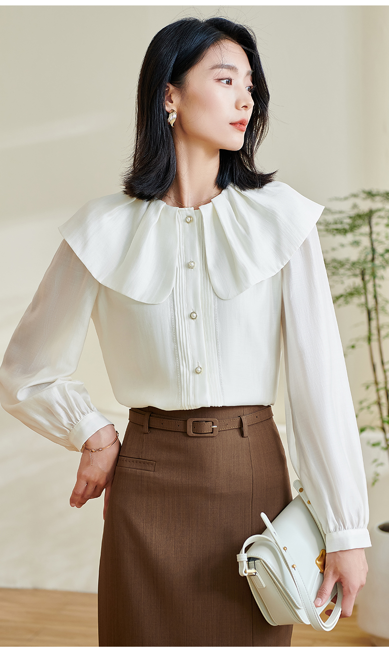 米思阳2026春季新款别致设计感白色衬衫荷叶领天丝宽松上衣女0305