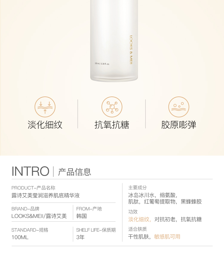 HG 露诗艾美莹润滋养肌底精华液抗皱抗初老抗糖平衡水油 100ml