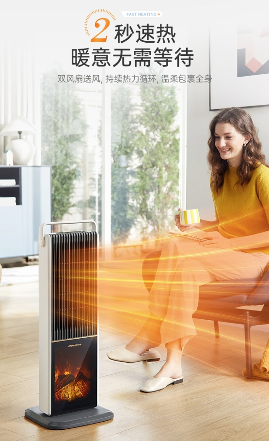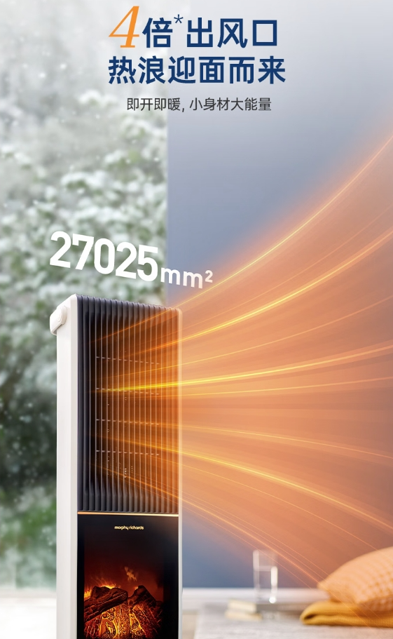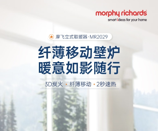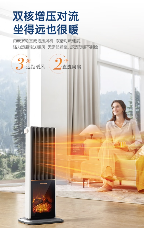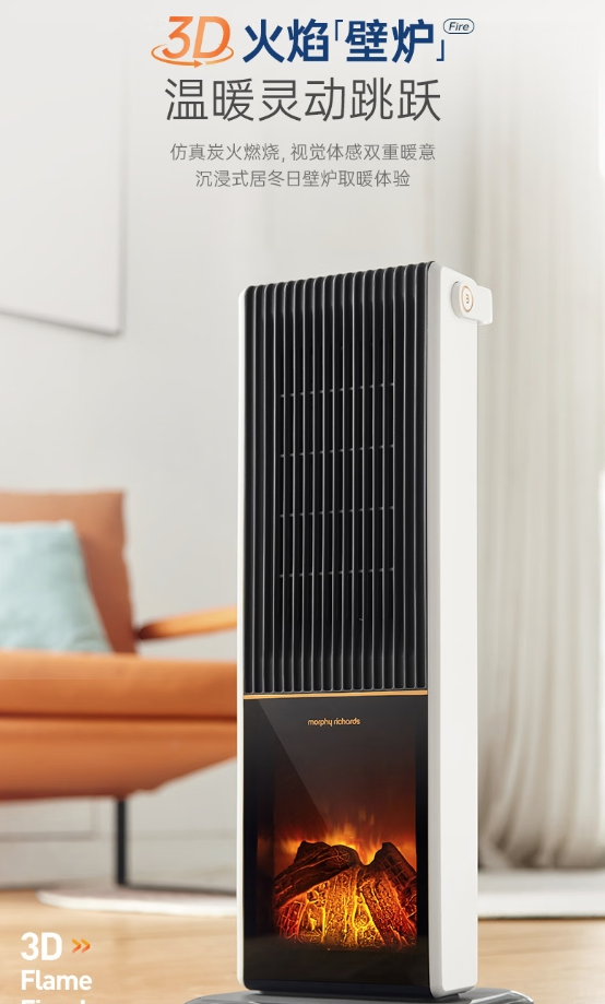 【B1南亚】摩飞电器(Morphyrichards)石墨烯速热暖风机取暖器 客厅卧室远红外低噪柔音可定时电暖器取暖烤火炉【3D火焰特效】MR2029