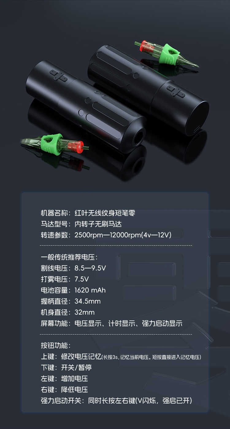 红叶零号机ZERO无线纹身笔短笔割线打雾一体惊蛰刺青器材