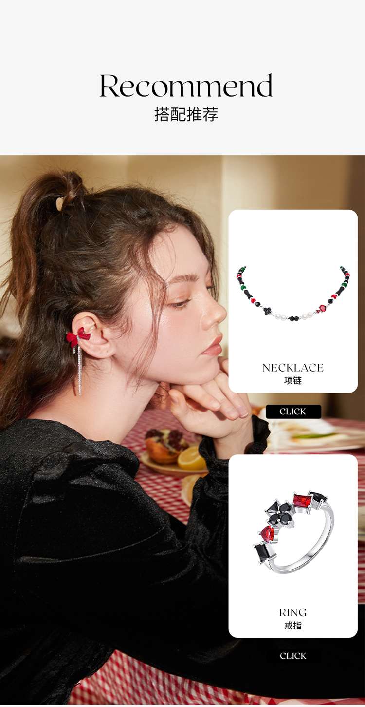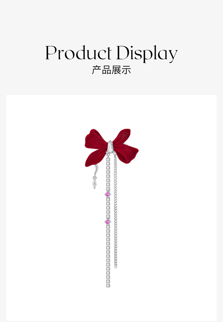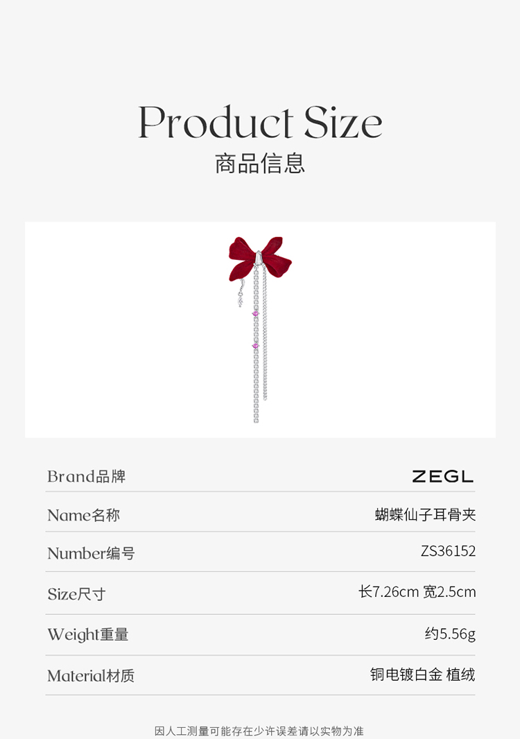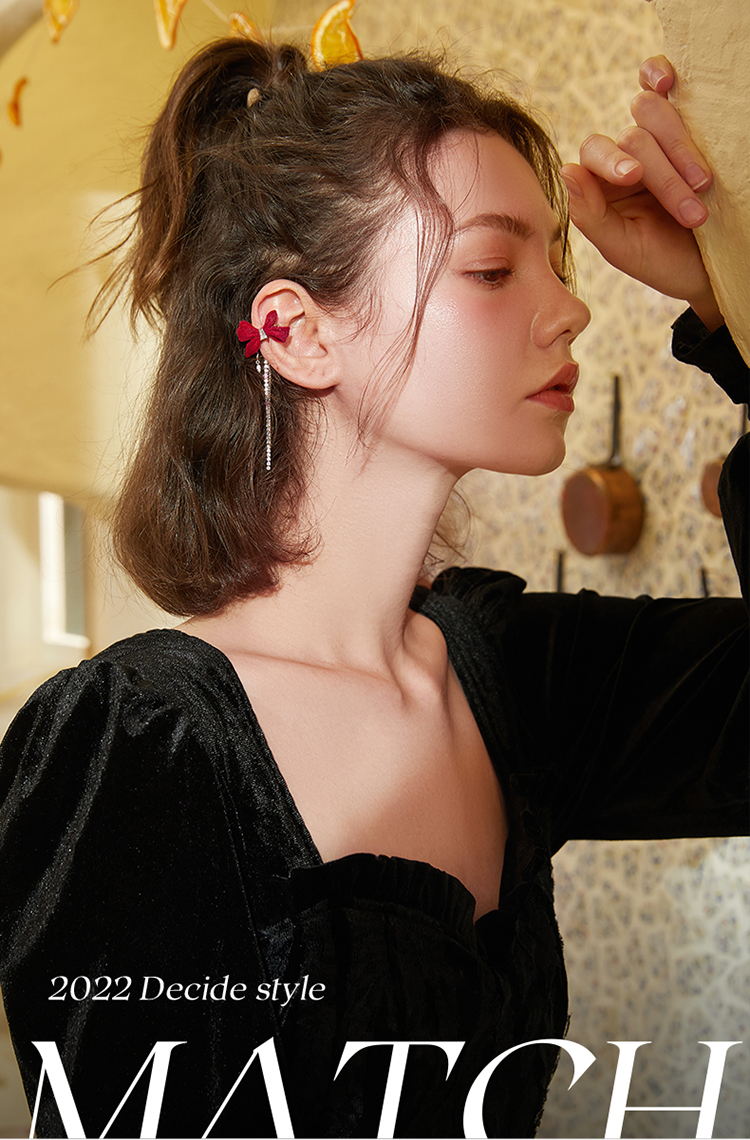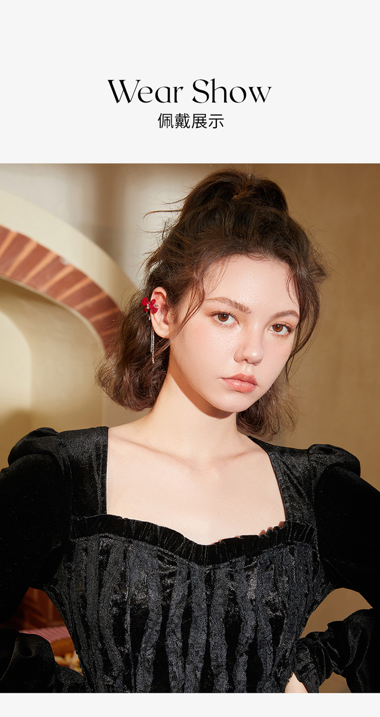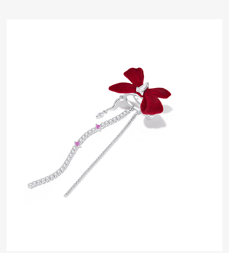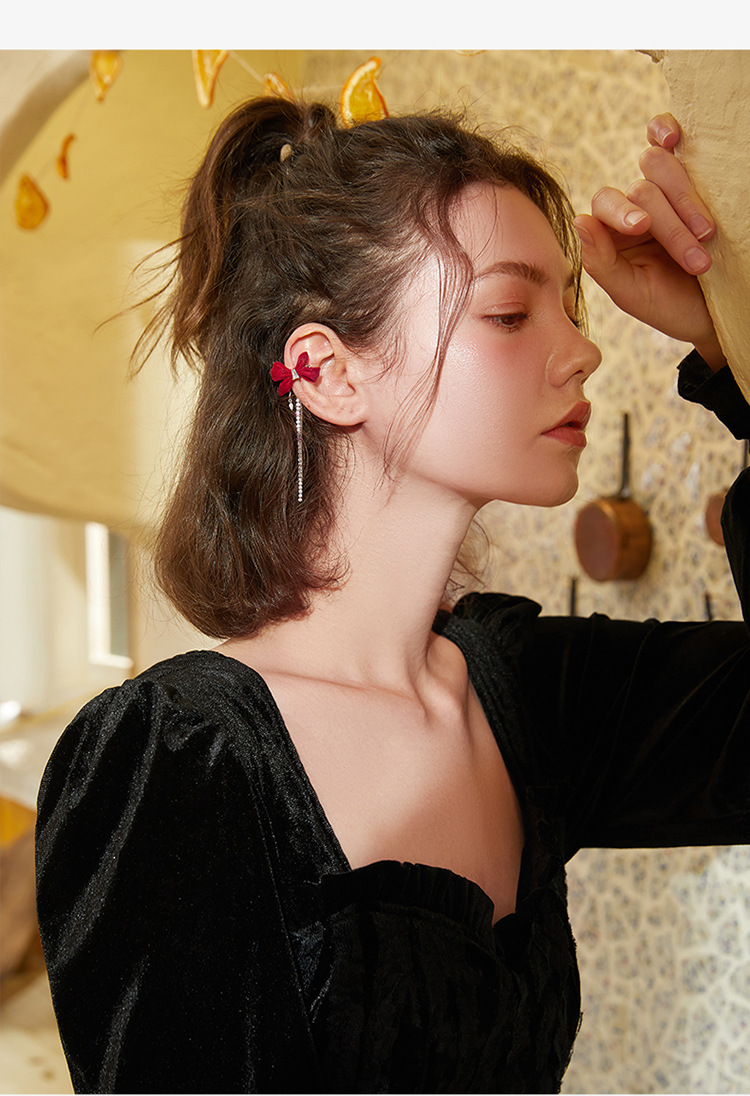 ZEGL设计师红色蝴蝶结丝绒耳环女长款流苏耳钉小众新年秋冬耳饰品