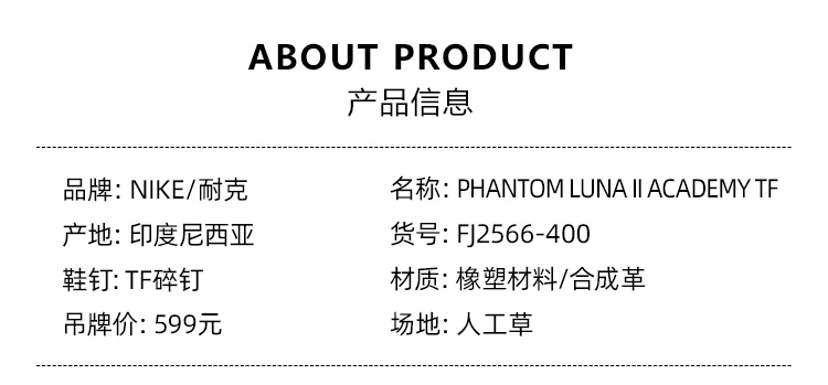 SFS耐克Nike 暗煞Luna II中端TF碎钉足球鞋男子人草 FJ2566-400