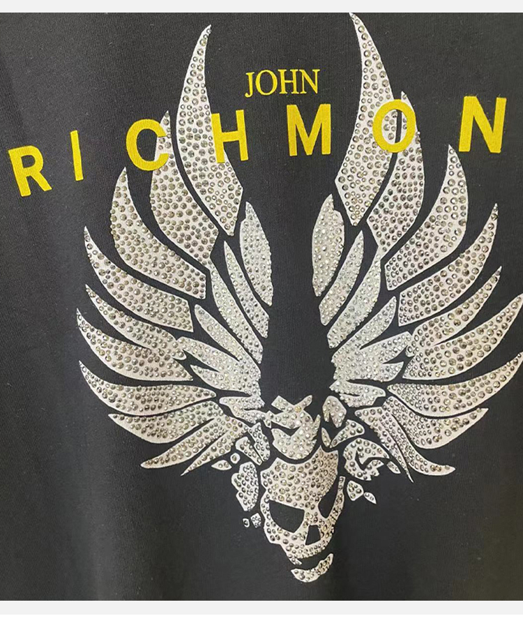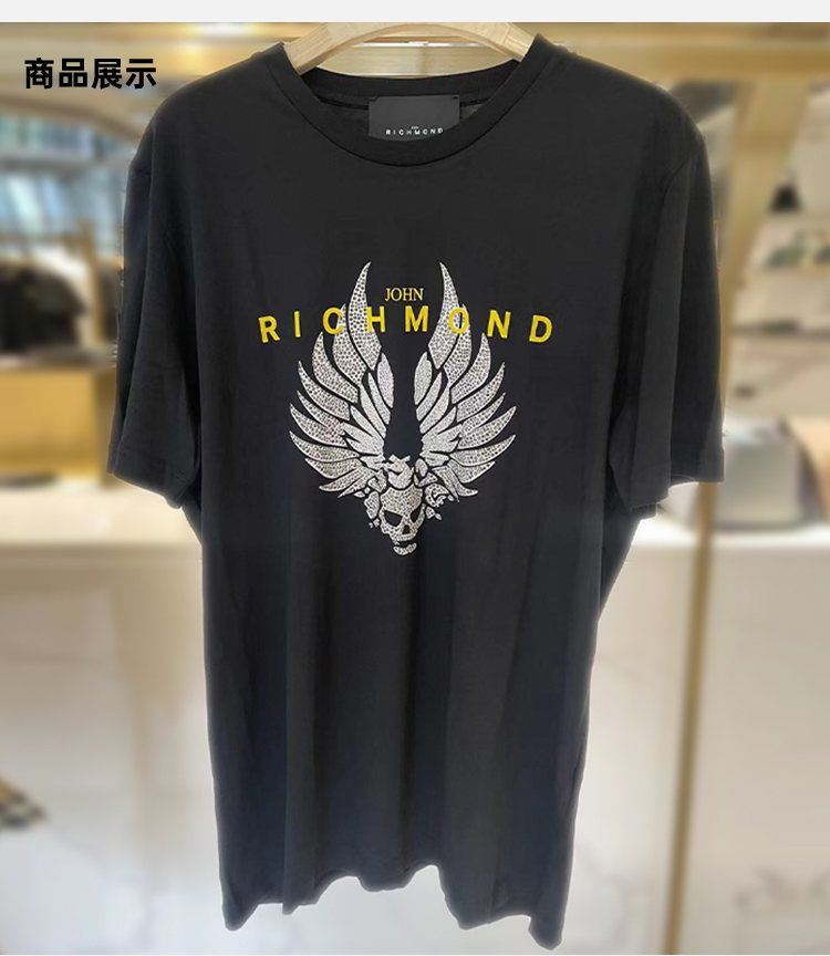 RICHMOND 男士棉质镶钻骷髅翅膀圆领短袖T恤 黑色 RMP19224TS BLACK