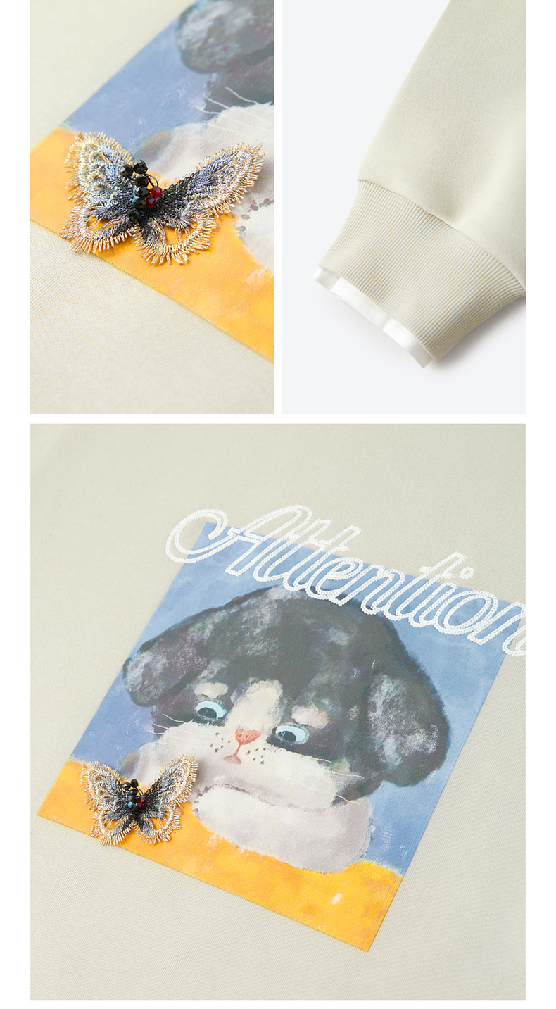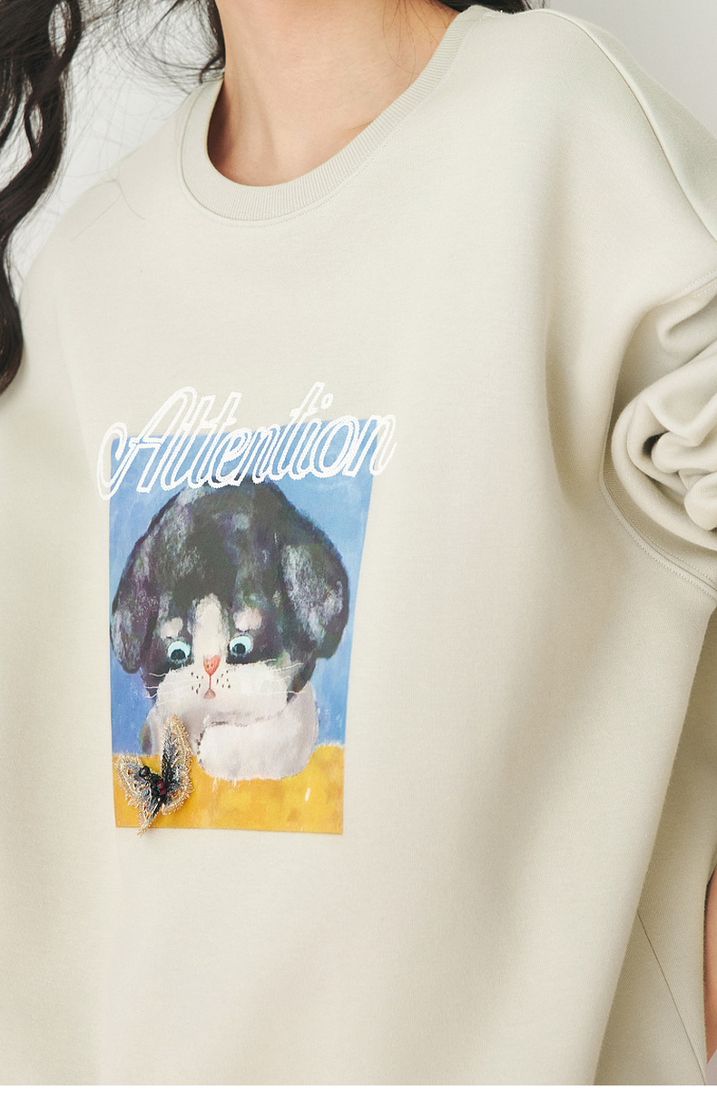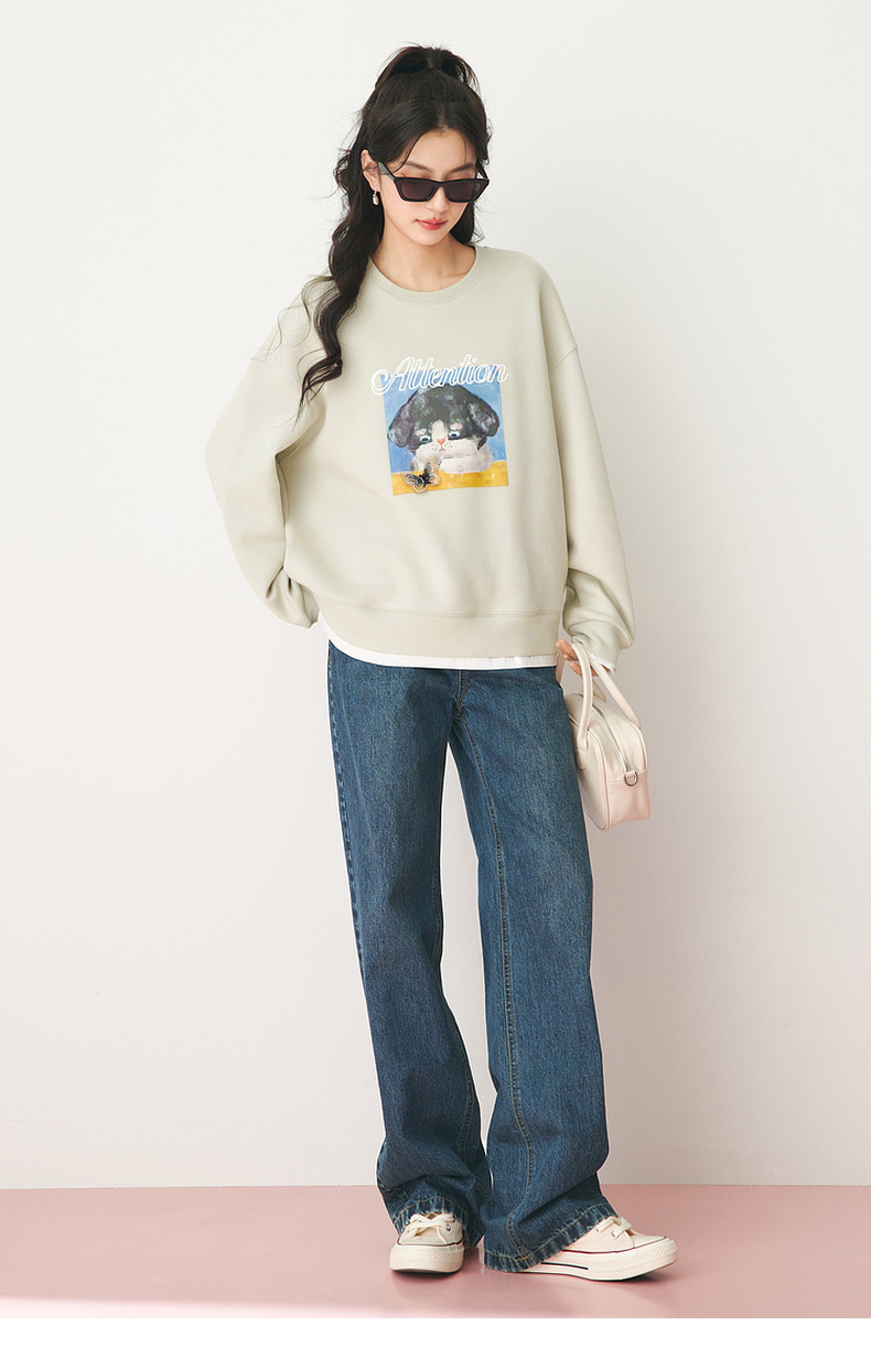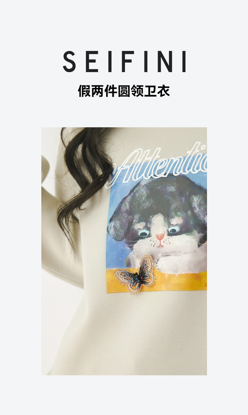 【严选】诗凡黎春大图案设计灵动猫咪表情结合字母设计圆领假两件针织衫SF1300021