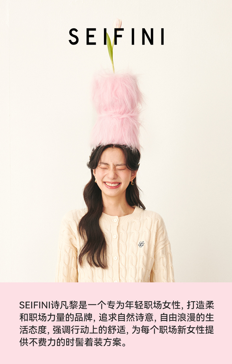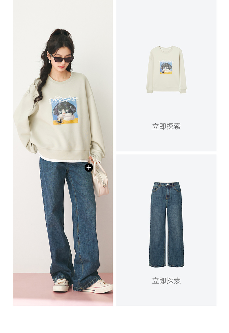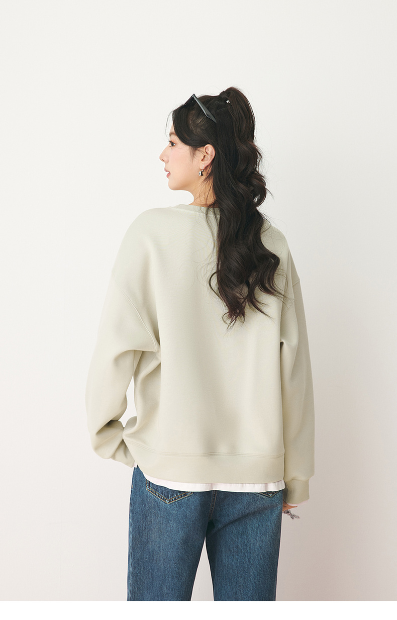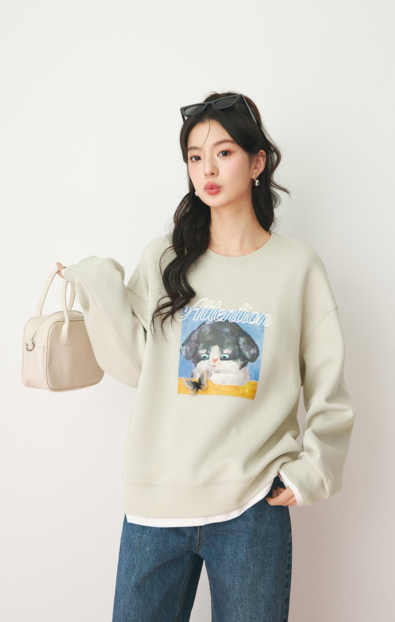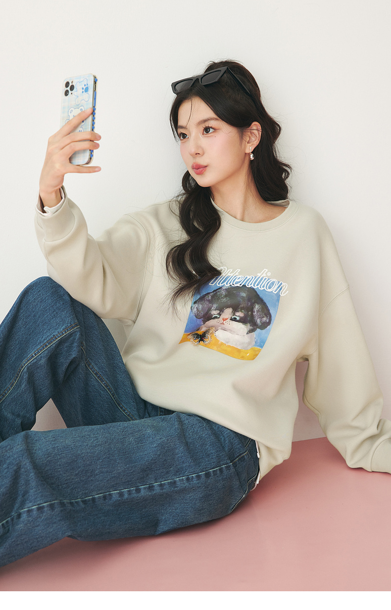 【严选】诗凡黎春大图案设计灵动猫咪表情结合字母设计圆领假两件针织衫SF1300021