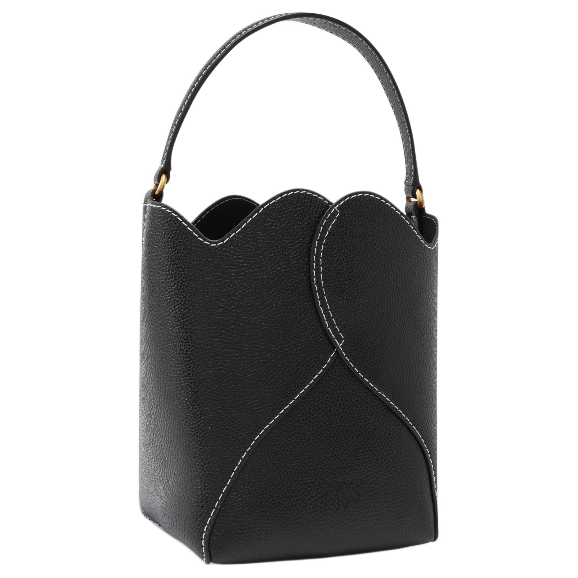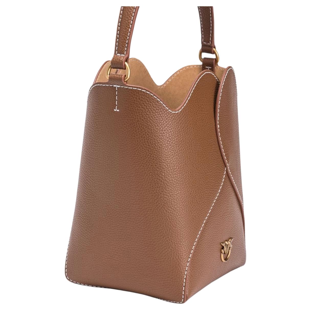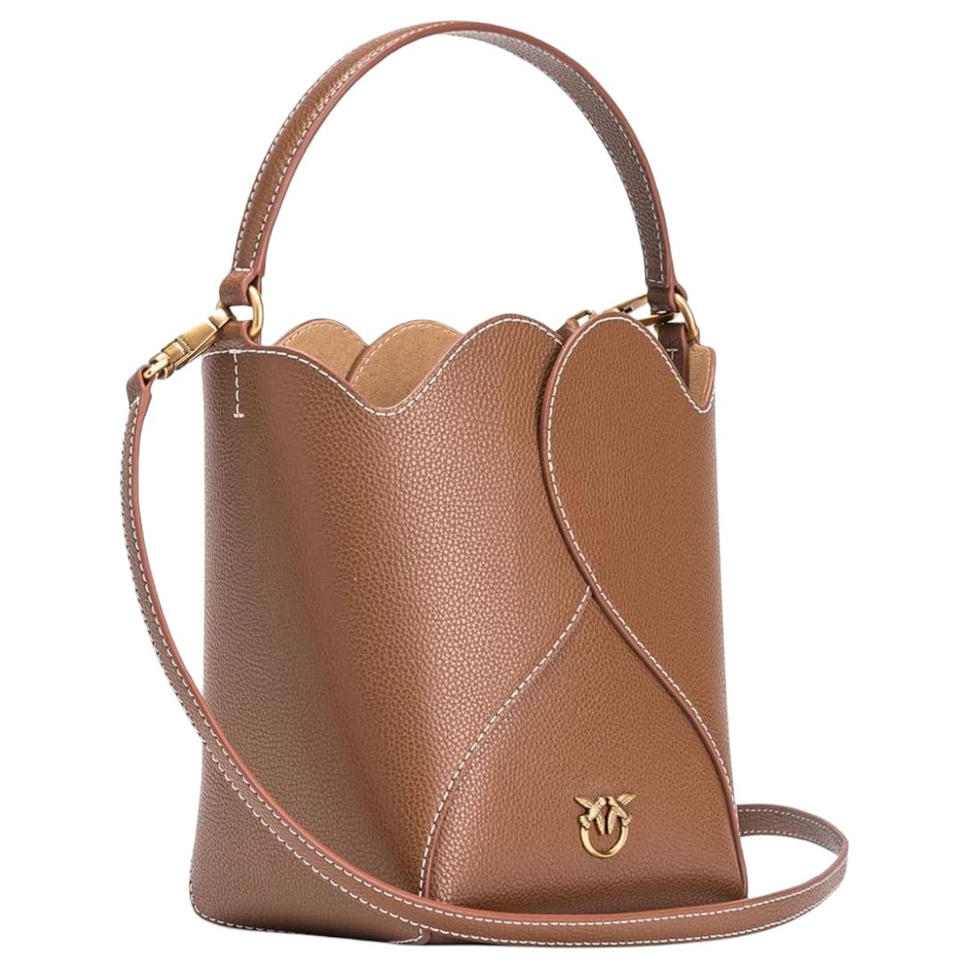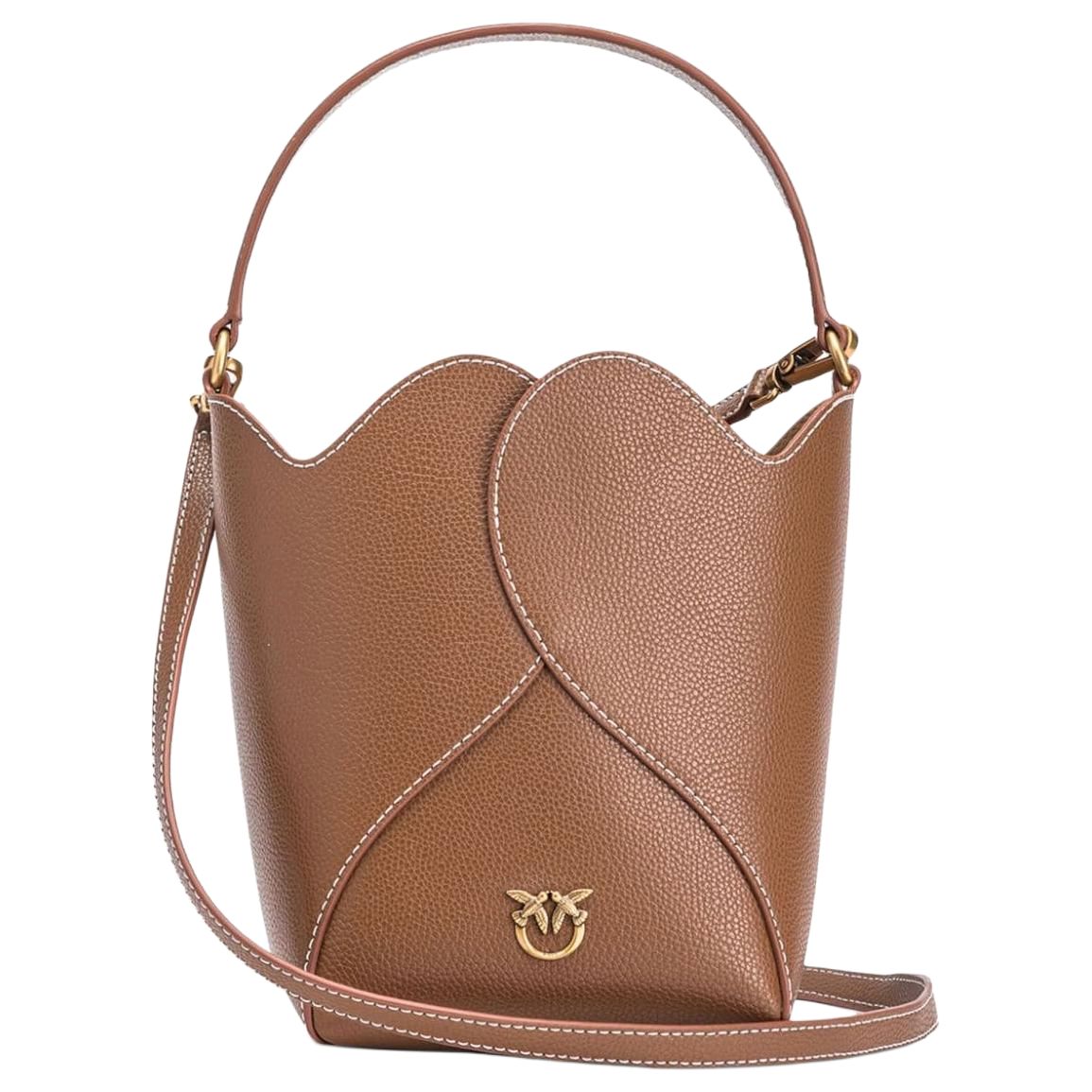 【招财好运满袋】pinko 品高品牌徽标可拆卸肩带 牛皮革层革 水桶包