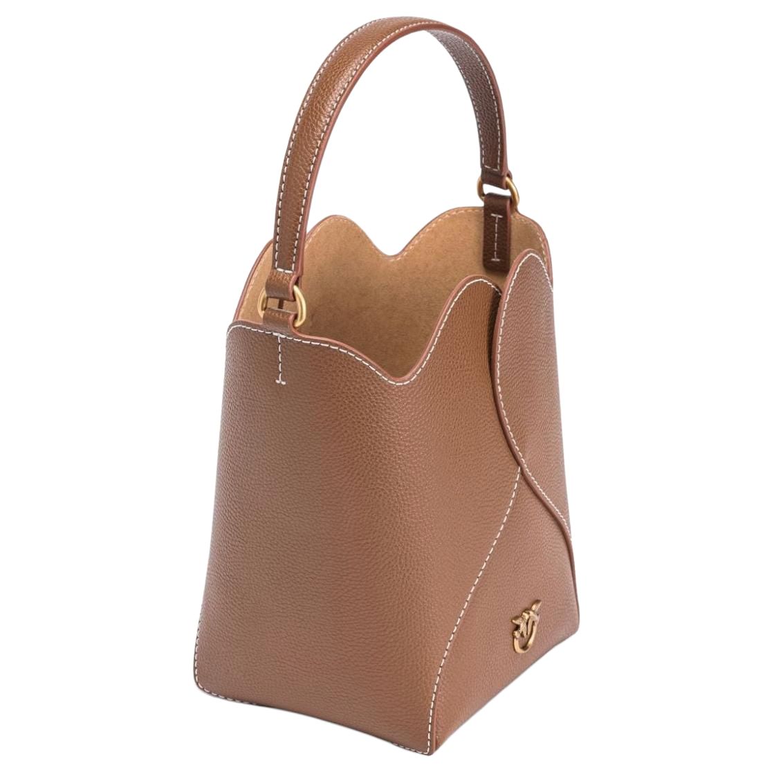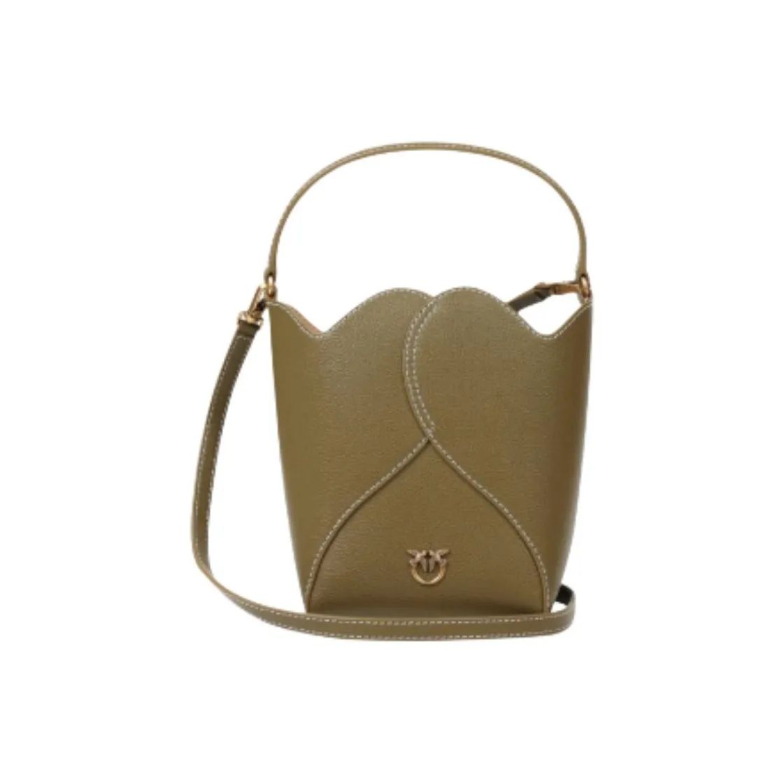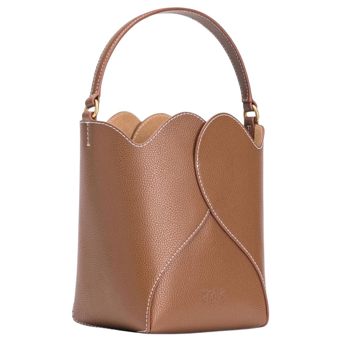 【招财好运满袋】pinko 品高品牌徽标可拆卸肩带 牛皮革层革 水桶包