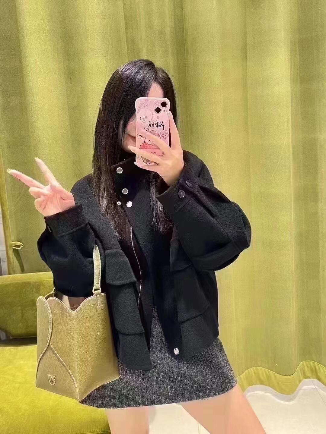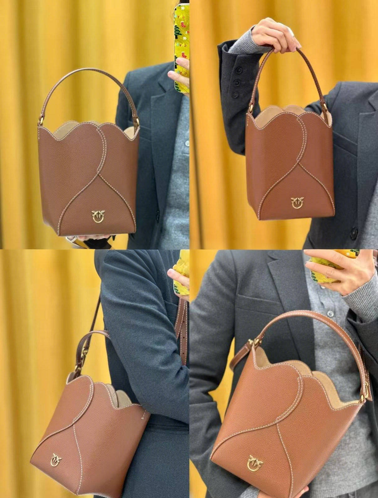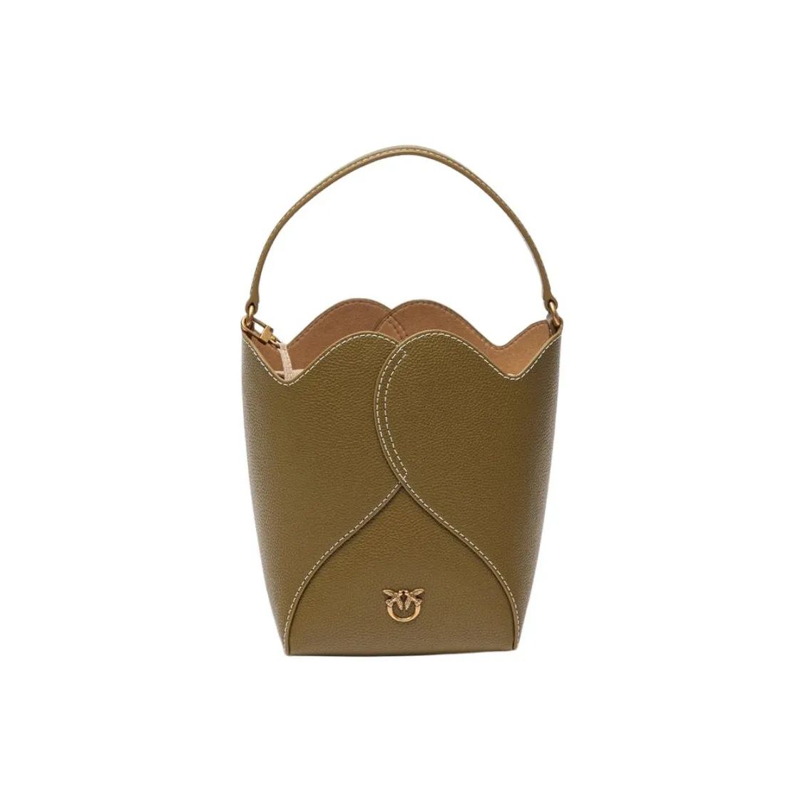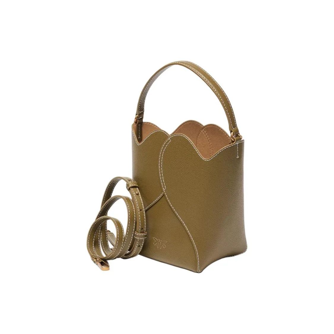【招财好运满袋】pinko 品高品牌徽标可拆卸肩带 牛皮革层革 水桶包