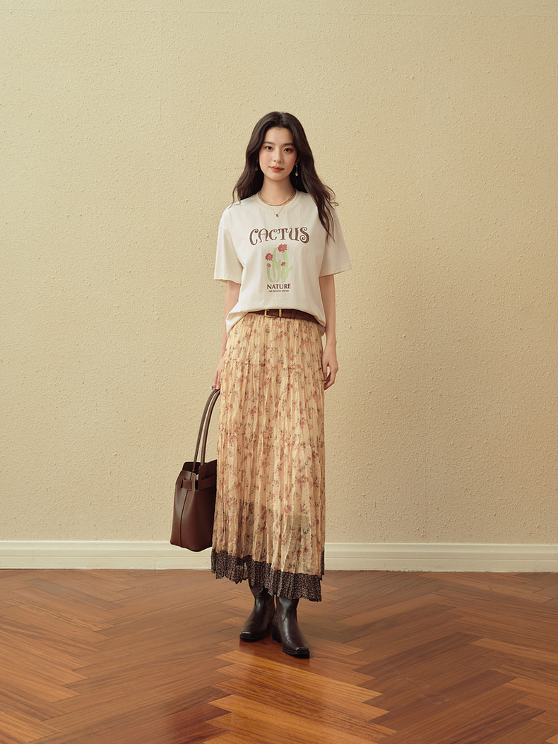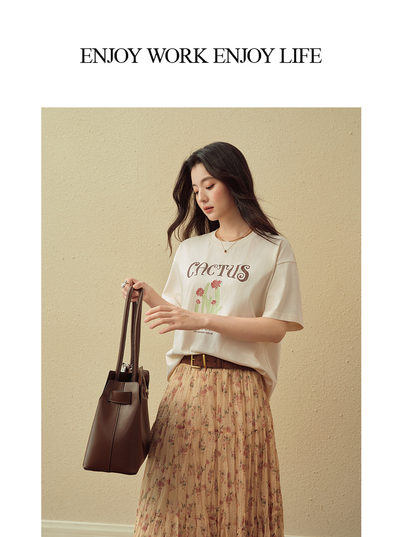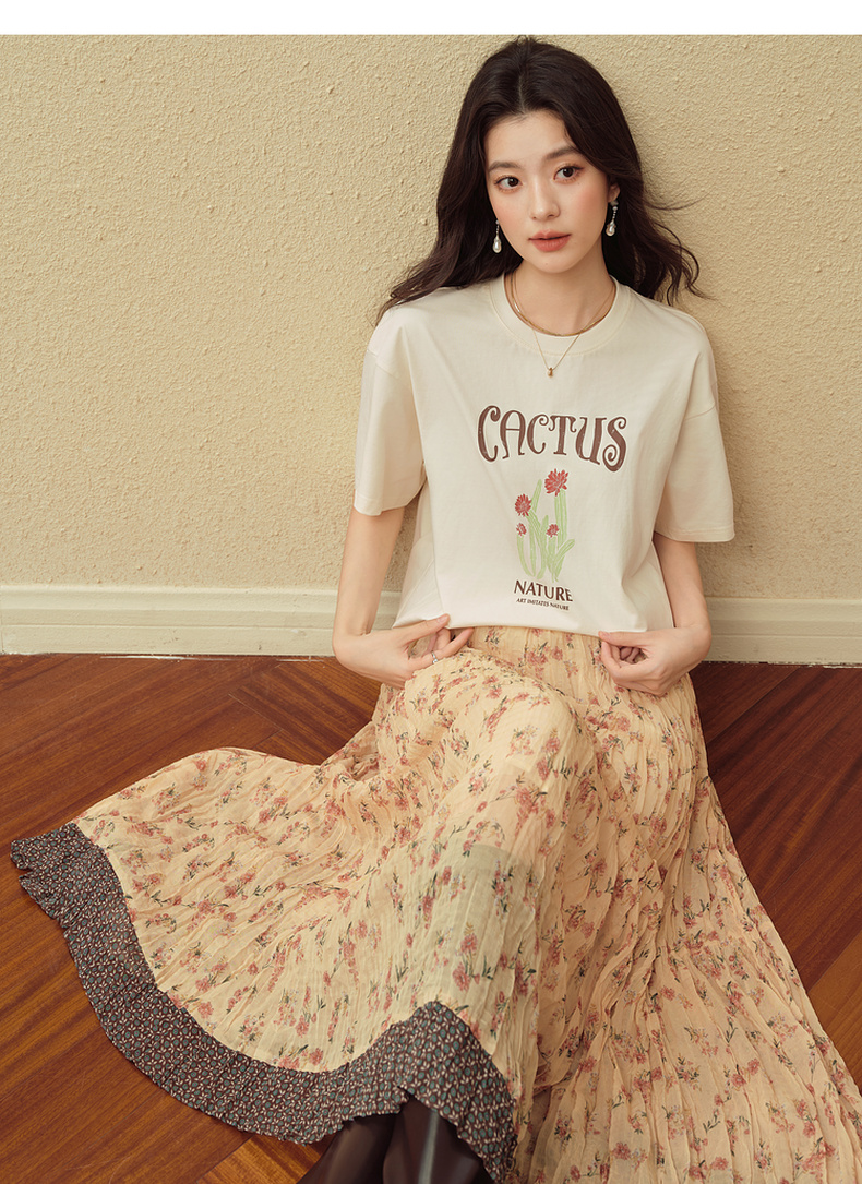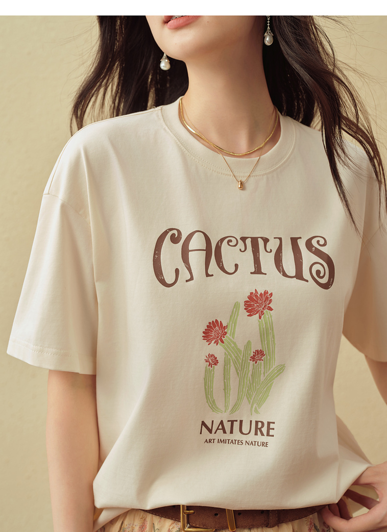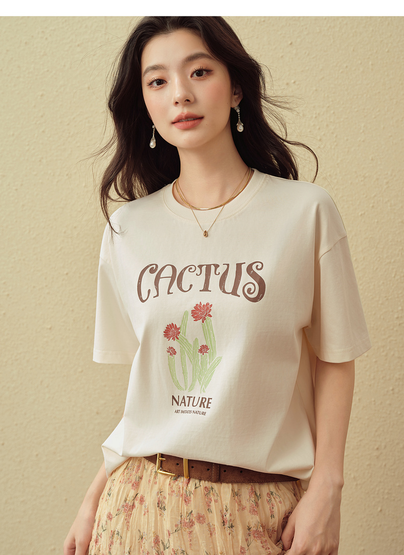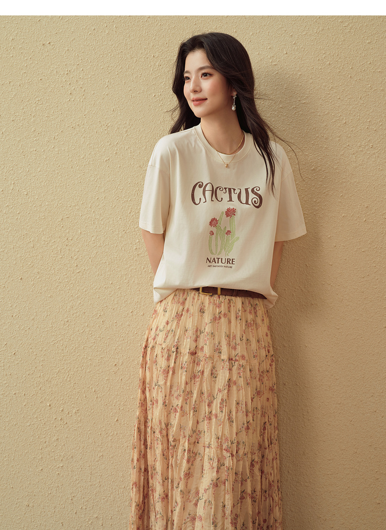 【严选】诗凡黎创意字母印花T恤2025秋新款小清新百搭慵懒休闲短袖上衣女7G8302171