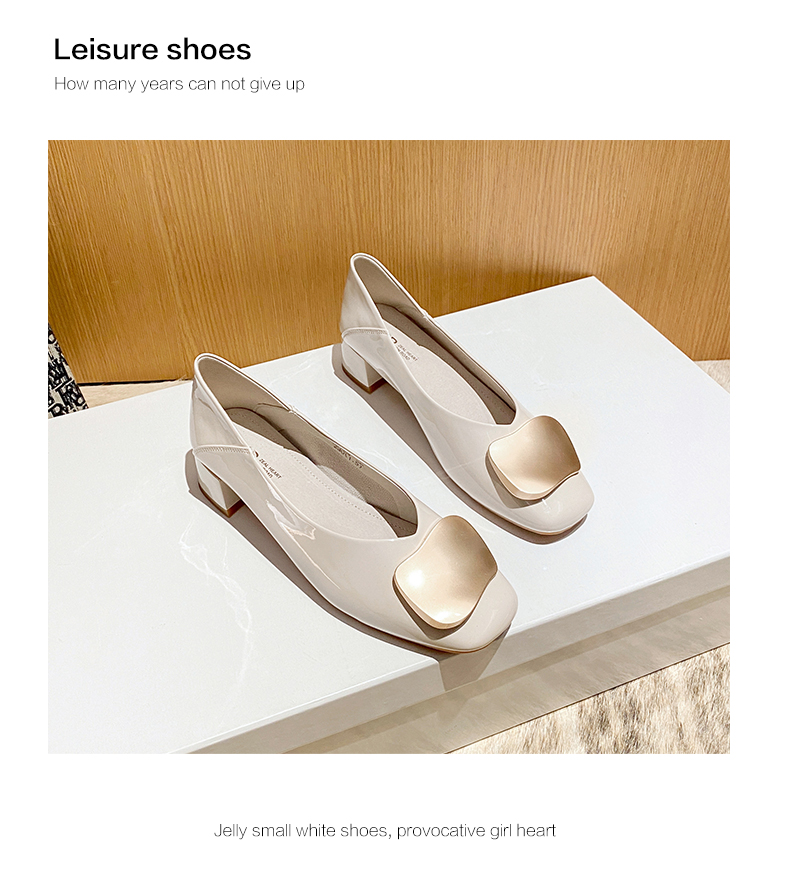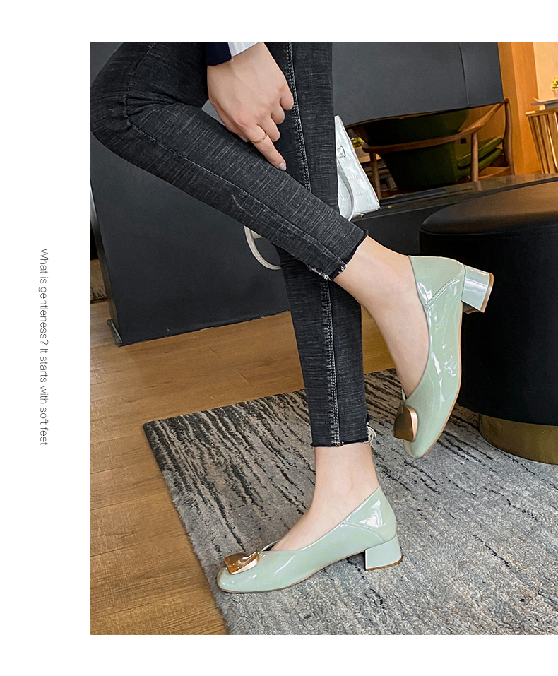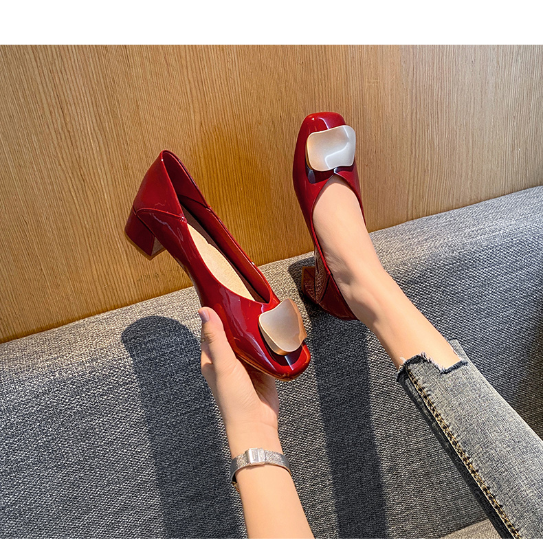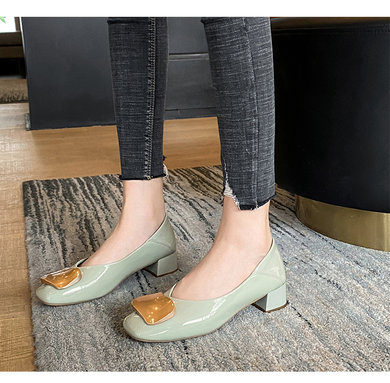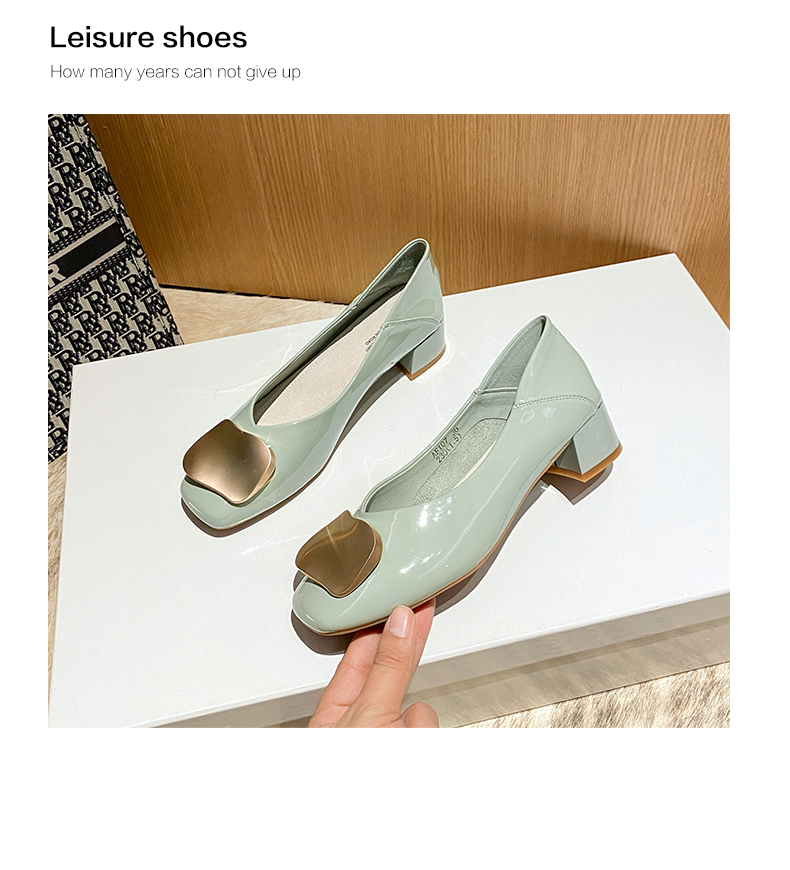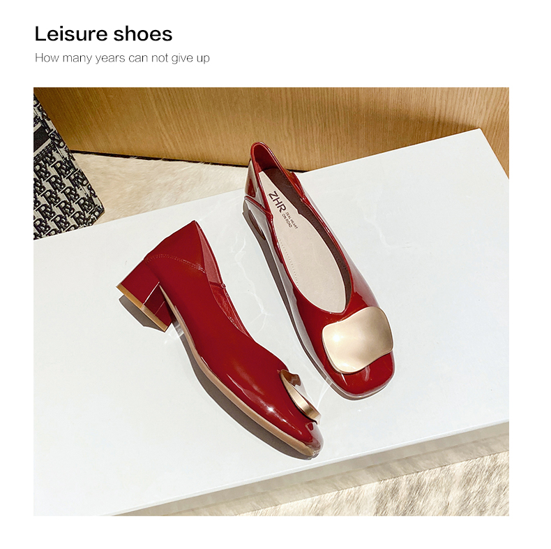 ZHR【金属扣饰】方头粗跟通勤鞋女婚鞋子女豆豆鞋皮鞋浅口女单鞋女鞋